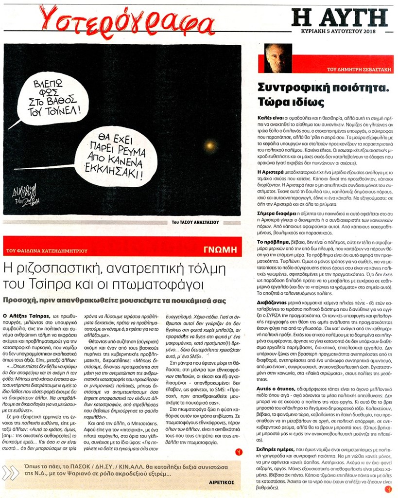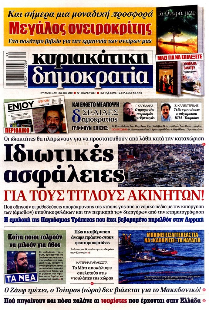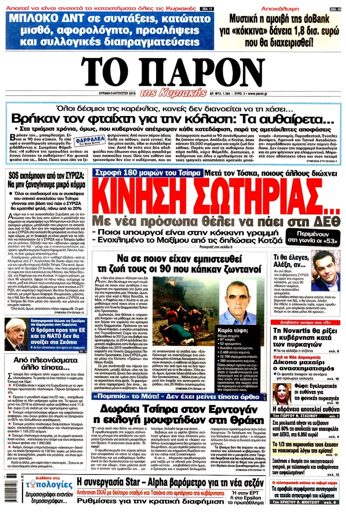 Διαβάστε στο zougla.gr τα πρωτοσέλιδα και τα οπισθόφυλλα των εφημερίδων της Κυριακής.