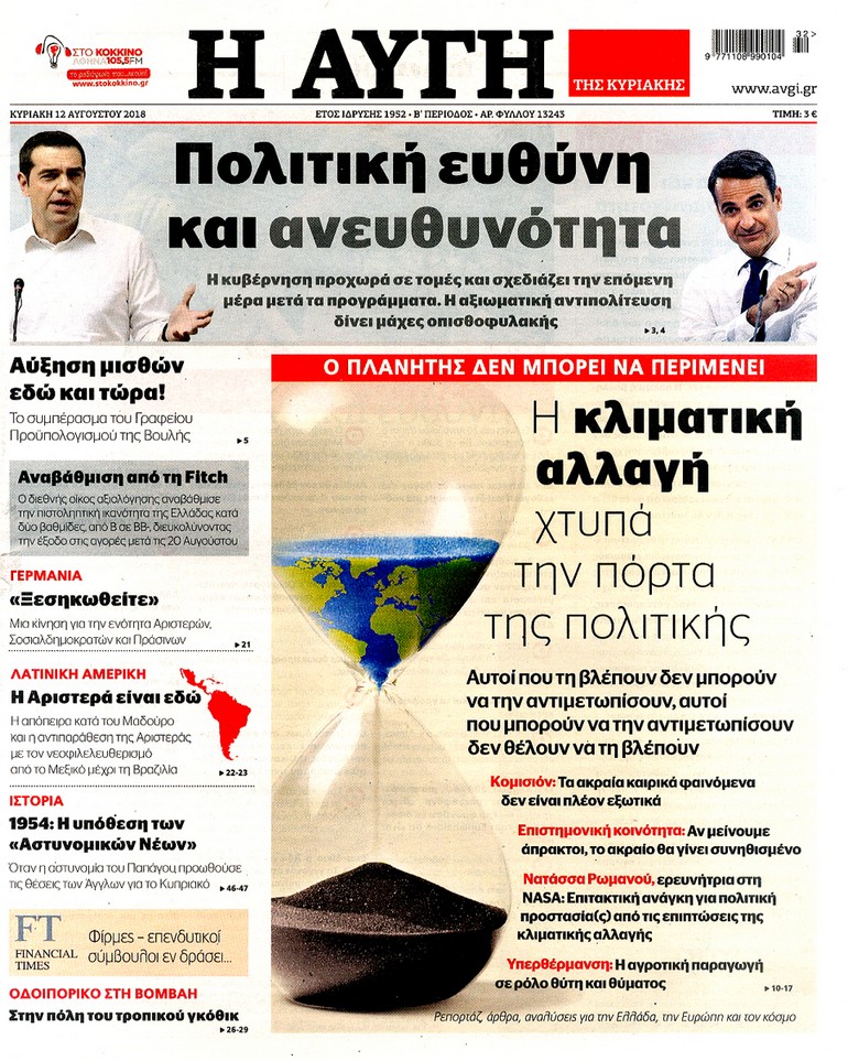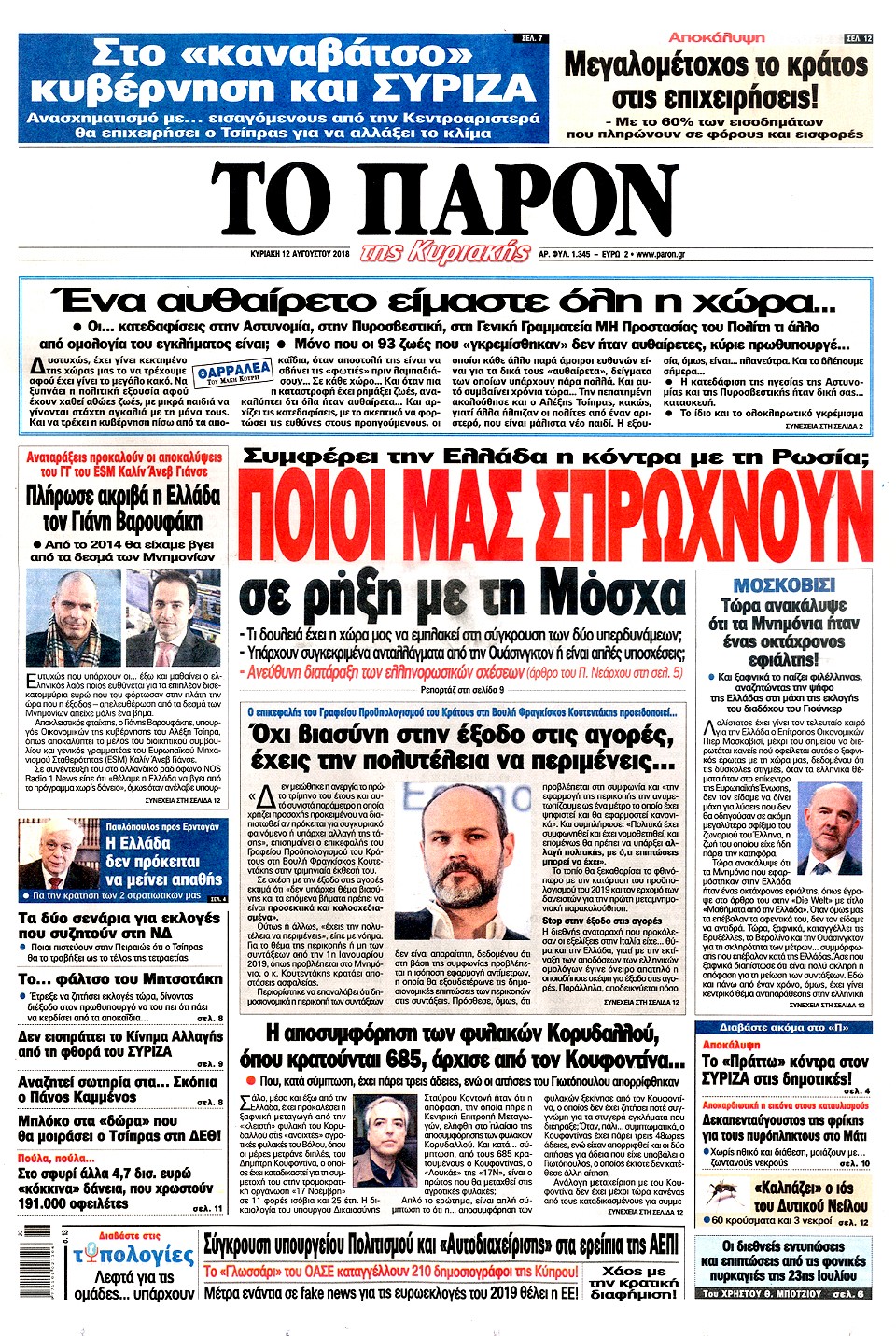 Διαβάστε στο zougla.gr τα πρωτοσέλιδα και τα οπισθόφυλλα των εφημερίδων της Κυριακής.