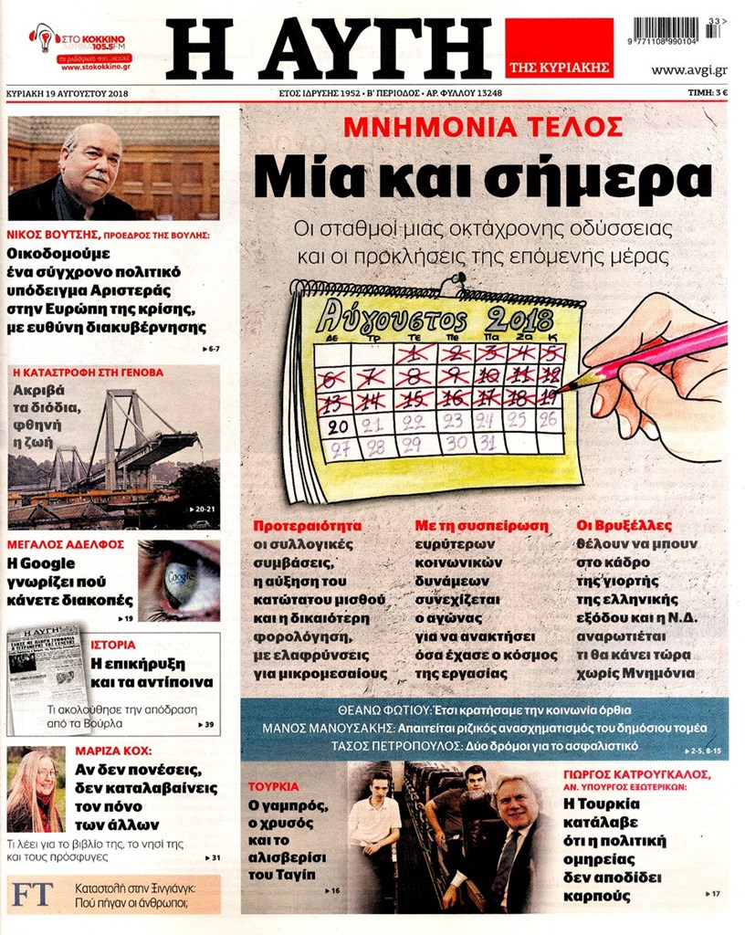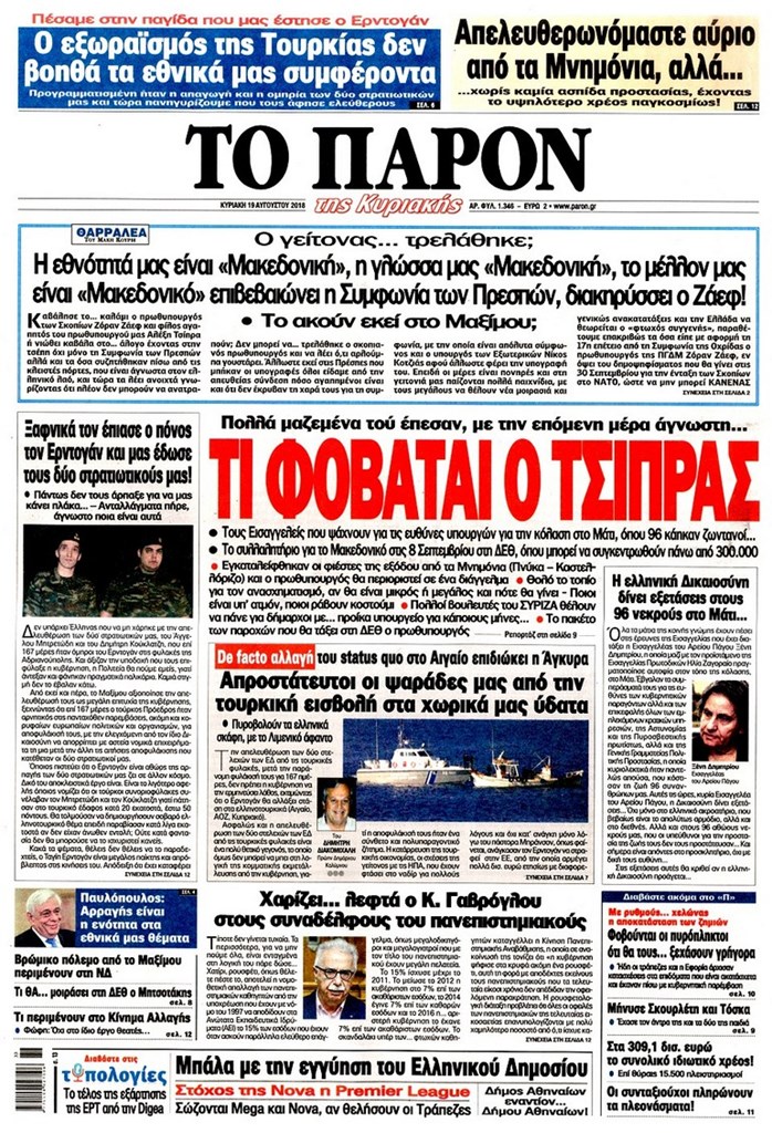 Διαβάστε στο zougla.gr τα πρωτοσέλιδα και τα οπισθόφυλλα των εφημερίδων της Κυριακής.