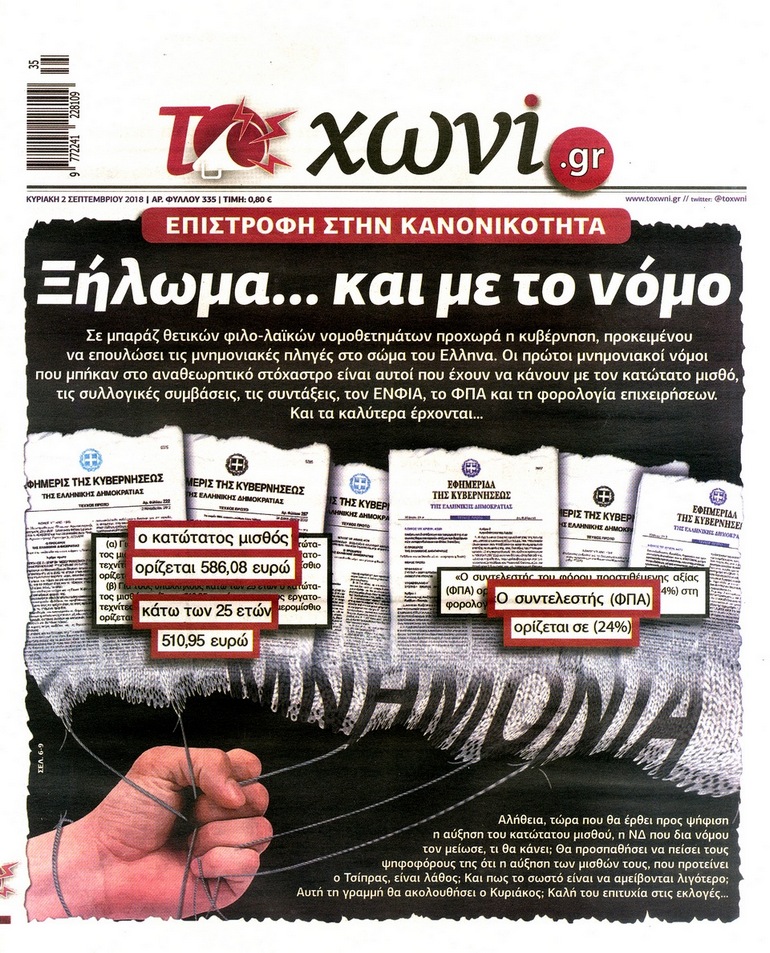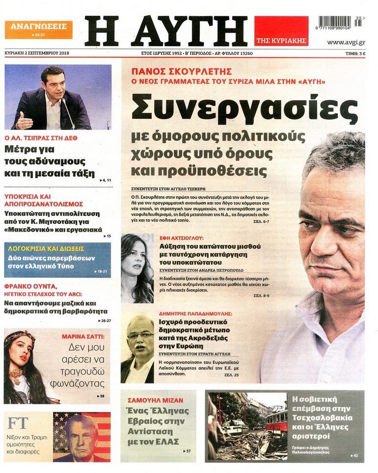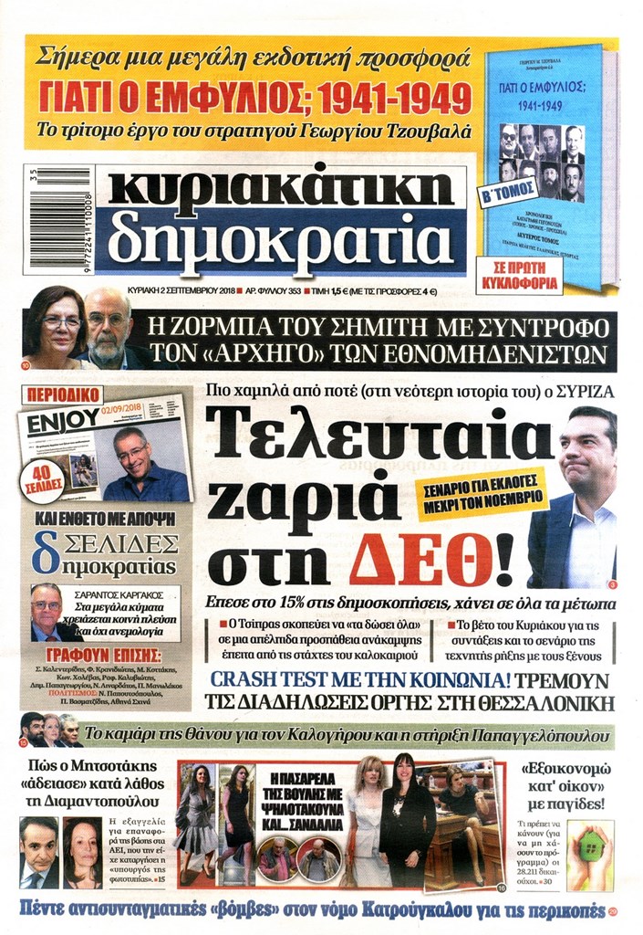 Διαβάστε στο zougla.gr τα πρωτοσέλιδα και τα οπισθόφυλλα των εφημερίδων της Κυριακής.