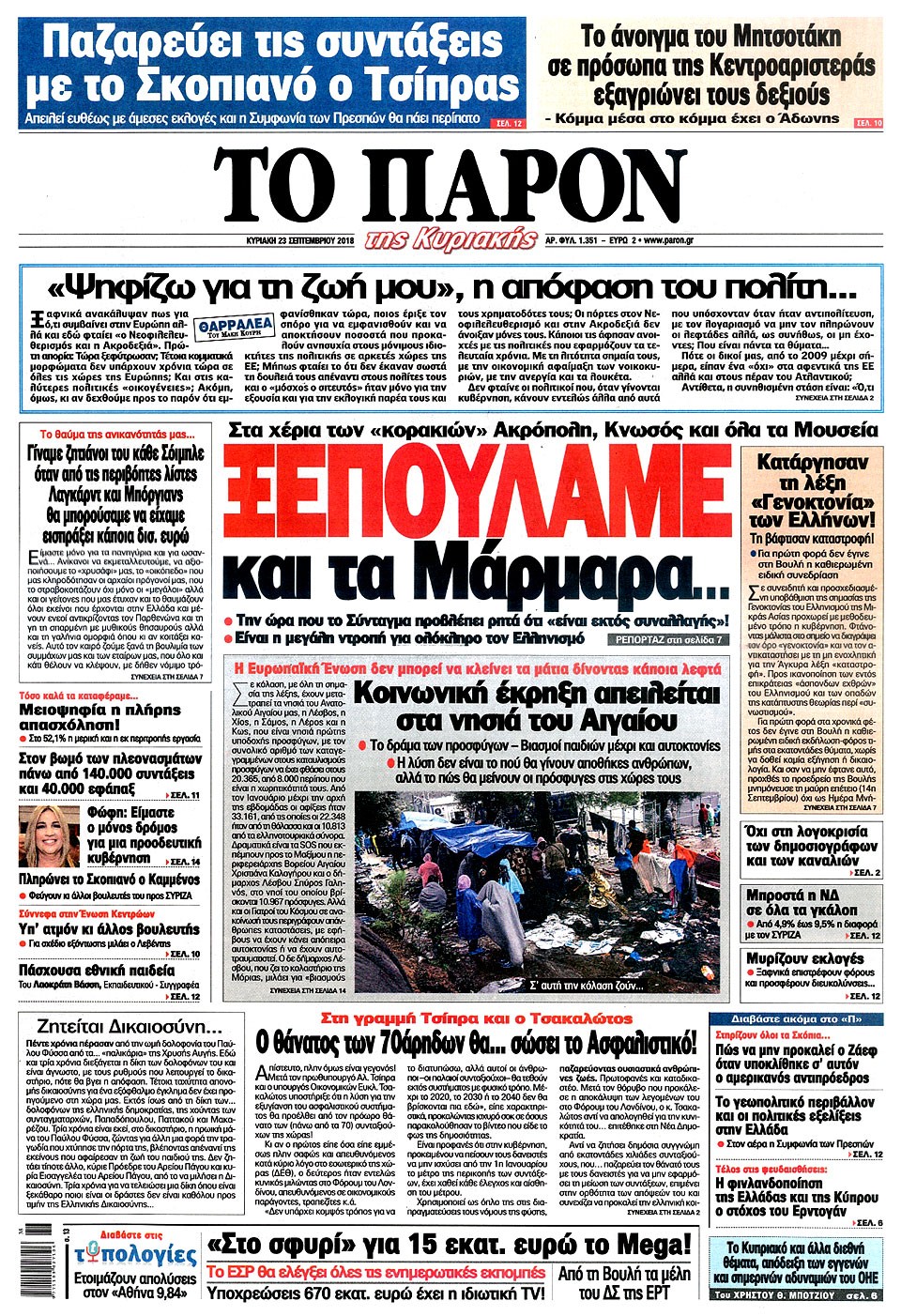 Διαβάστε στο zougla.gr τα πρωτοσέλιδα και τα οπισθόφυλλα των εφημερίδων της Κυριακής.