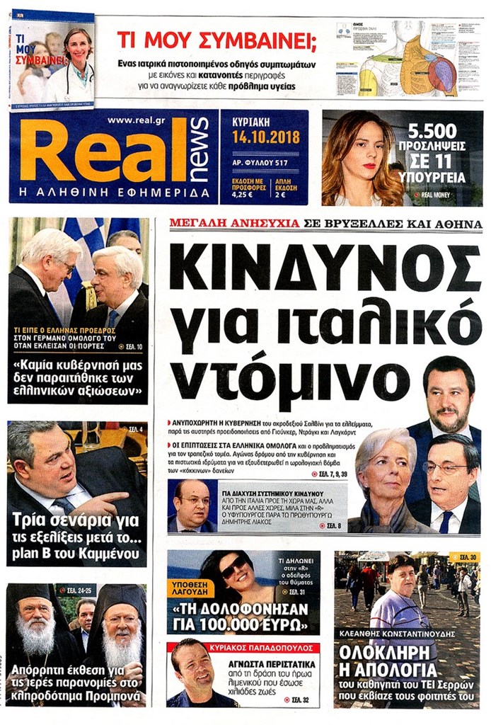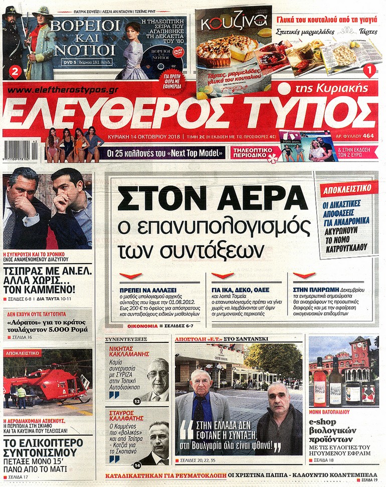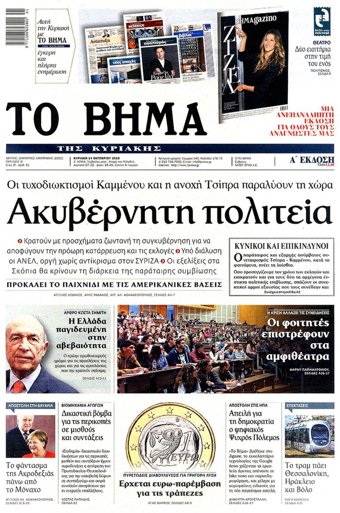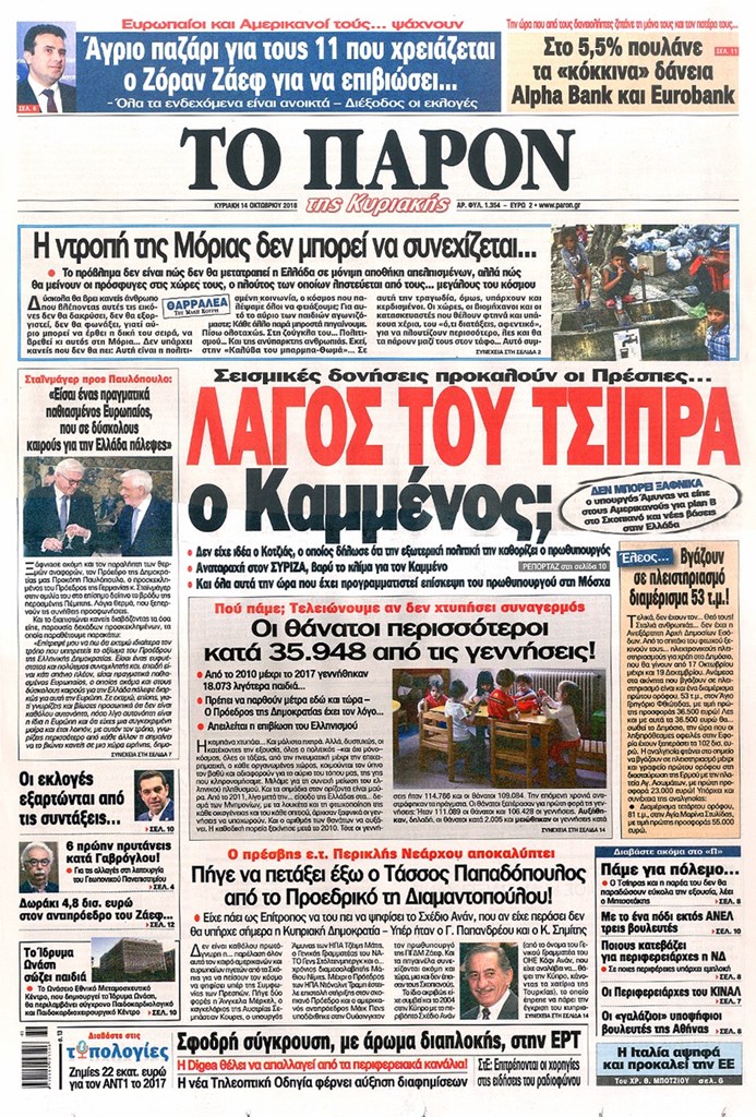 Διαβάστε στο zougla.gr τα πρωτοσέλιδα και τα οπισθόφυλλα των εφημερίδων της Κυριακής.