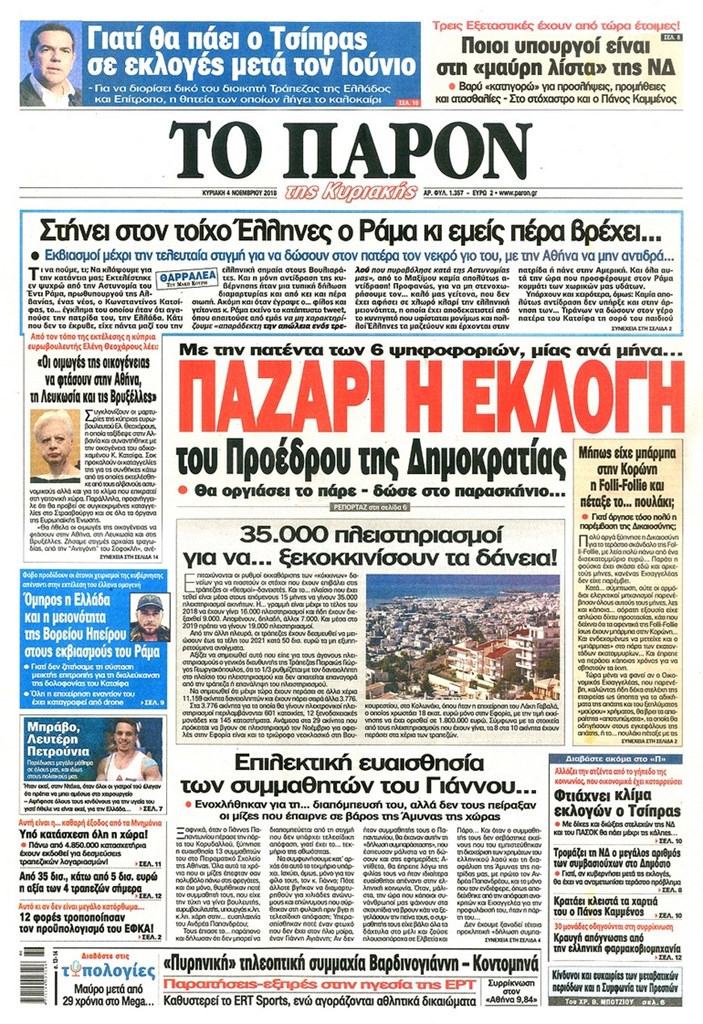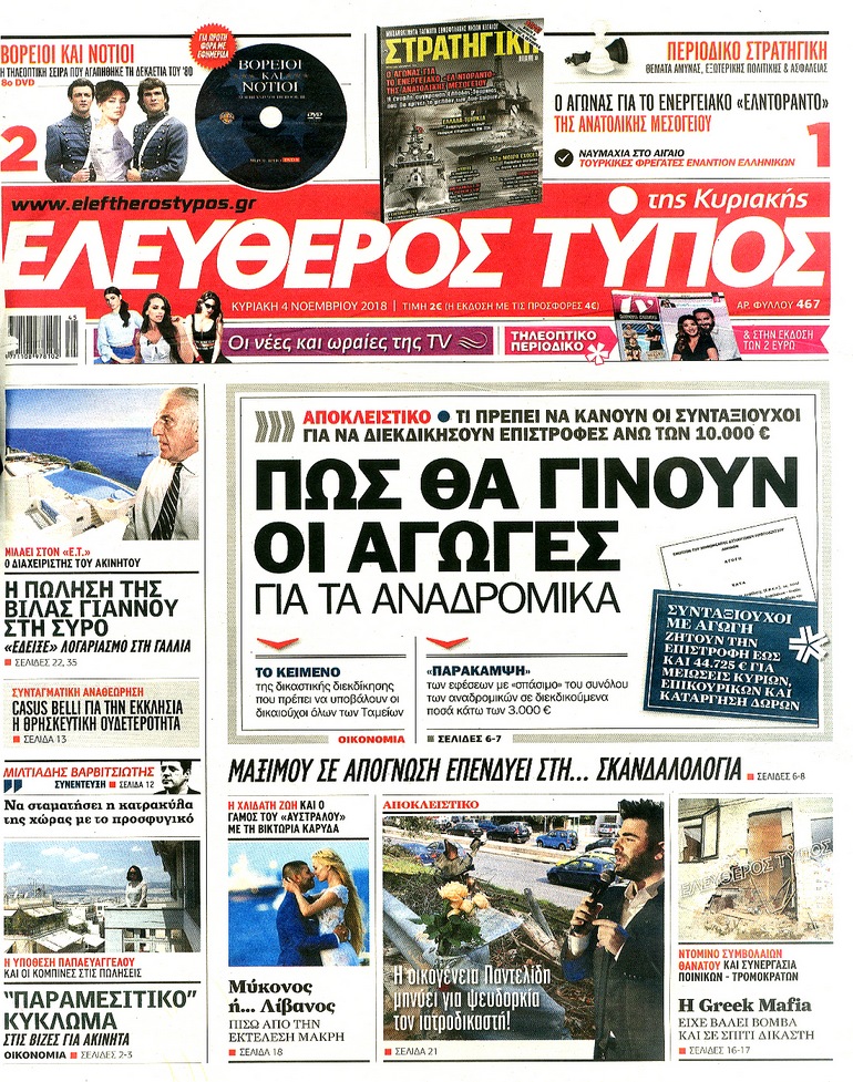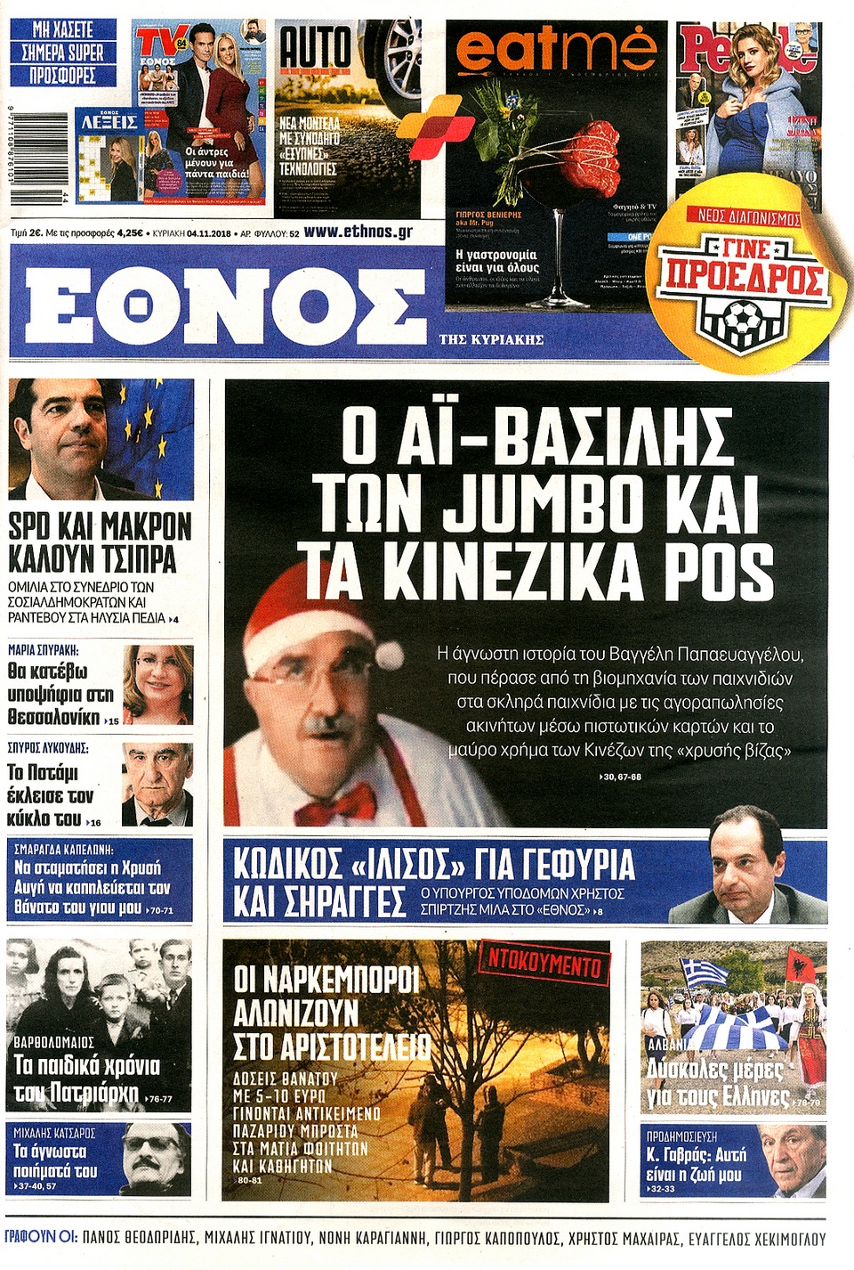 Τα πρωτοσέλιδα των κυριακάτικων εφημερίδων