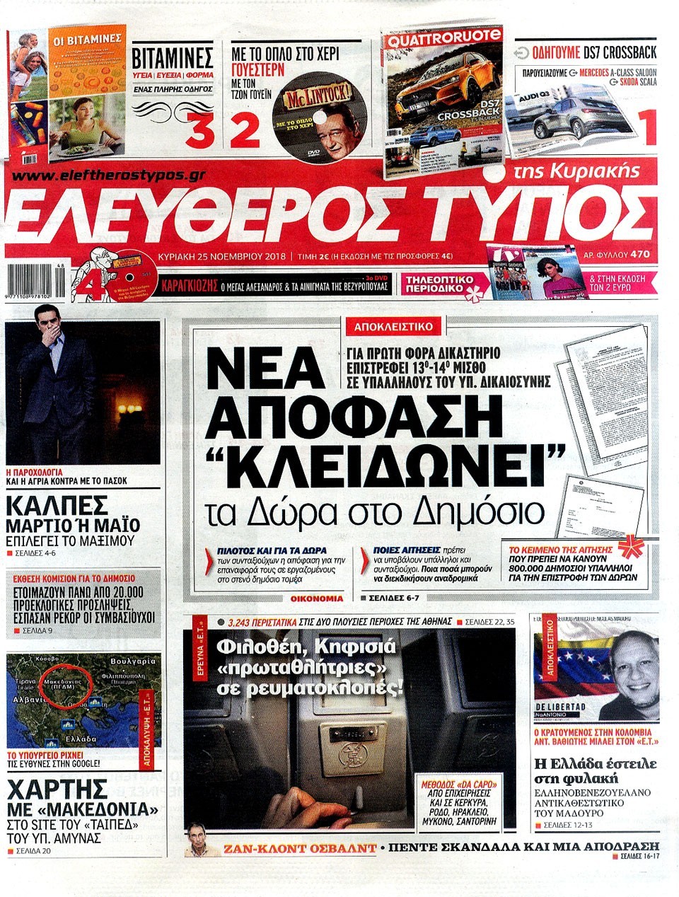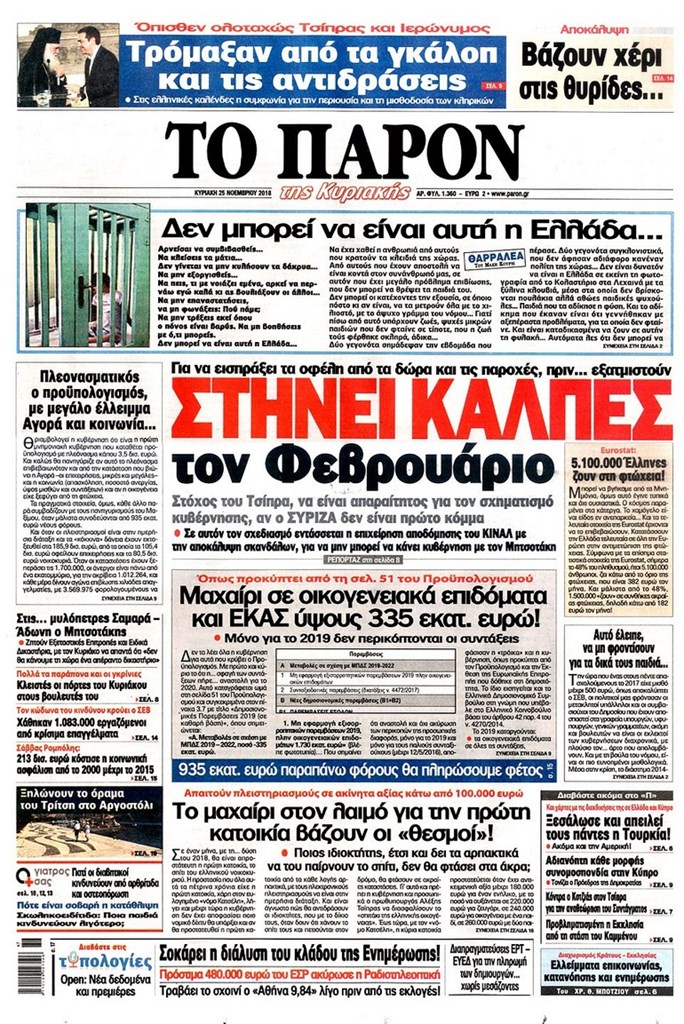 Διαβάστε στο zougla.gr τα πρωτοσέλιδα και τα οπισθόφυλλα των εφημερίδων της Κυριακής.