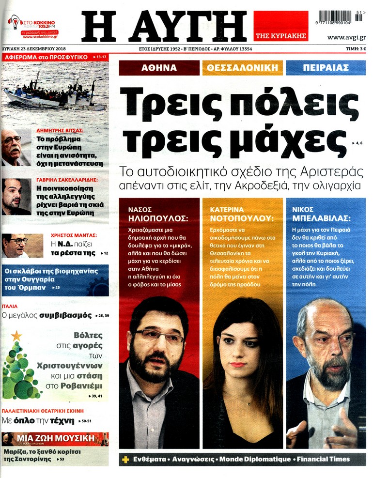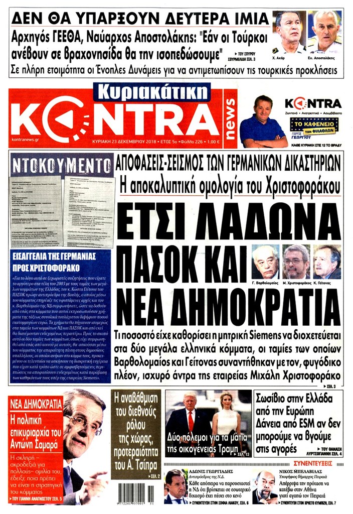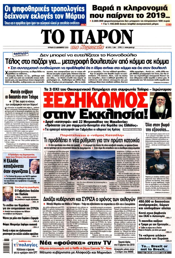 Διαβάστε στο zougla.gr τα πρωτοσέλιδα και τα οπισθόφυλλα των εφημερίδων της Κυριακής.