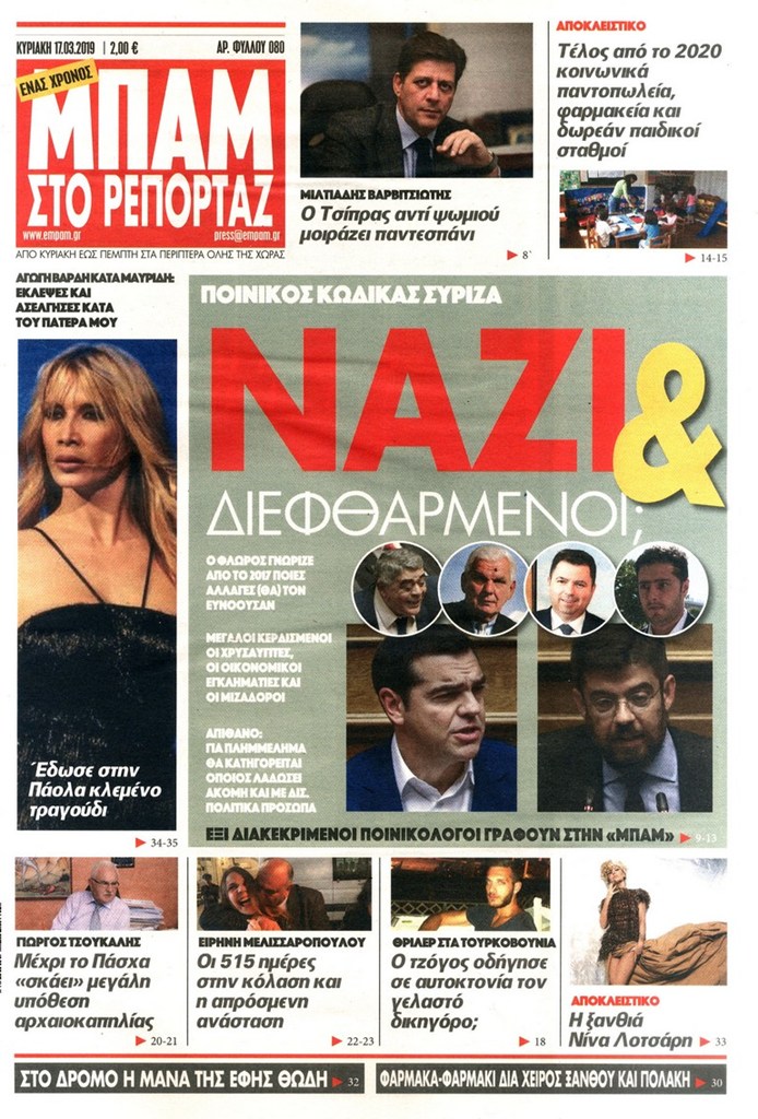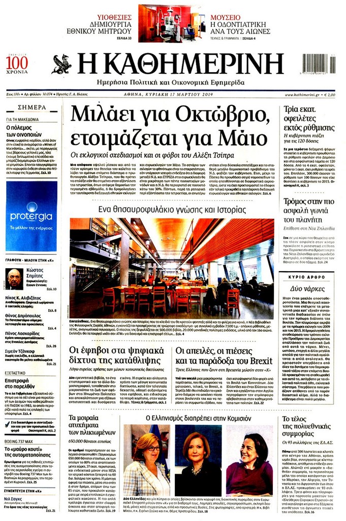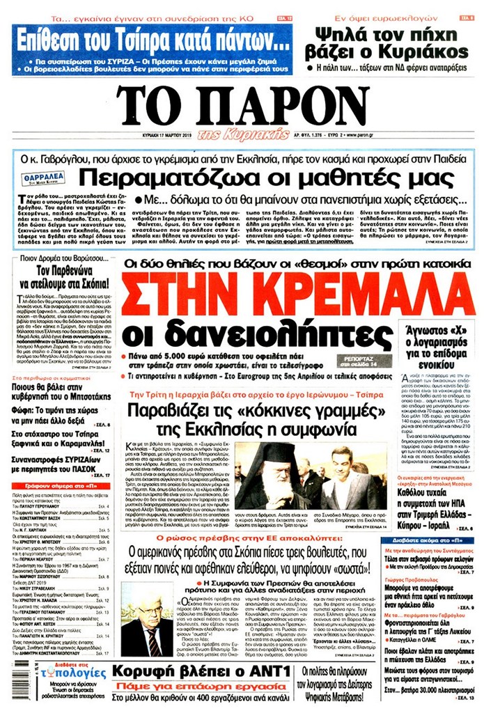 Τα πρωτοσέλιδα των κυριακάτικων εφημερίδων