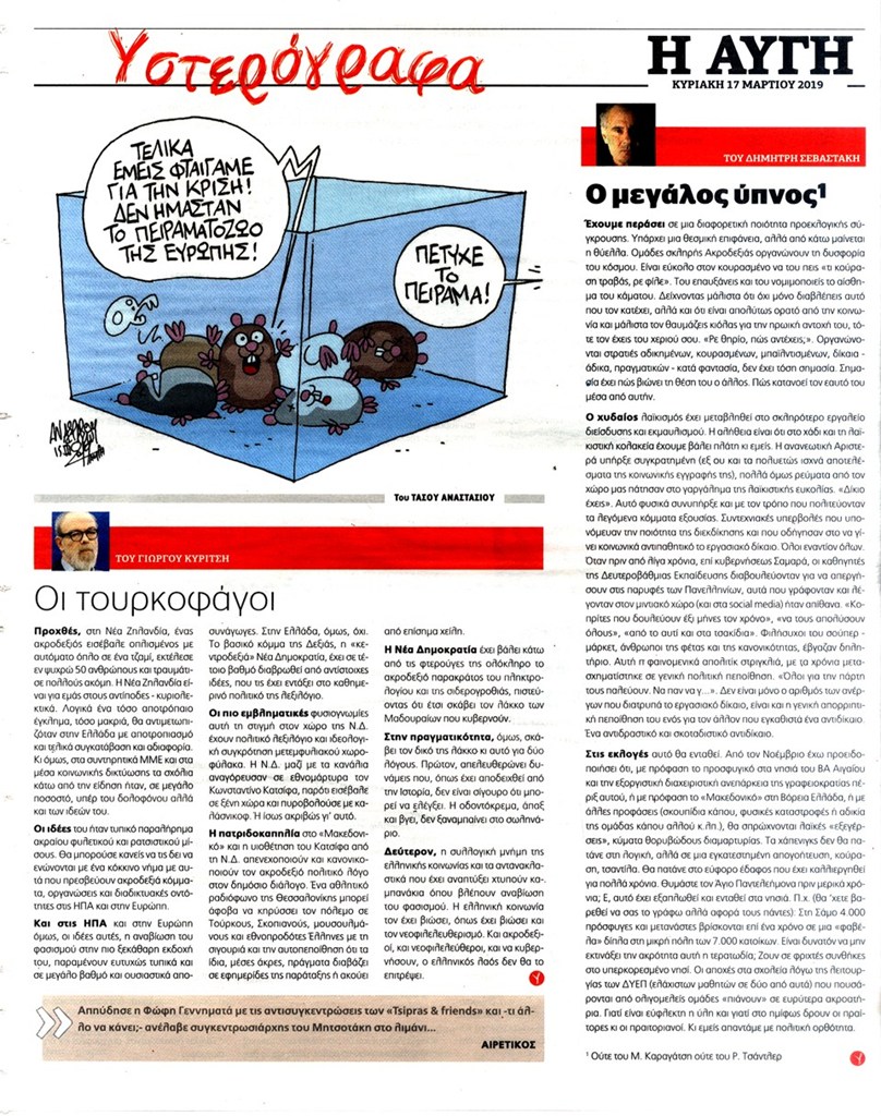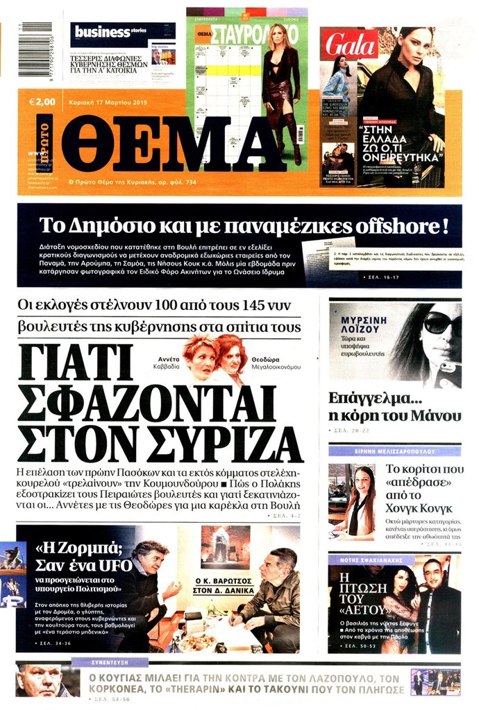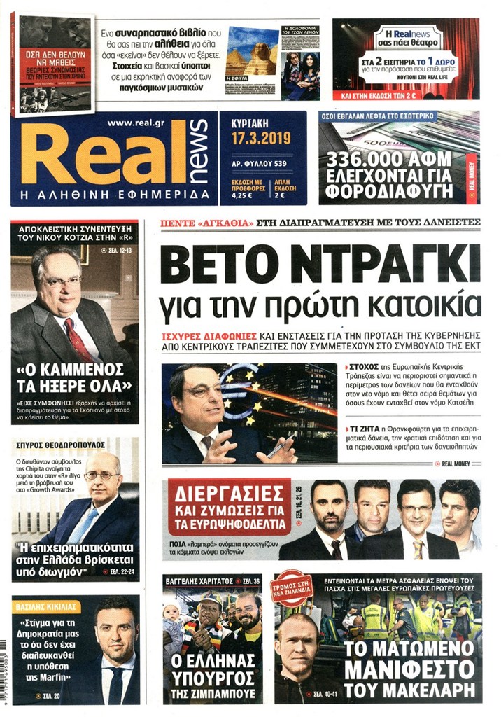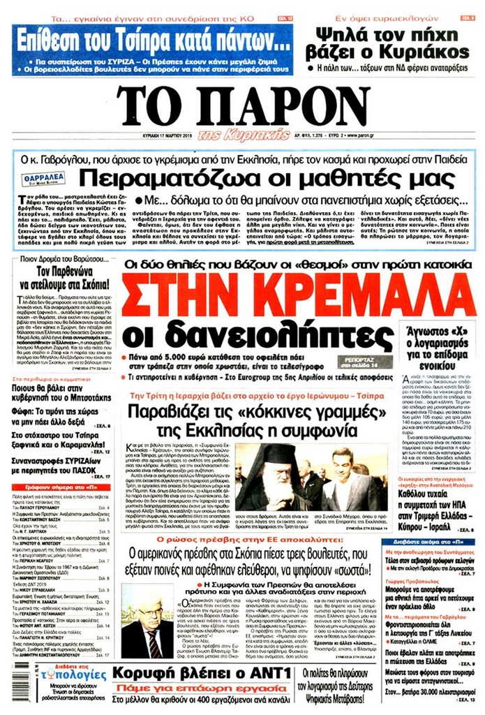 Διαβάστε στο zougla.gr τα πρωτοσέλιδα και τα οπισθόφυλλα των εφημερίδων της Κυριακής.