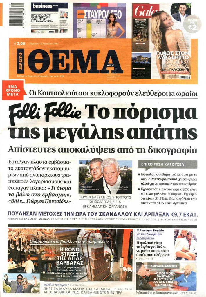 Τα πρωτοσέλιδα των κυριακάτικων εφημερίδων