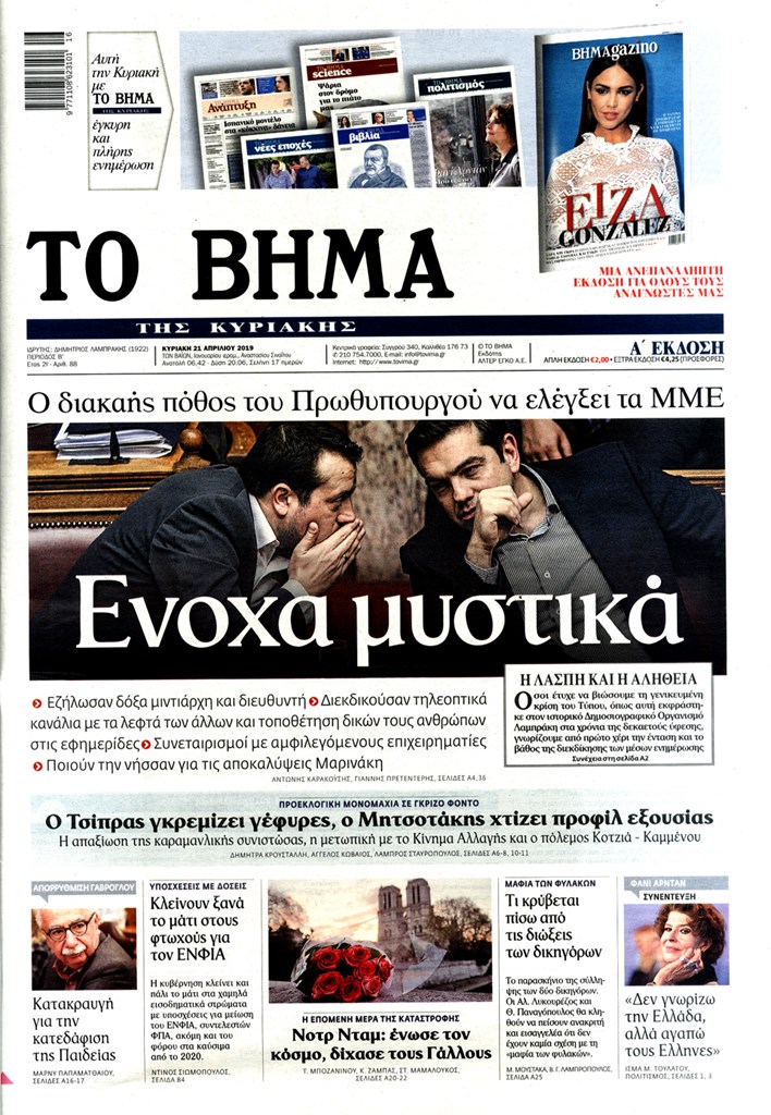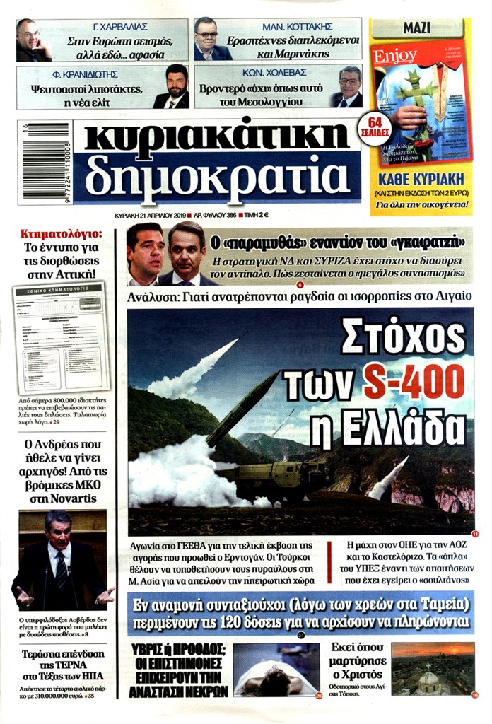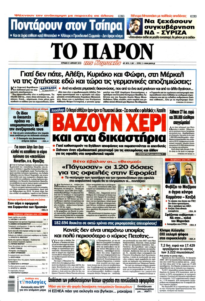 Τα πρωτοσέλιδα των κυριακάτικων εφημερίδων