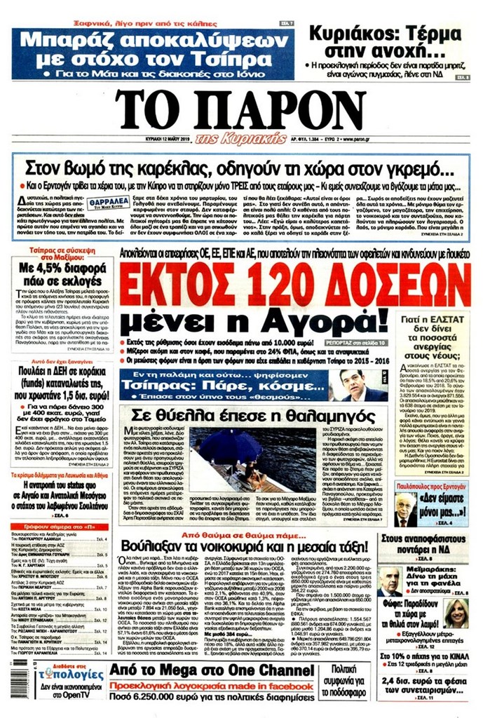 Διαβάστε στο zougla.gr τα πρωτοσέλιδα και τα οπισθόφυλλα των εφημερίδων της Κυριακής.