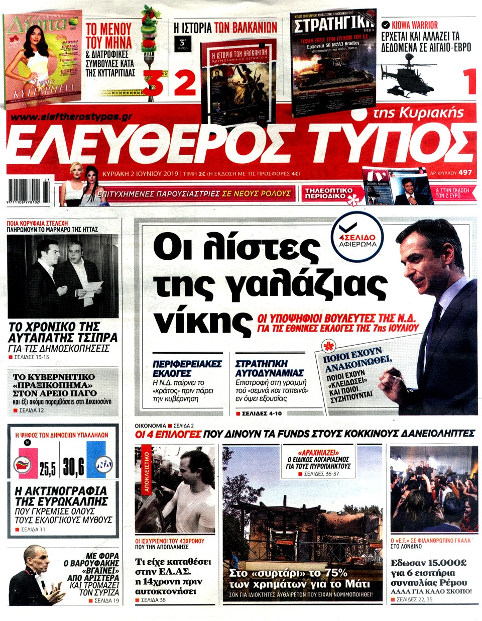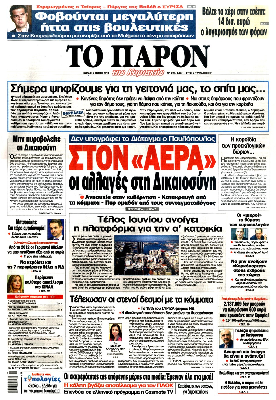 Διαβάστε στο zougla.gr τα πρωτοσέλιδα και τα οπισθόφυλλα των εφημερίδων της Κυριακής.