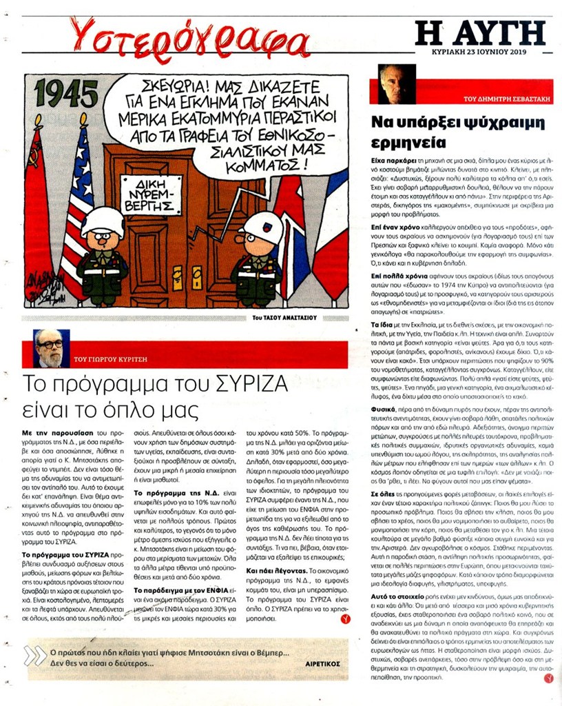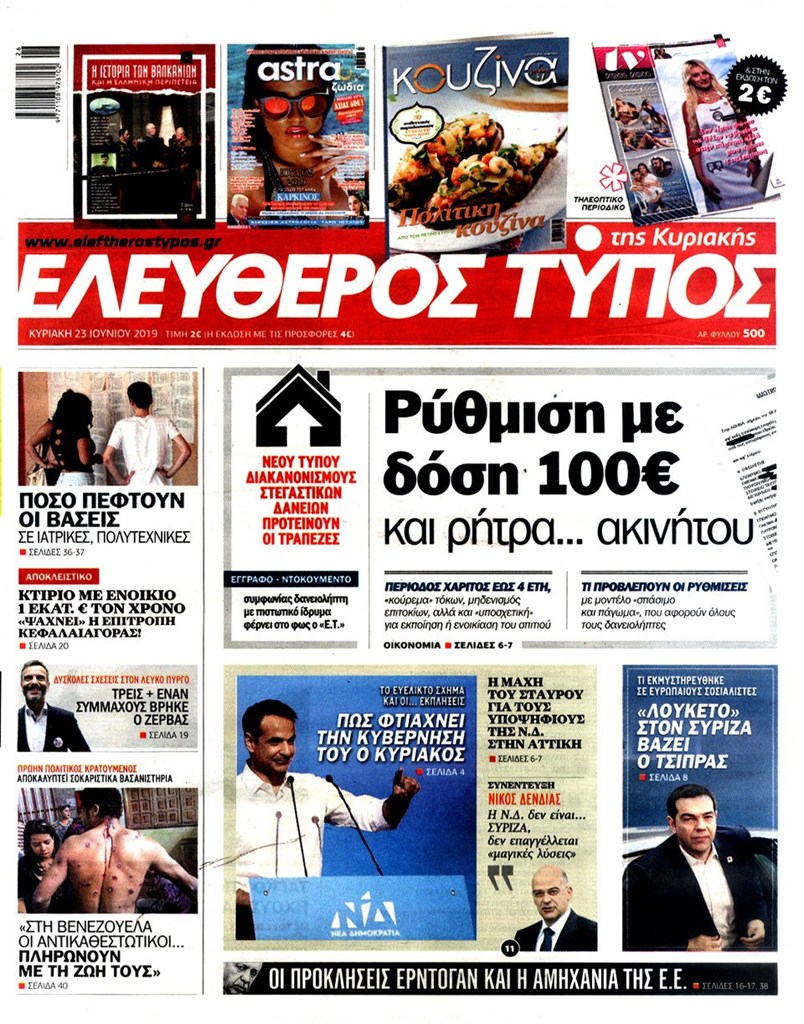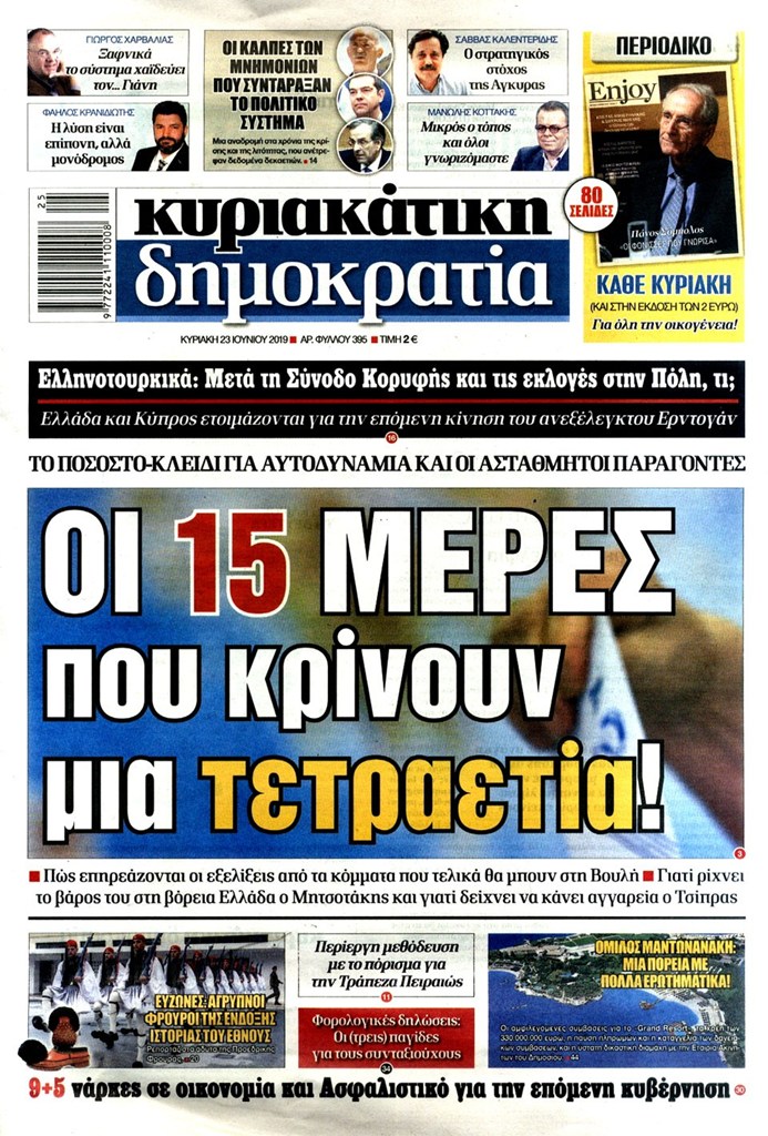 Τα πρωτοσέλιδα των κυριακάτικων εφημερίδων