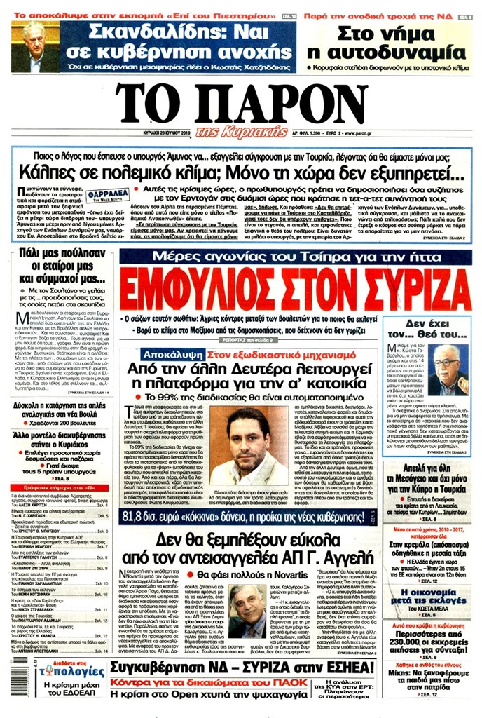 Διαβάστε στο zougla.gr τα πρωτοσέλιδα και τα οπισθόφυλλα των εφημερίδων της Κυριακής...