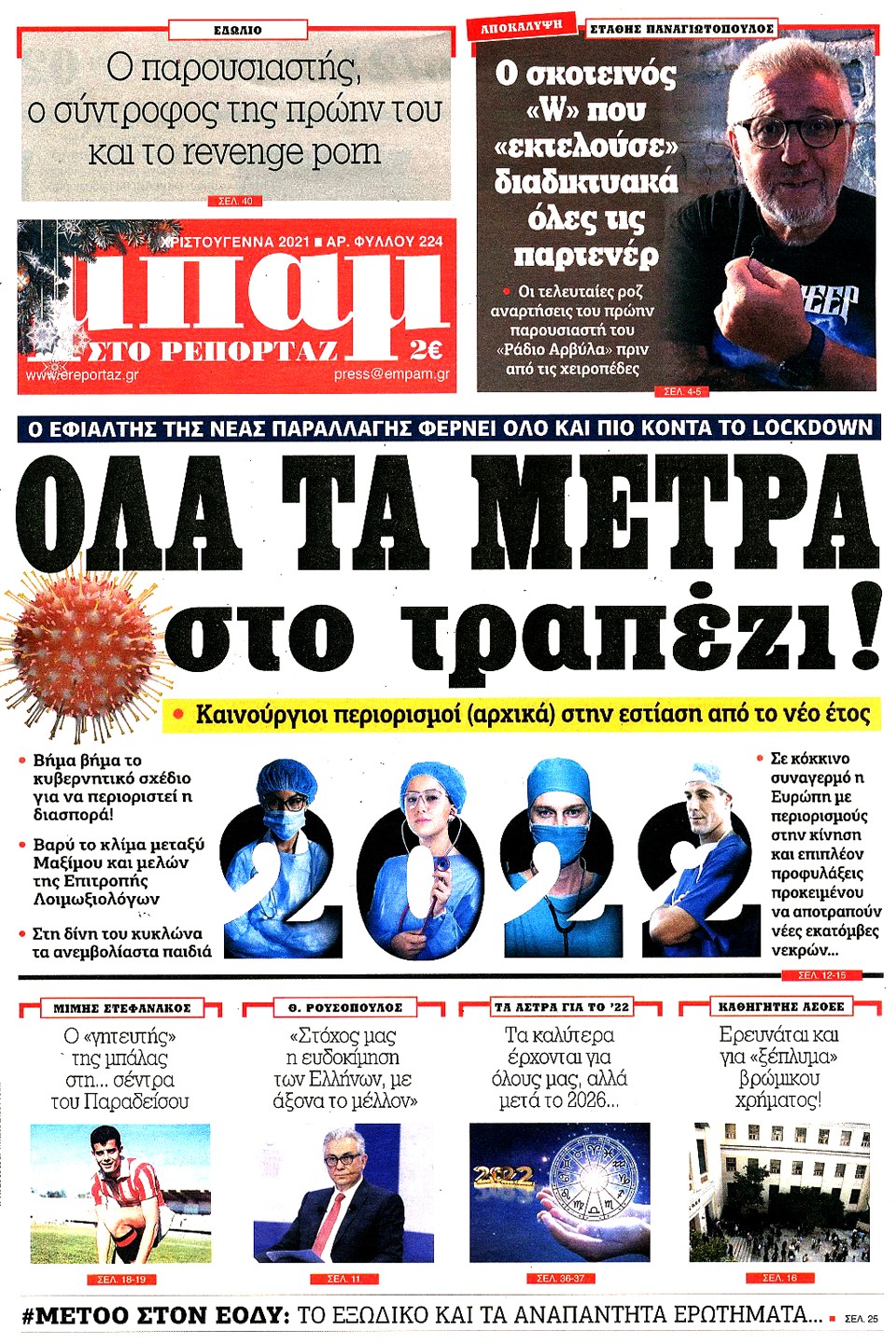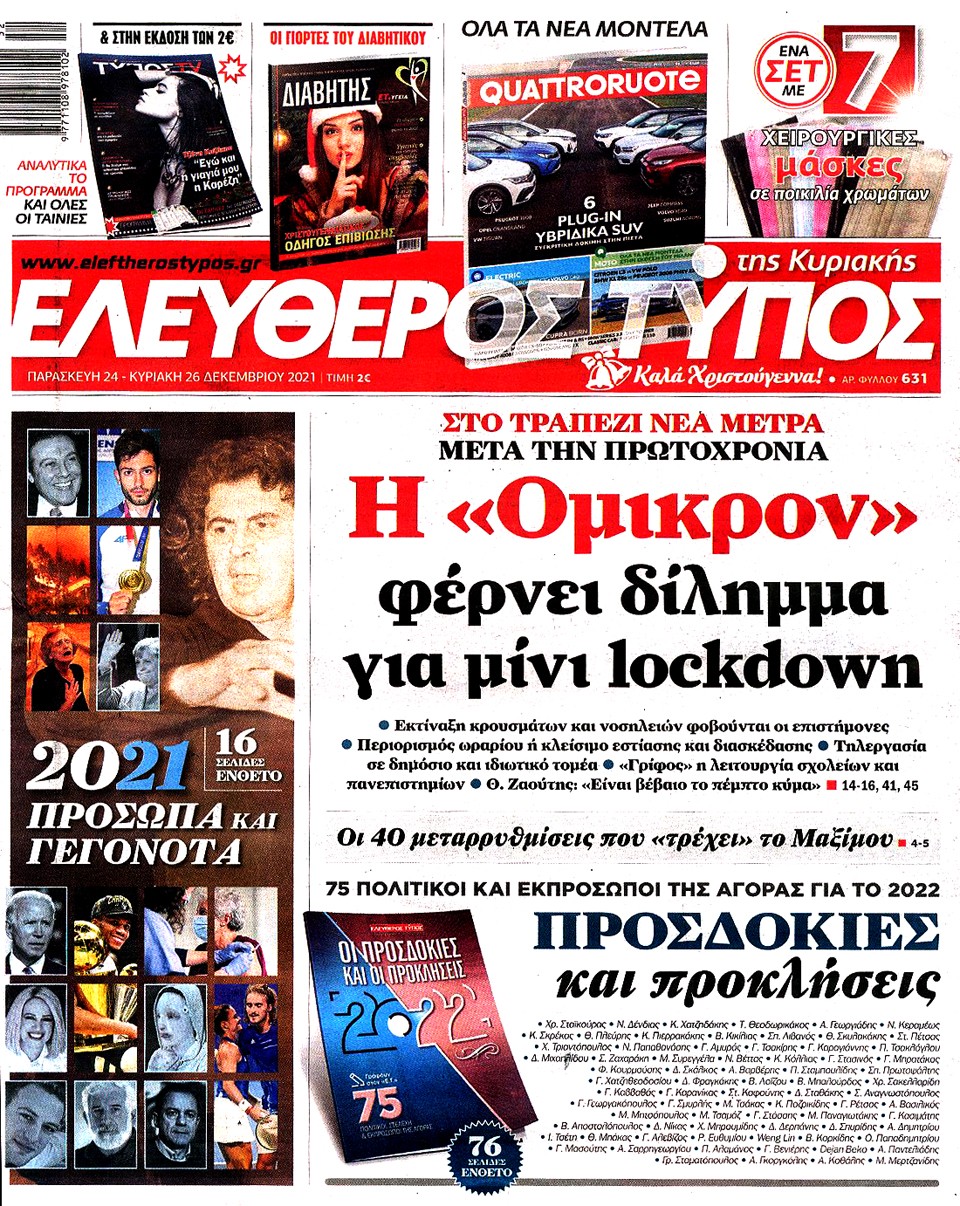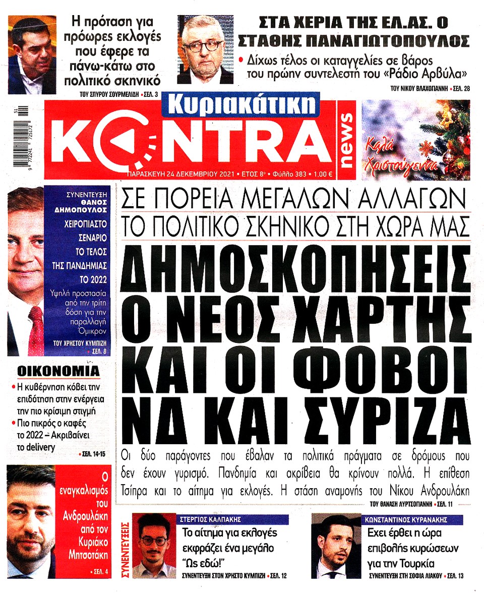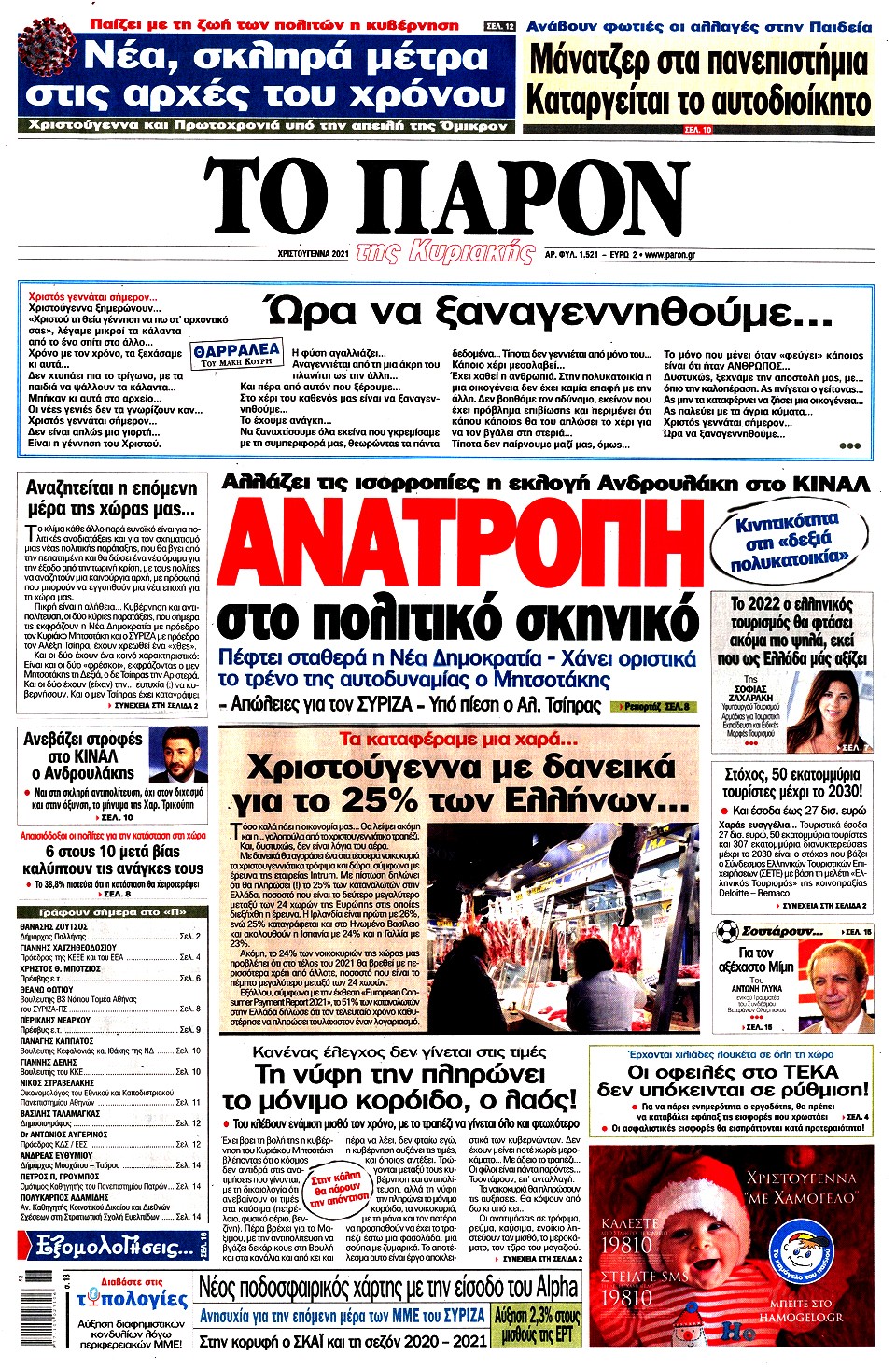 Διαβάστε στο zougla.gr τα πρωτοσέλιδα και τα οπισθόφυλλα των κυριακάτικων εφημερίδων που κυκλοφορούν εκτάκτως την Παρασκευή και για όλο το Σαββατοκύριακο.