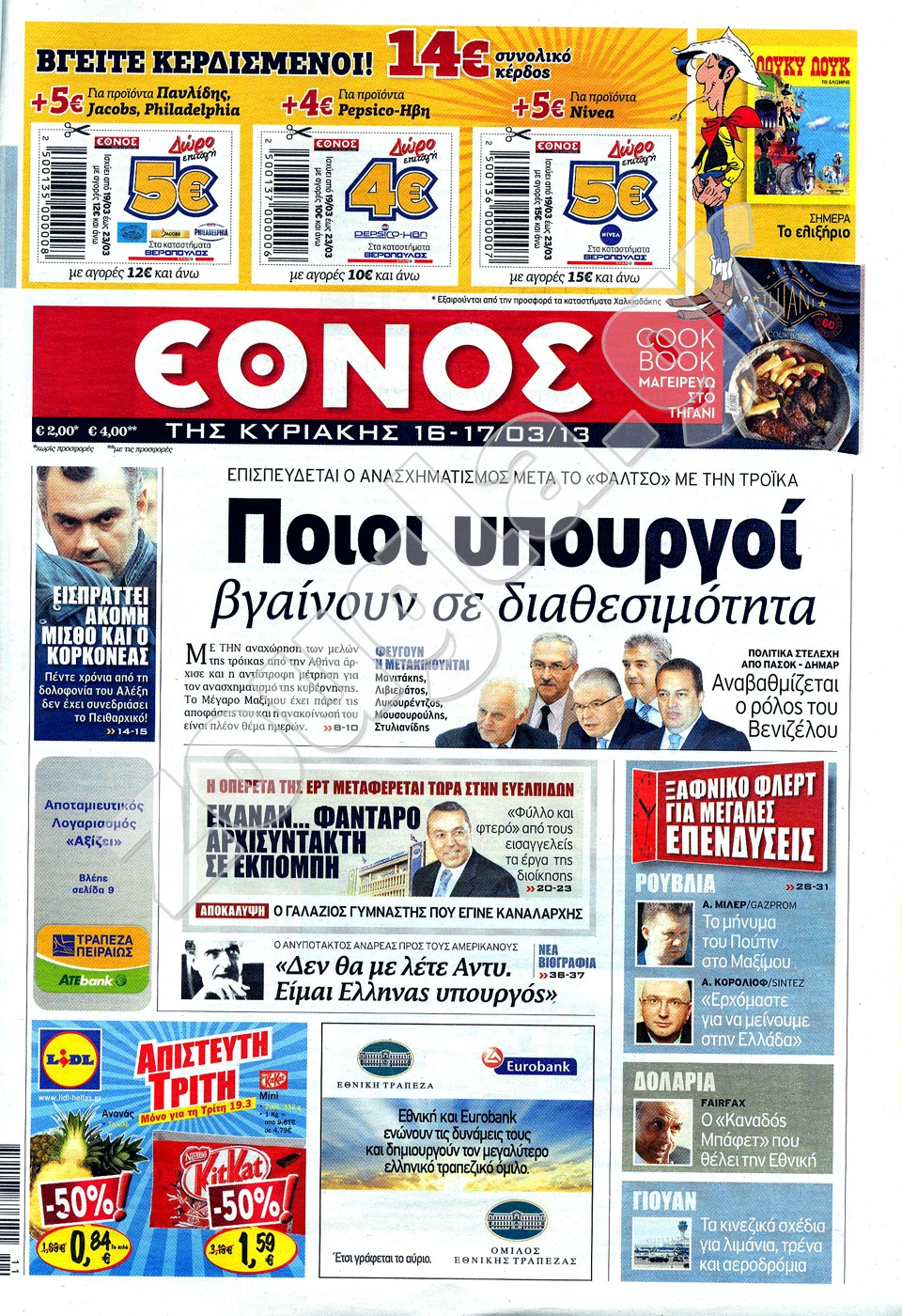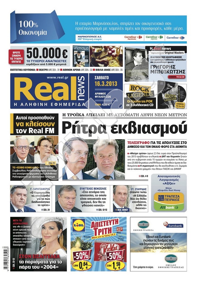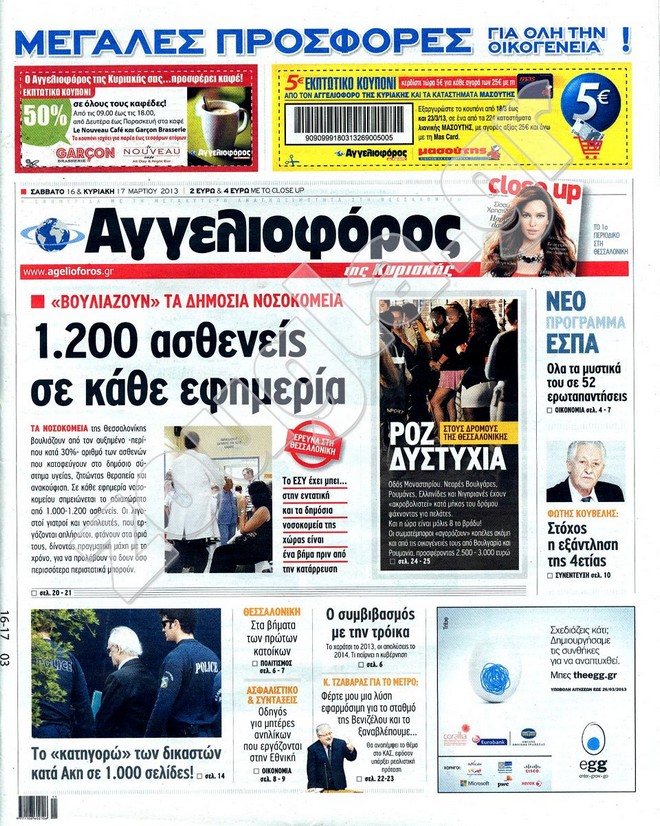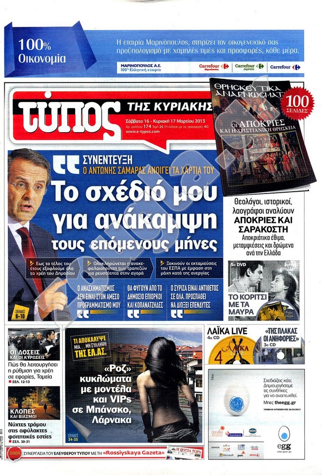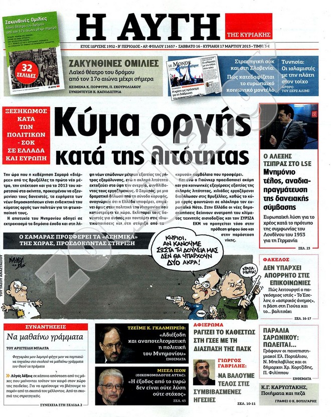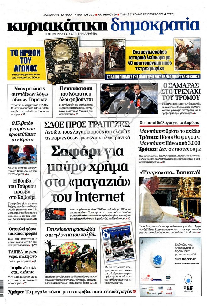 Διαβάστε από σήμερα στη zougla.gr τα πρωτοσέλιδα των κυριακάτικων εφημερίδων που κυκλοφορούν εκτάκτως το Σάββατο.