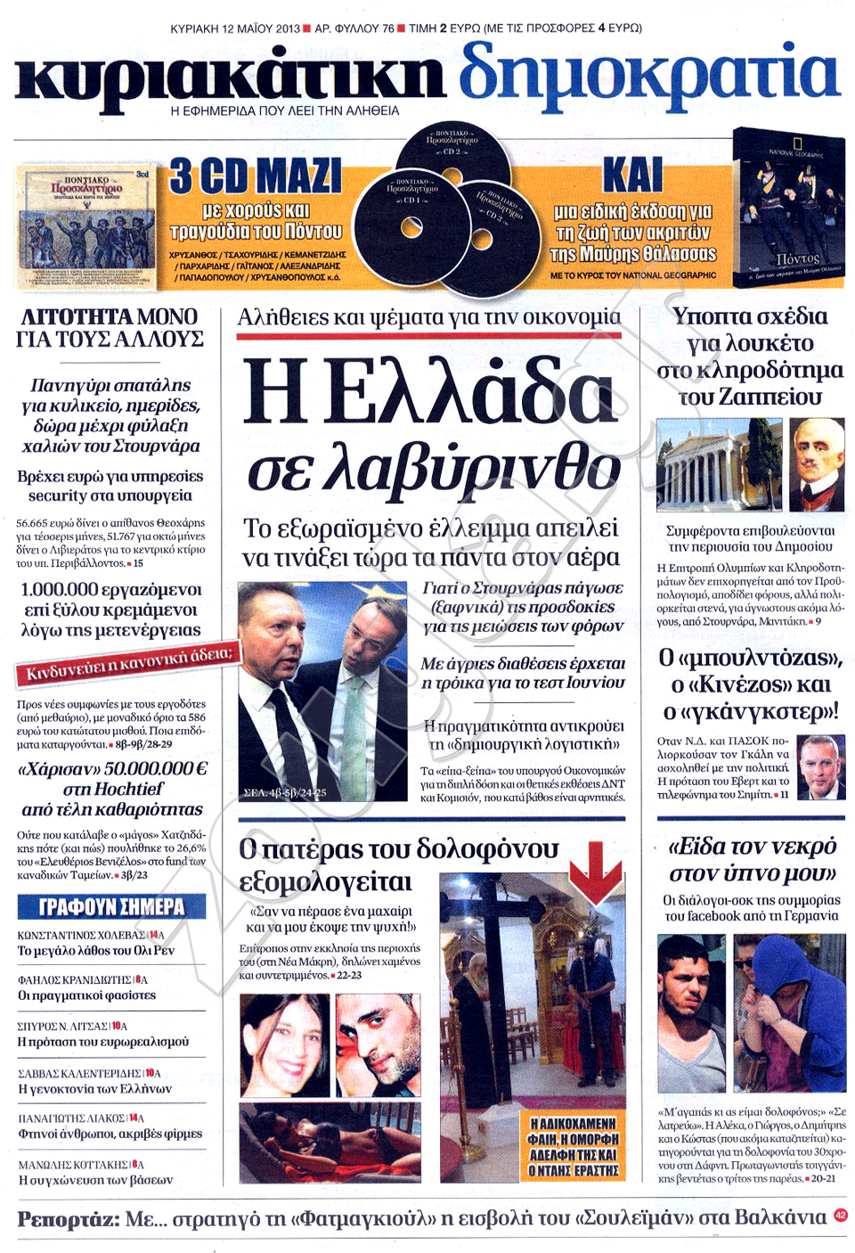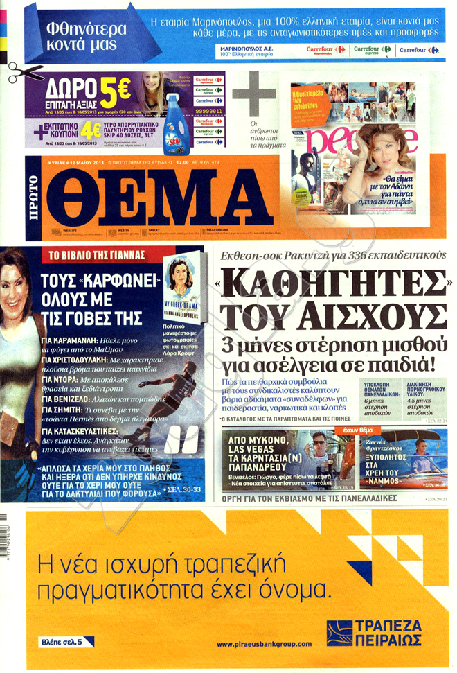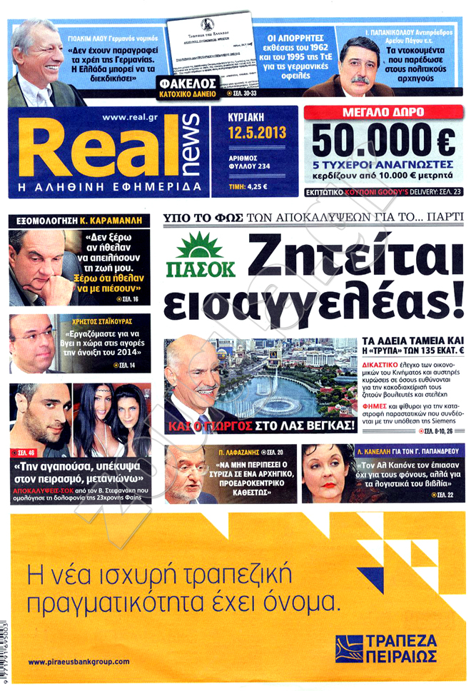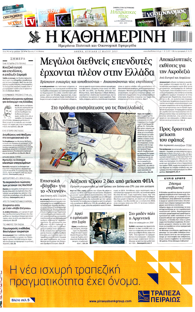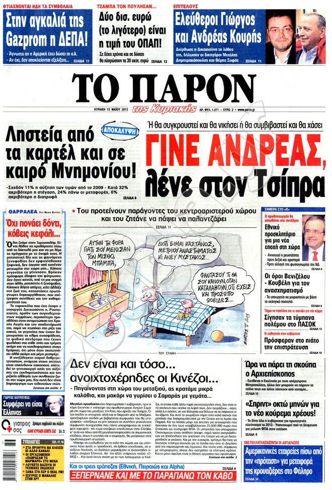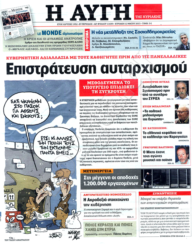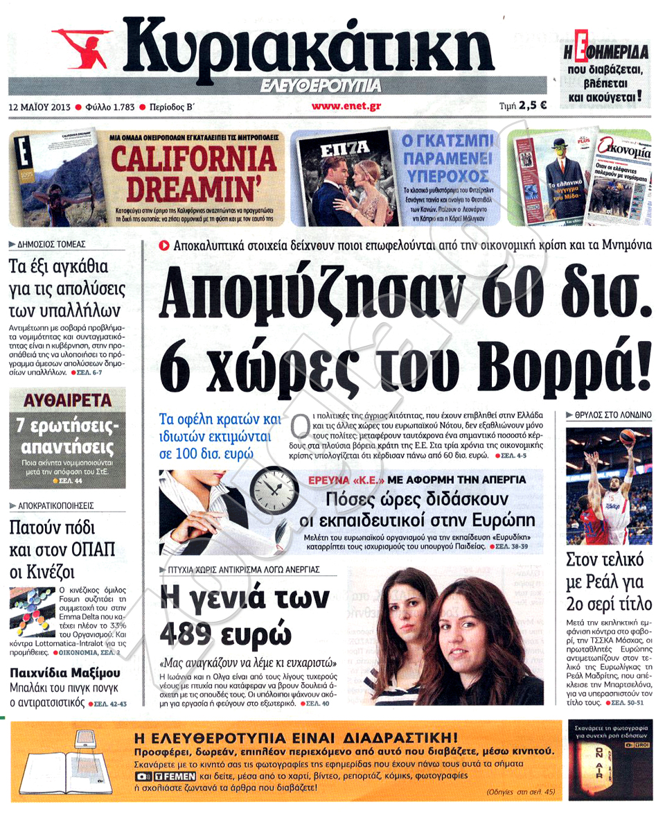 Διαβάστε στη zougla.gr τα πρωτοσέλιδα των κυριακάτικων εφημερίδων.