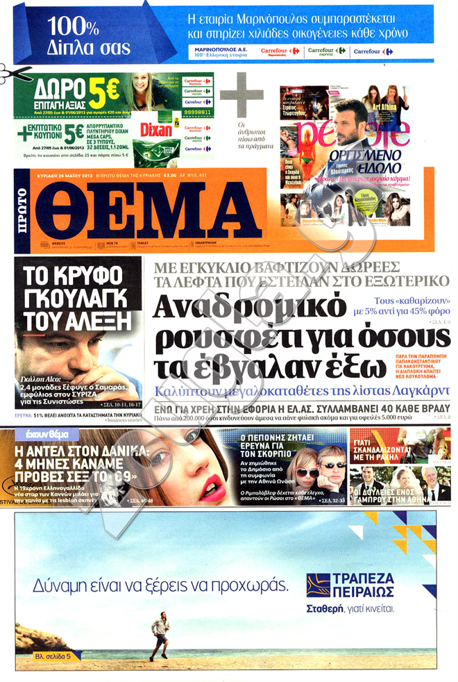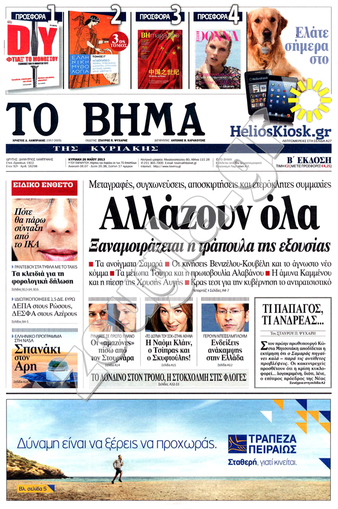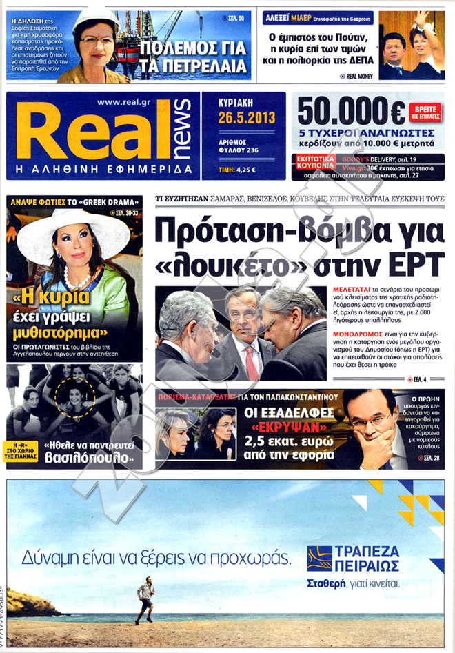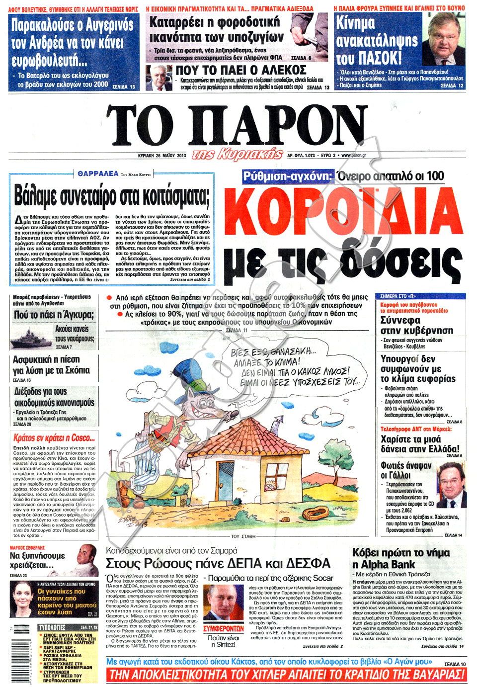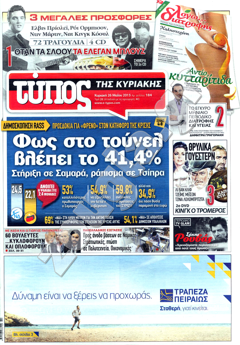 Διαβάστε στη zougla.gr τα πρωτοσέλιδα των κυριακάτικων εφημερίδων.