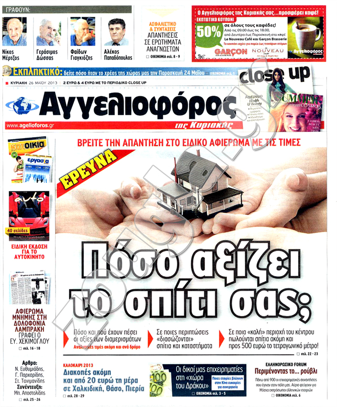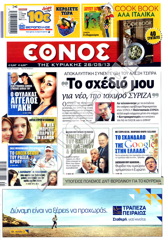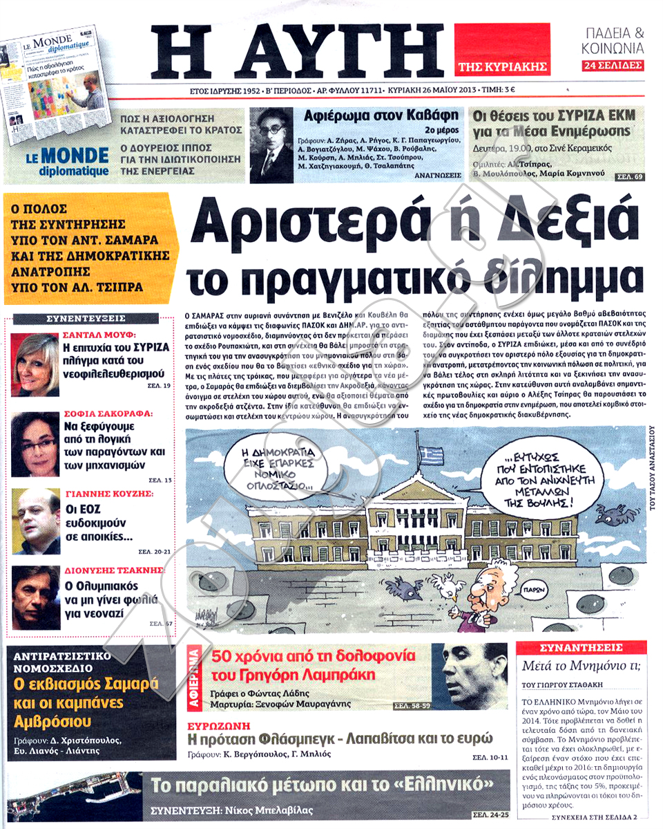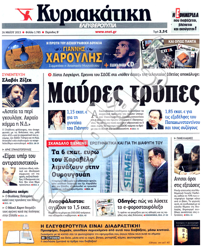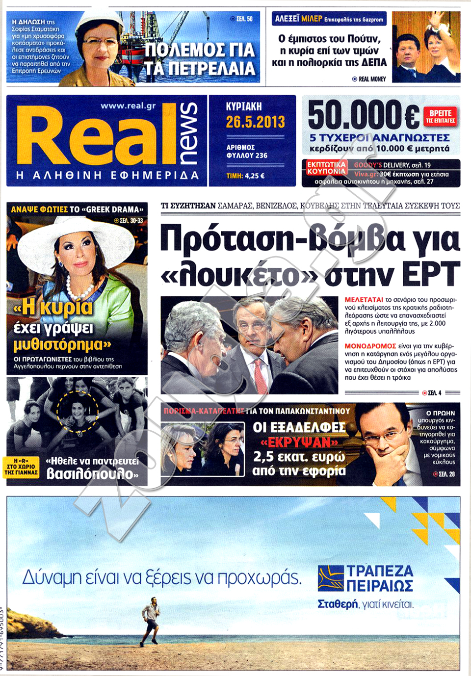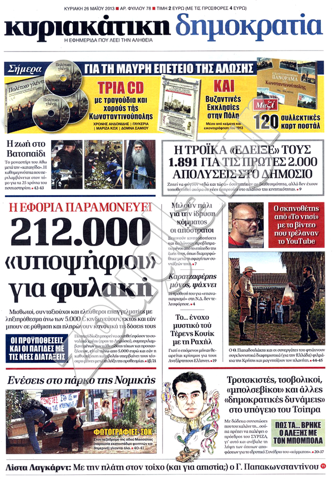 Διαβάστε στη zougla.gr τα πρωτοσέλιδα των κυριακάτικων εφημερίδων.