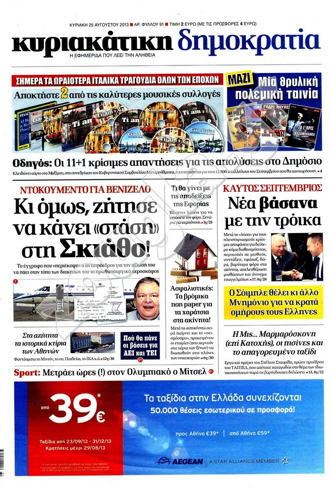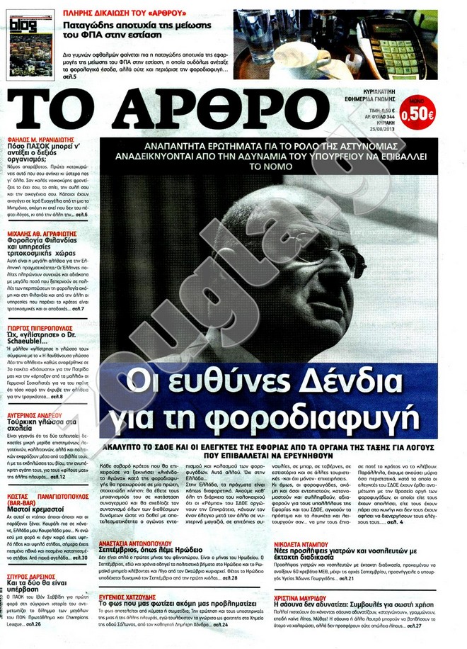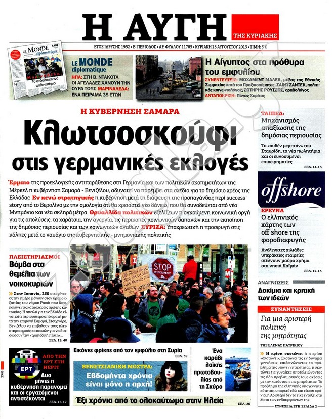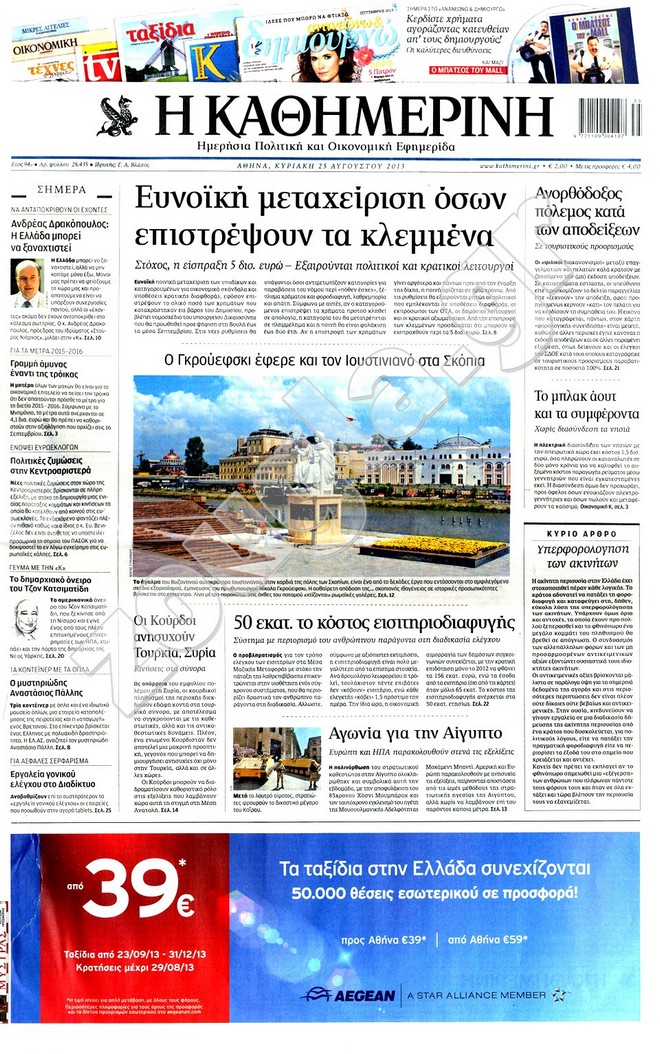 Διαβάστε στη zougla.gr τα πρωτοσέλιδα των κυριακάτικων εφημερίδων...