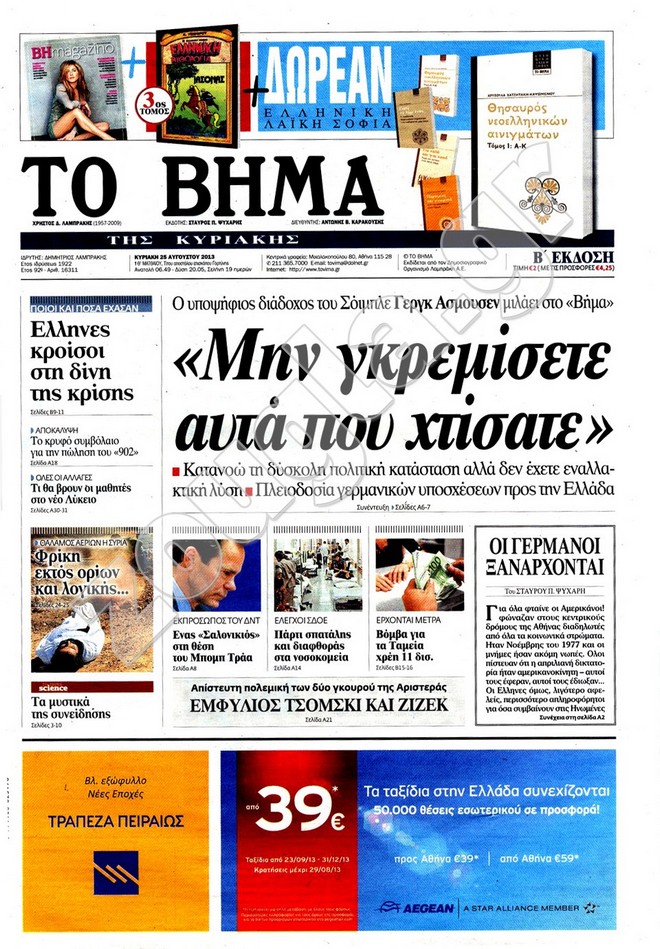 Τα πρωτοσέλιδα των κυριακάτικων εφημερίδων