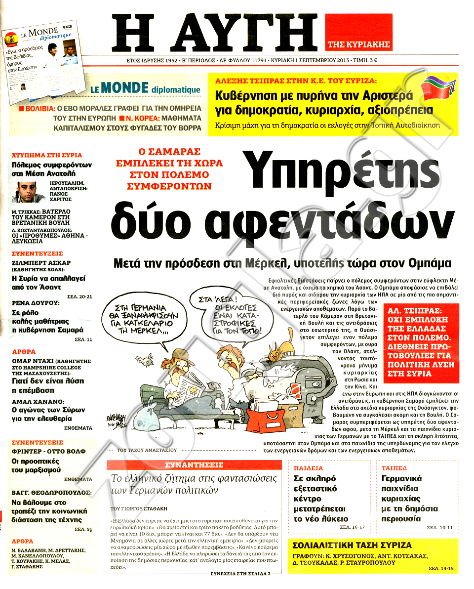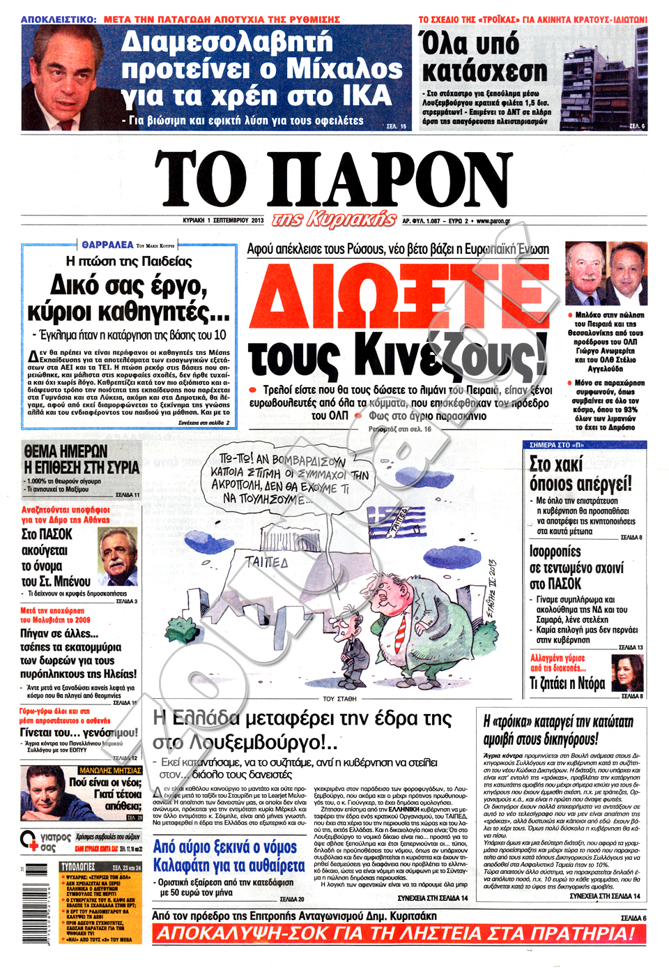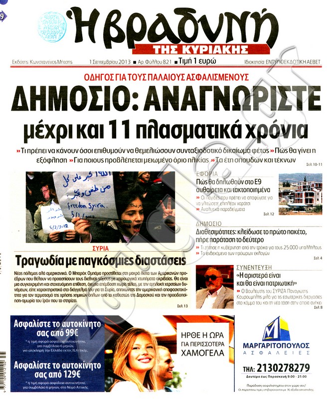 Διαβάστε στη zougla.gr τα πρωτοσέλιδα των κυριακάτικων εφημερίδων.