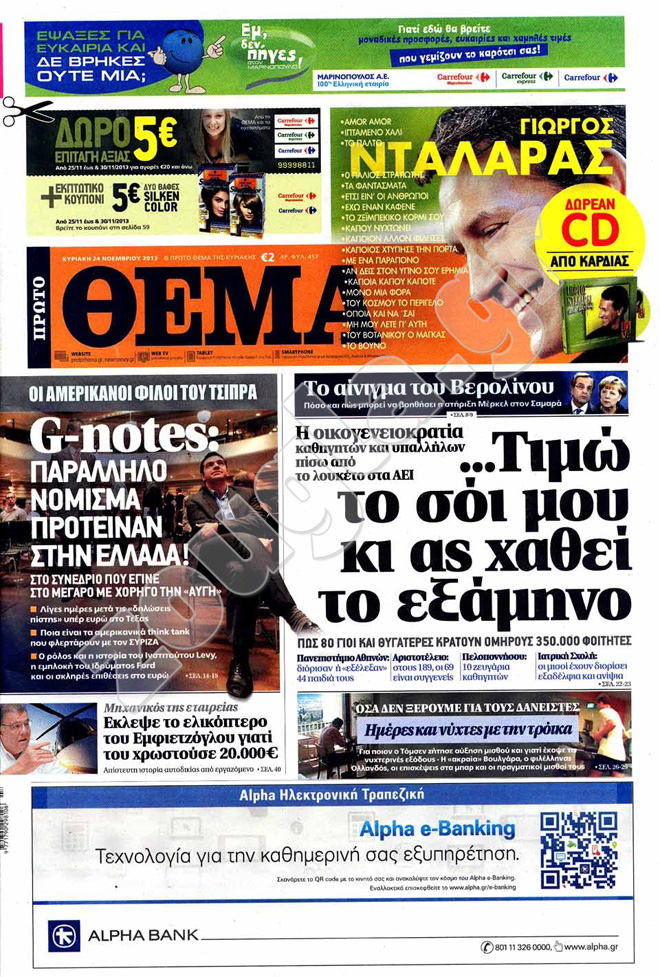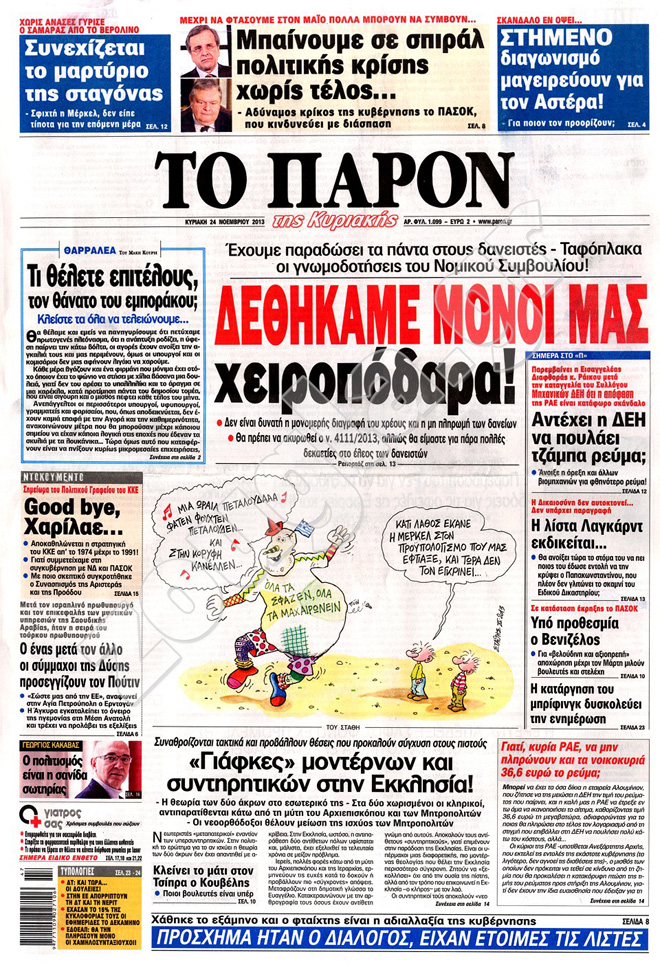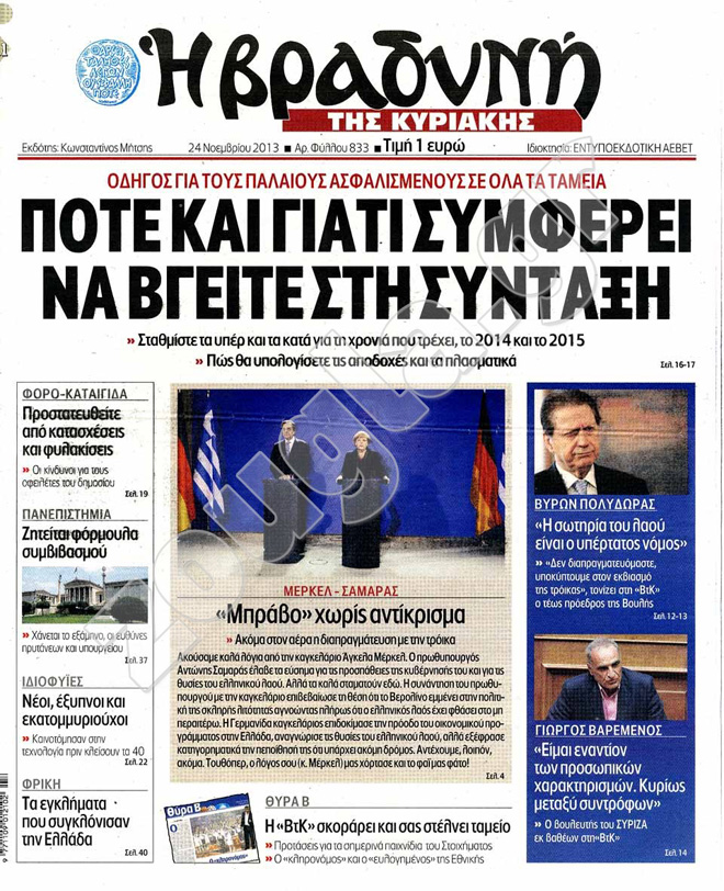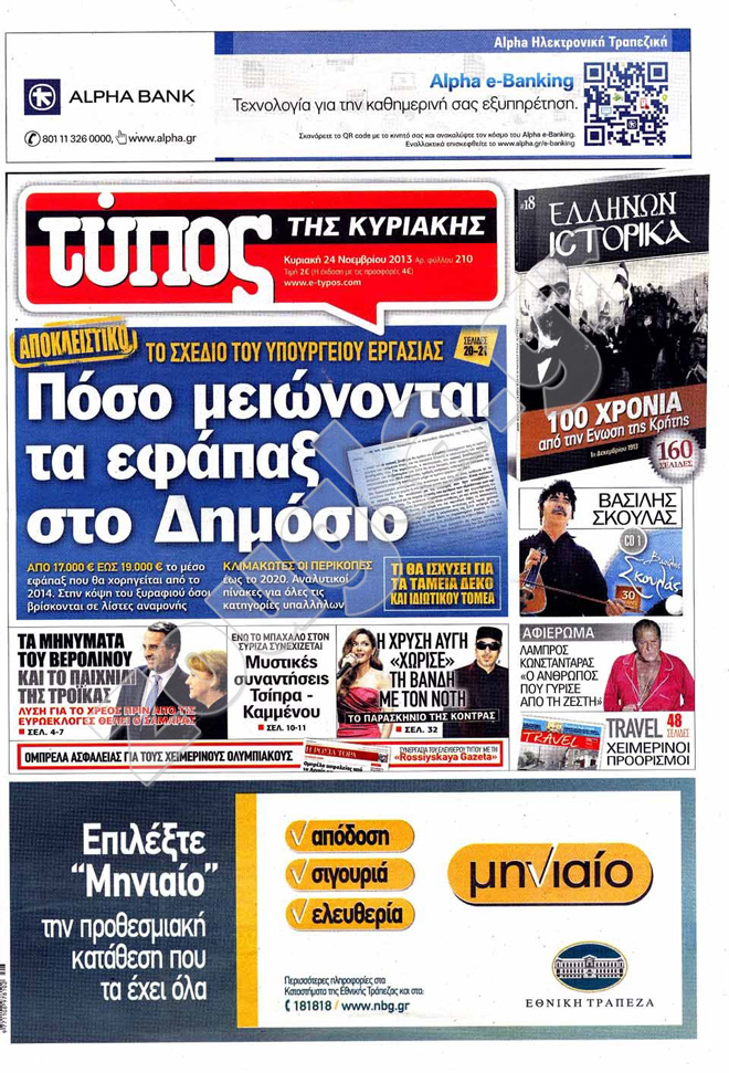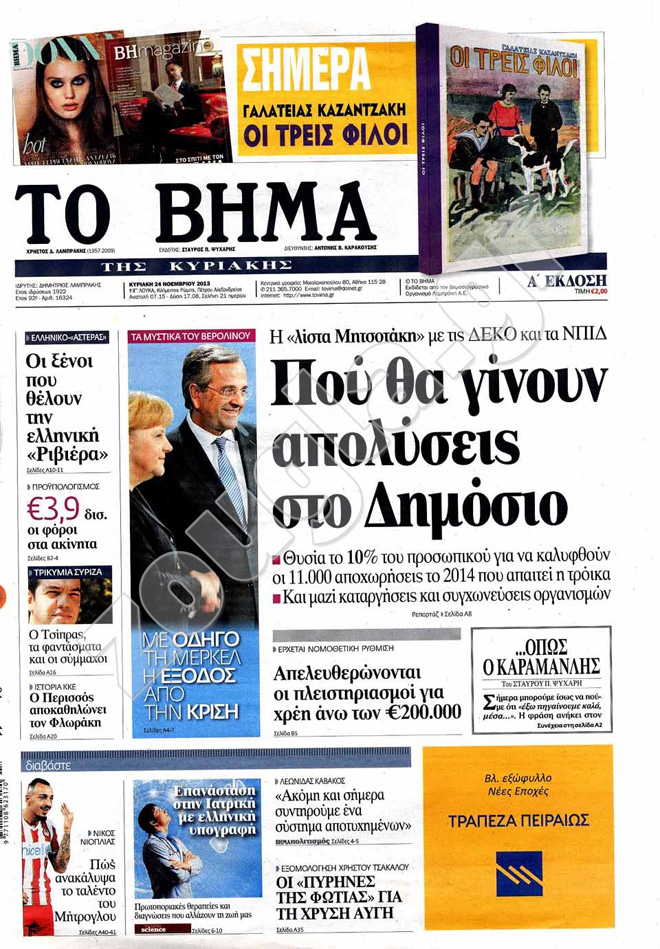 Διαβάστε στo zougla.gr τα πρωτοσέλιδα των κυριακάτικων εφημερίδων…
