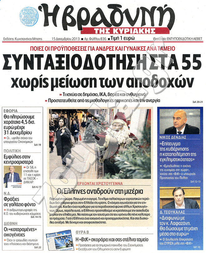 Διαβάστε στο zougla.gr τα πρωτοσέλιδα των κυριακάτικων εφημερίδων…