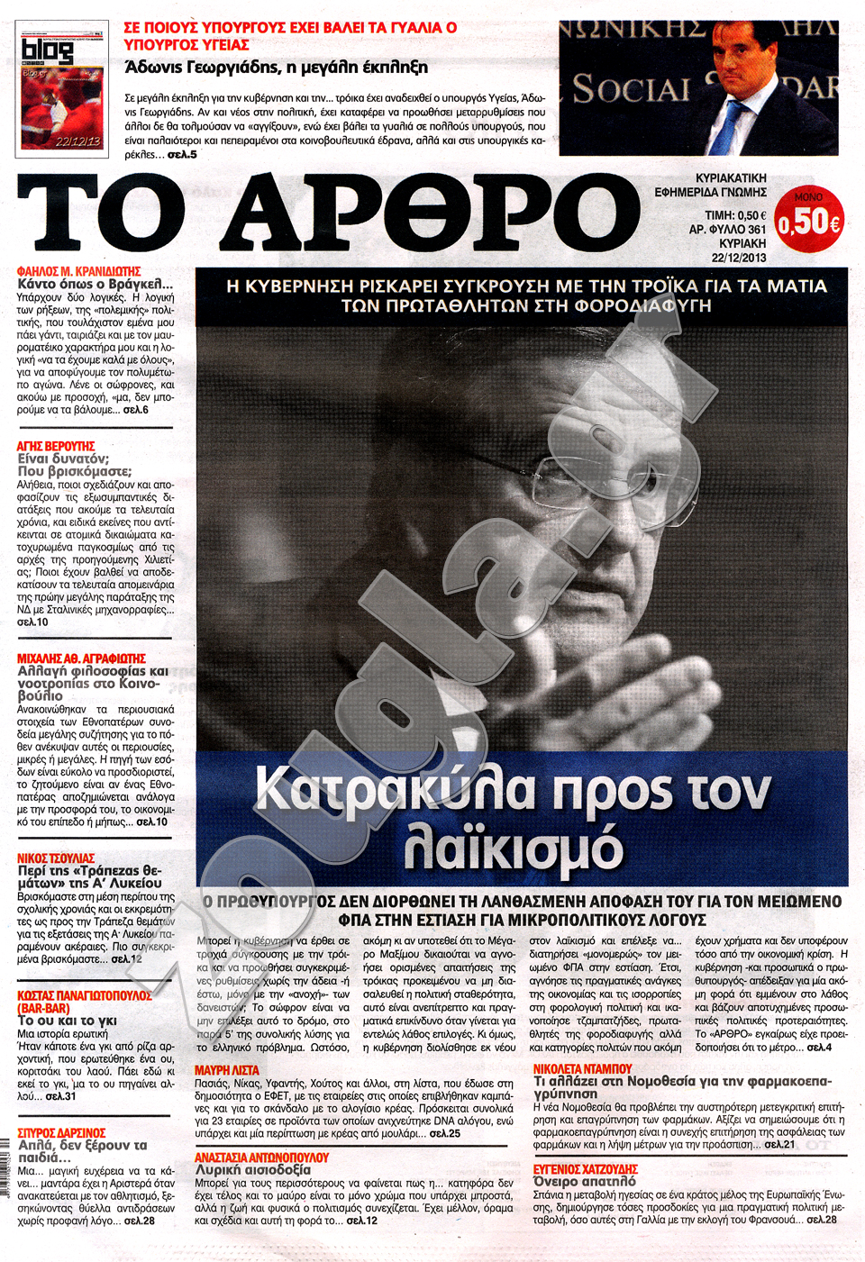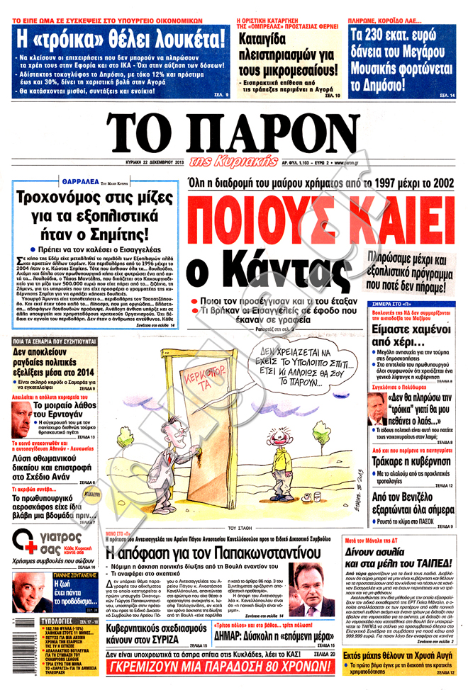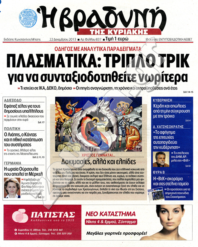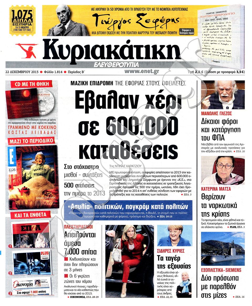 Τα πρωτοσέλιδα των κυριακάτικων εφημερίδων…