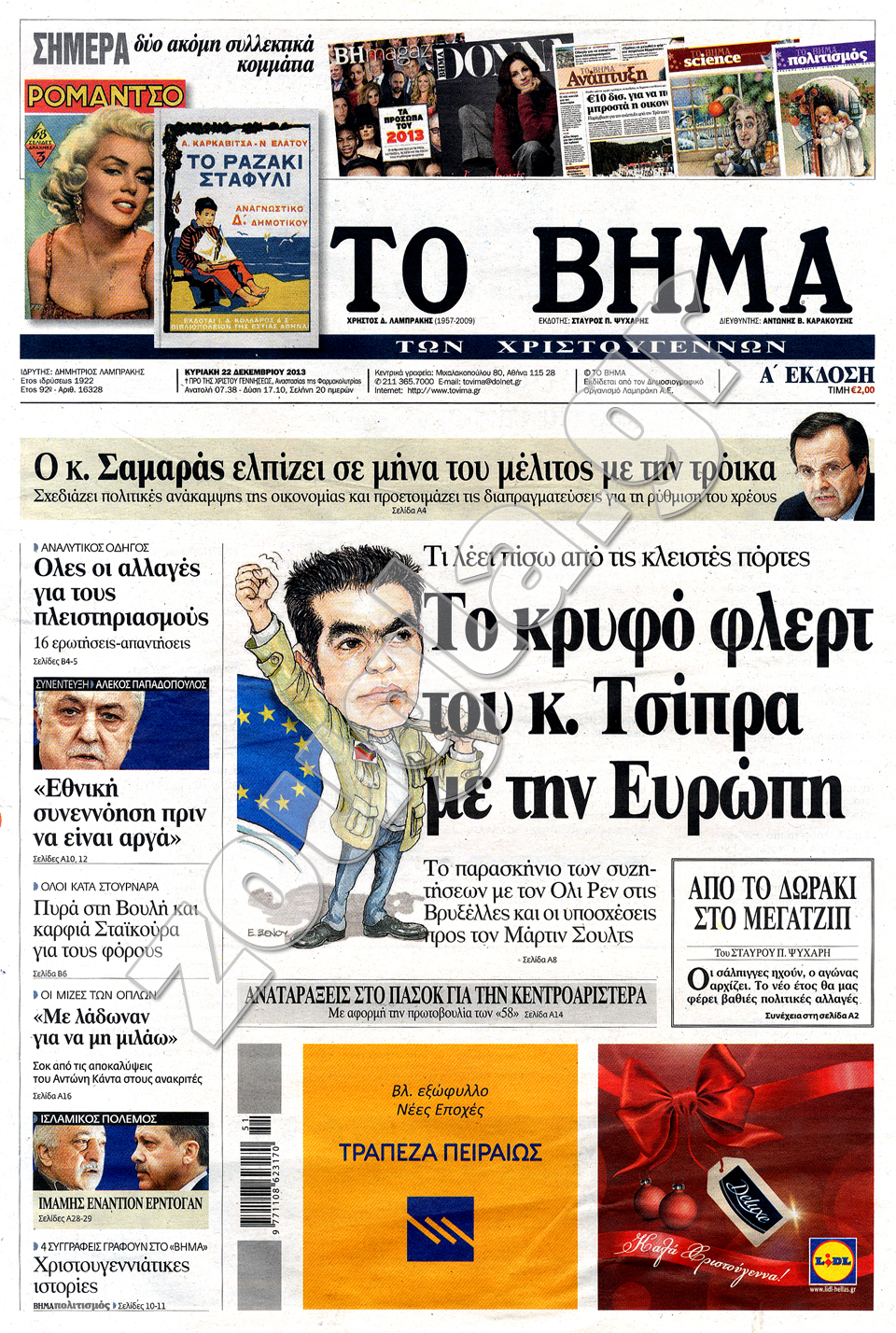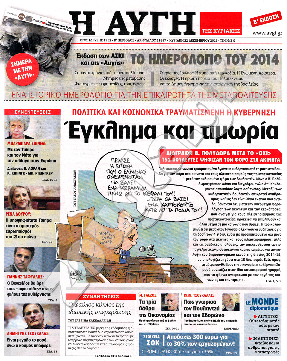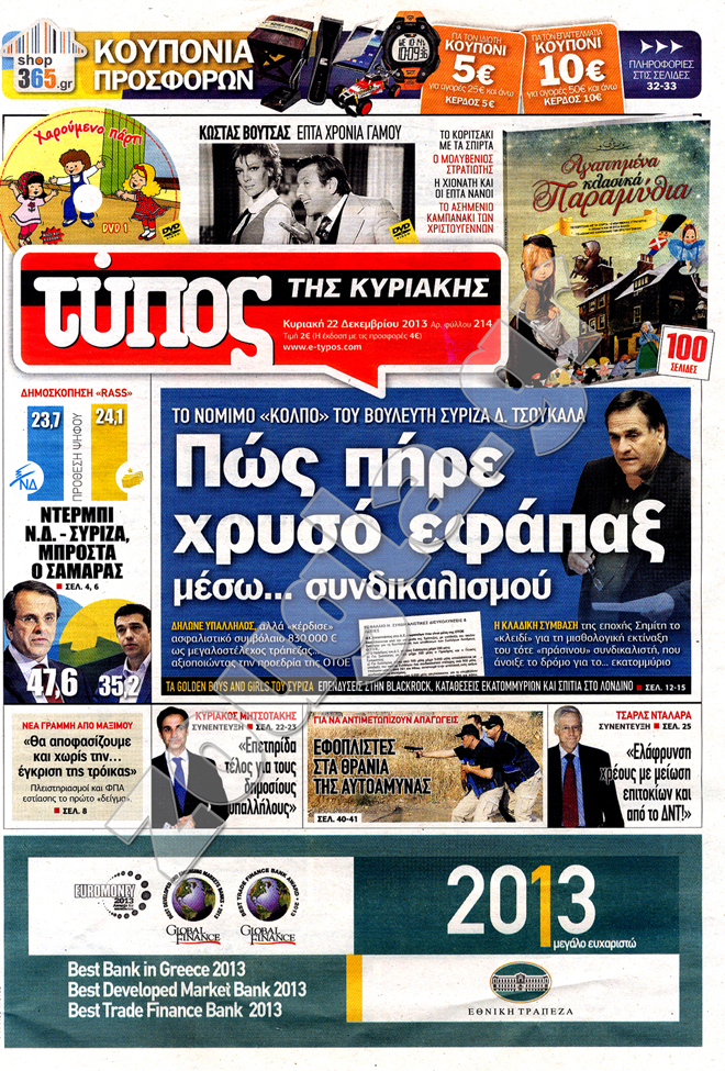 Διαβάστε στο zougla.gr τα πρωτοσέλιδα των κυριακάτικων εφημερίδων...