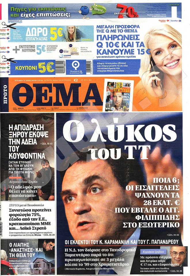 Διαβάστε στo zougla.gr τα πρωτοσέλιδα των κυριακάτικων εφημερίδων.
