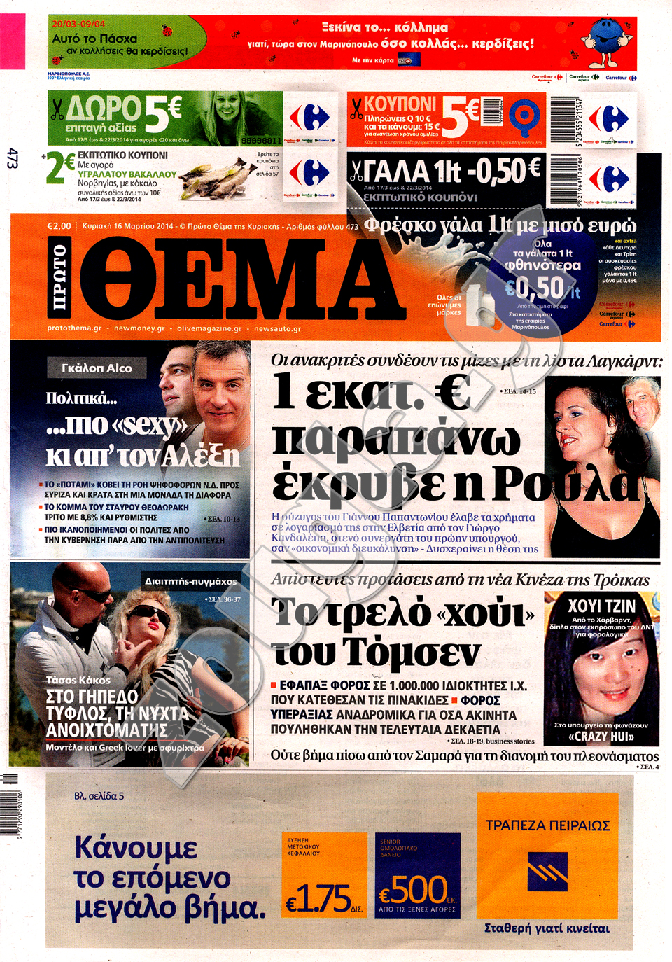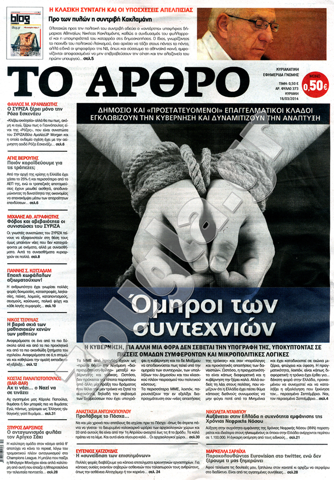 Η σειρά με την οποία παρατίθενται τα πρωτοσέλιδα των εφημερίδων βασίζεται στην τελευταία μέτρηση κυκλοφοριών της περασμένης Κυριακής.