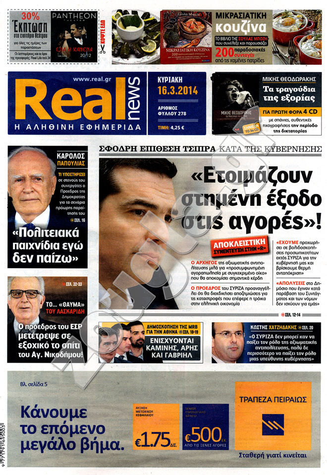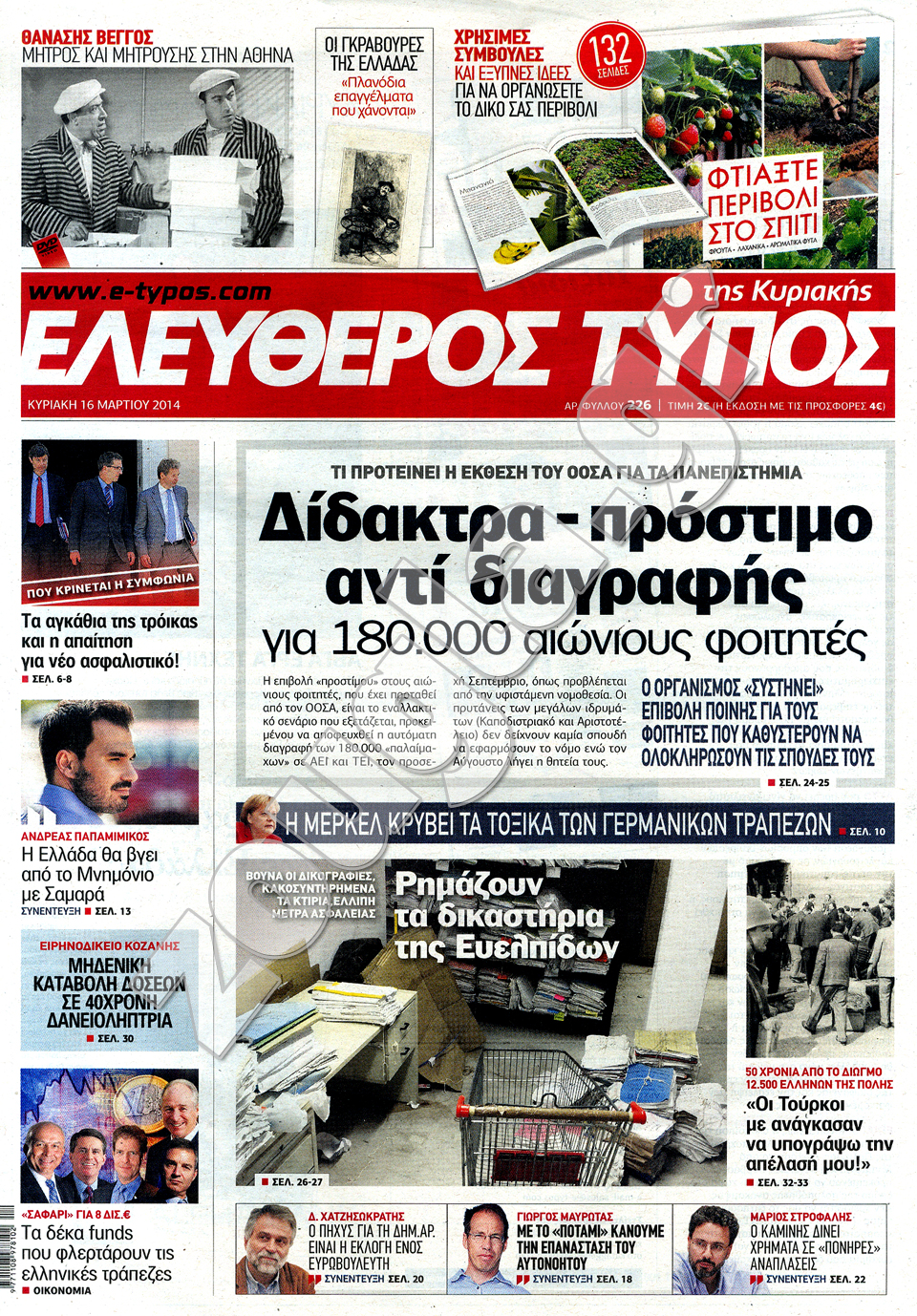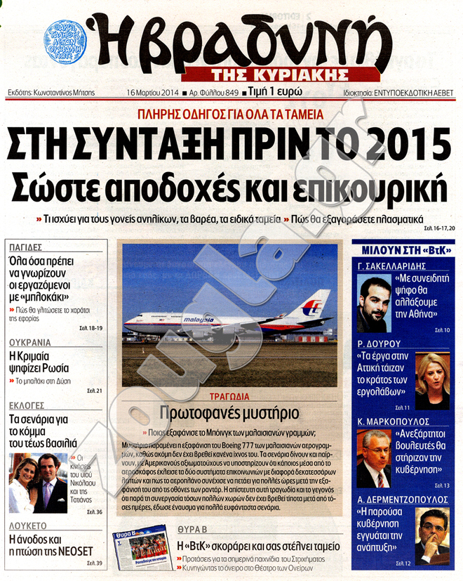 Διαβάστε στo zougla.gr τα πρωτοσέλιδα των κυριακάτικων εφημερίδων.