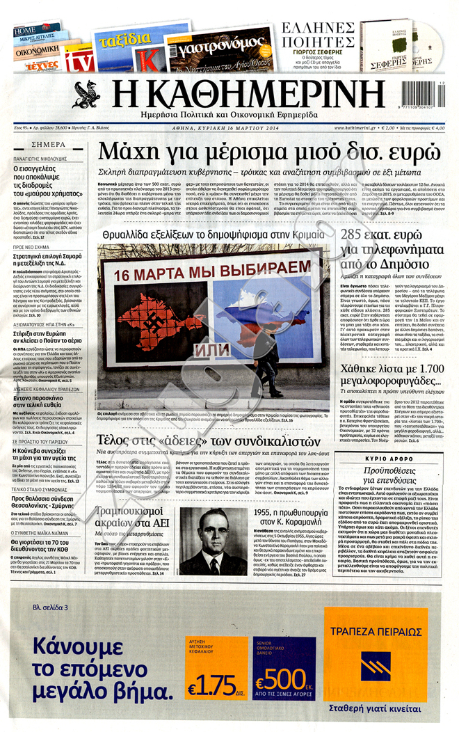 H Kαθημερινή δεν δημοσιοποιεί τις κυκλοφορίες της και ως εκ τούτου τοποθετείται στο τέλος των πρωτοσέλιδων.