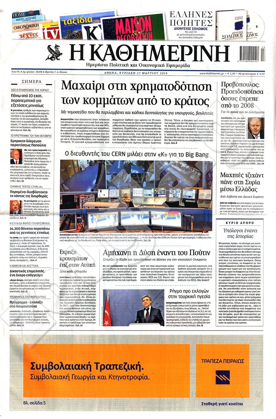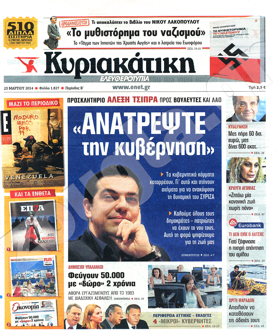 Διαβάστε στo zougla.gr τα πρωτοσέλιδα των κυριακάτικων εφημερίδων.