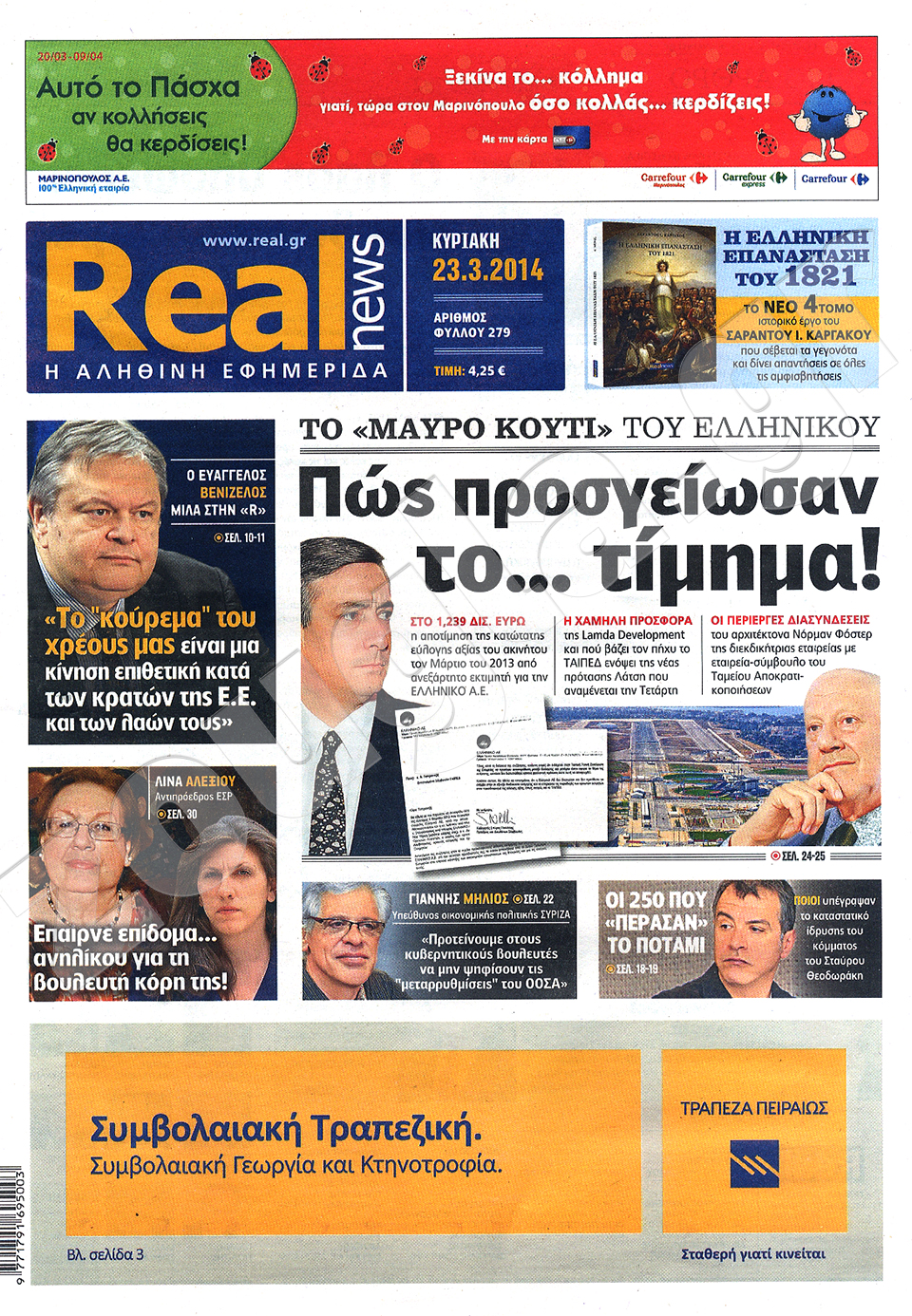Η σειρά με την οποία παρατίθενται τα πρωτοσέλιδα των εφημερίδων βασίζεται στην τελευταία μέτρηση κυκλοφοριών της περασμένης Κυριακής.