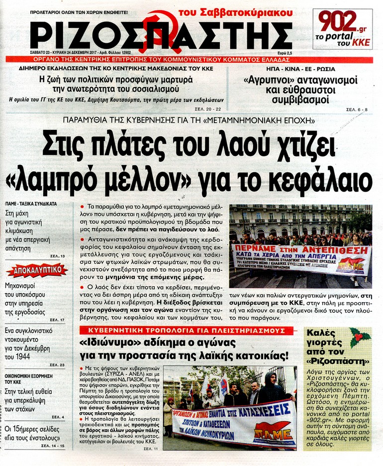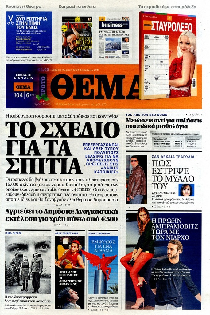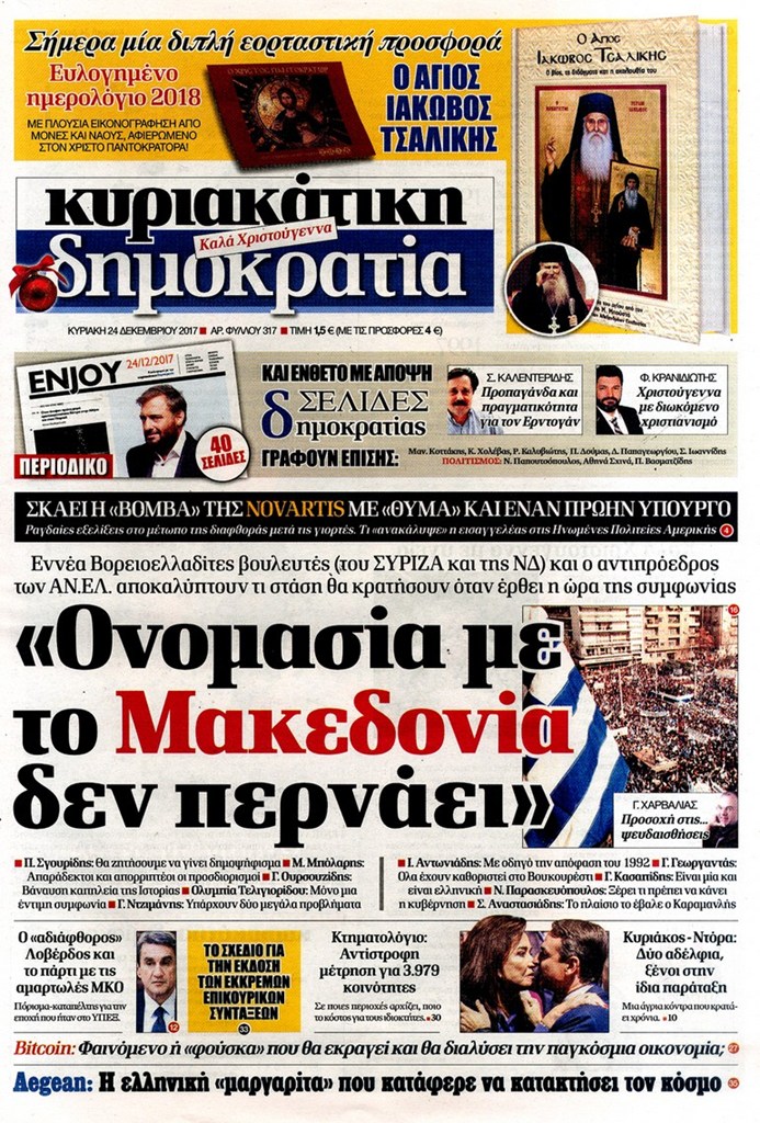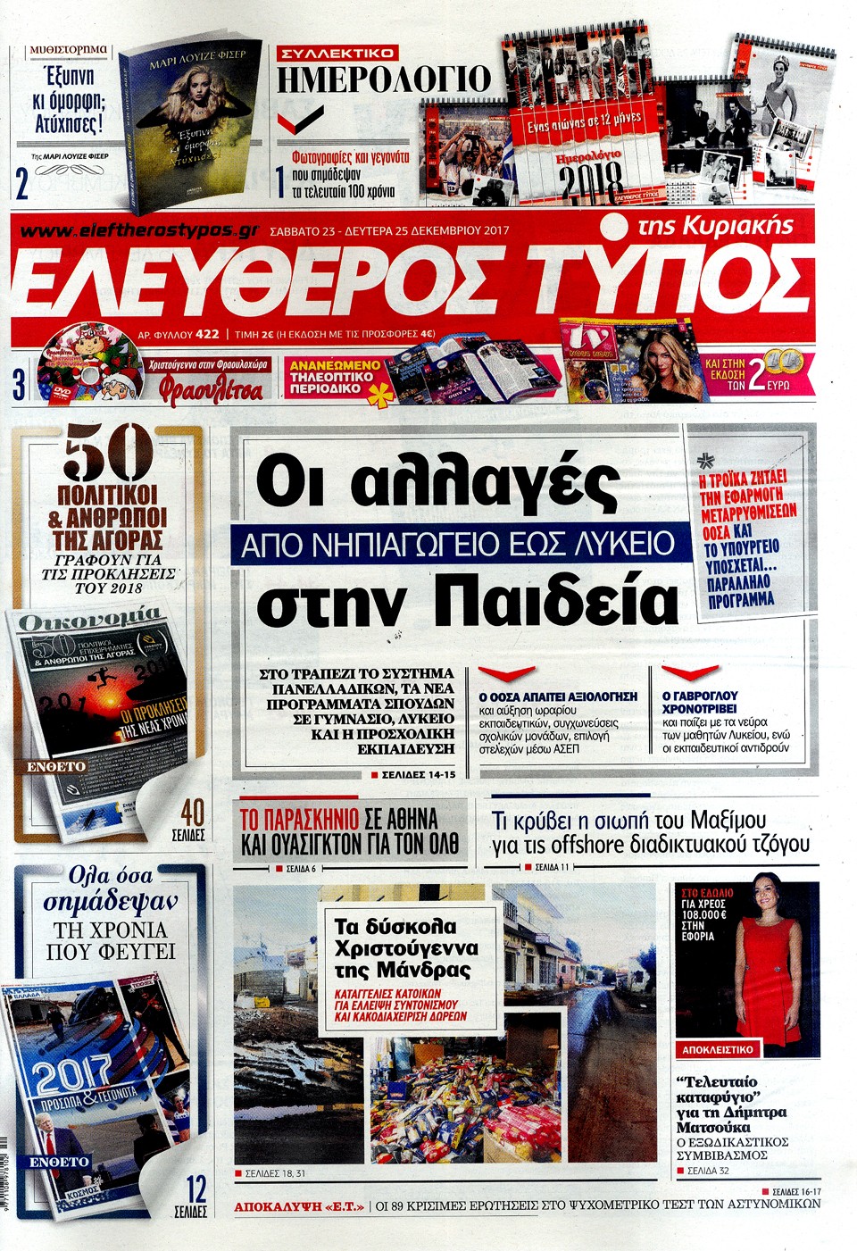 Διαβάστε τα πρωτοσέλιδα και τα οπισθόφυλλα των κυριακάτικων εφημερίδων που κυκλοφορούν εκτάκτως το Σάββατο λόγω των Χριστουγέννων:...