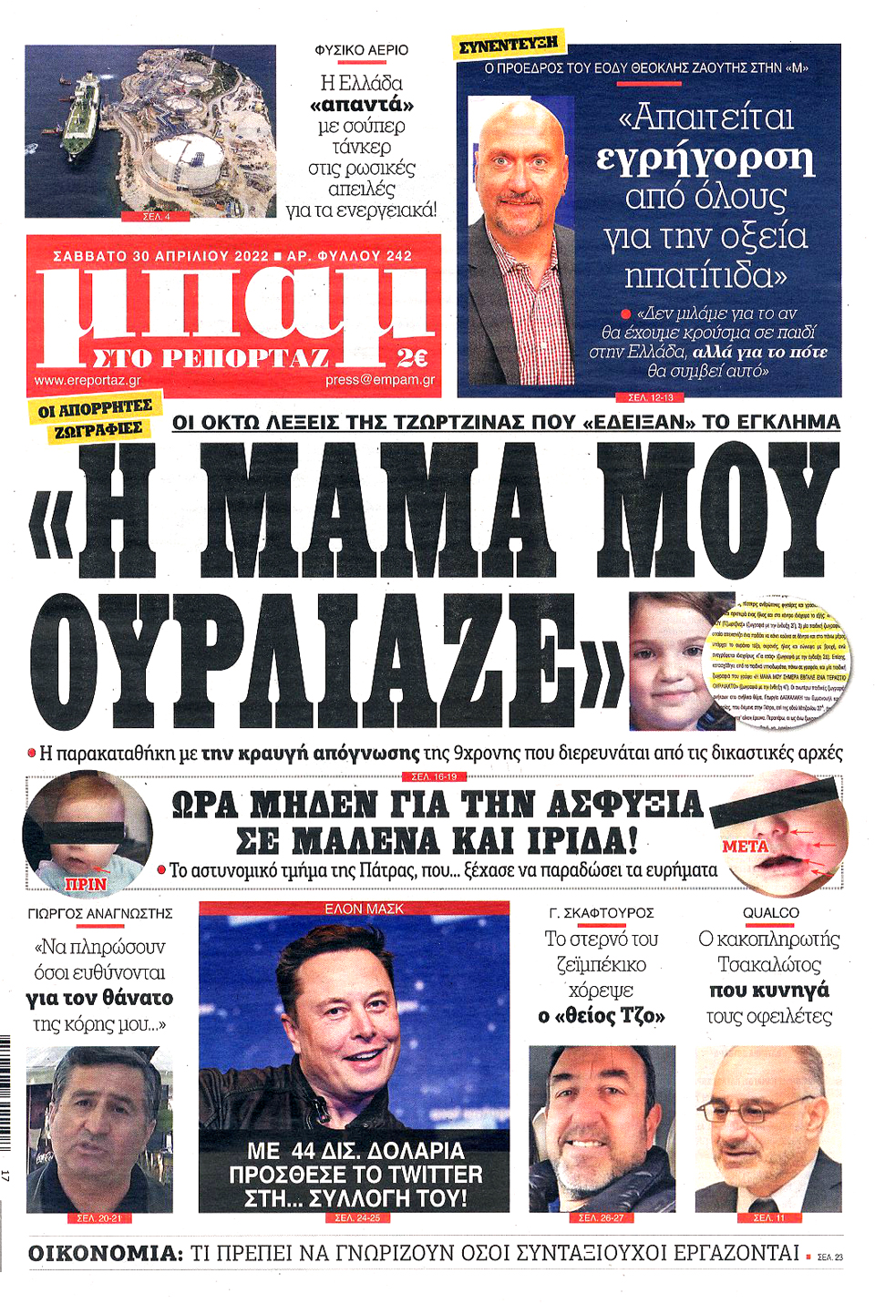 Διαβάστε στο zougla.gr τα πρωτοσέλιδα και τα οπισθόφυλλα των κυριακάτικων εφημερίδων που κυκλοφορούν εκτάκτως το Σάββατο.