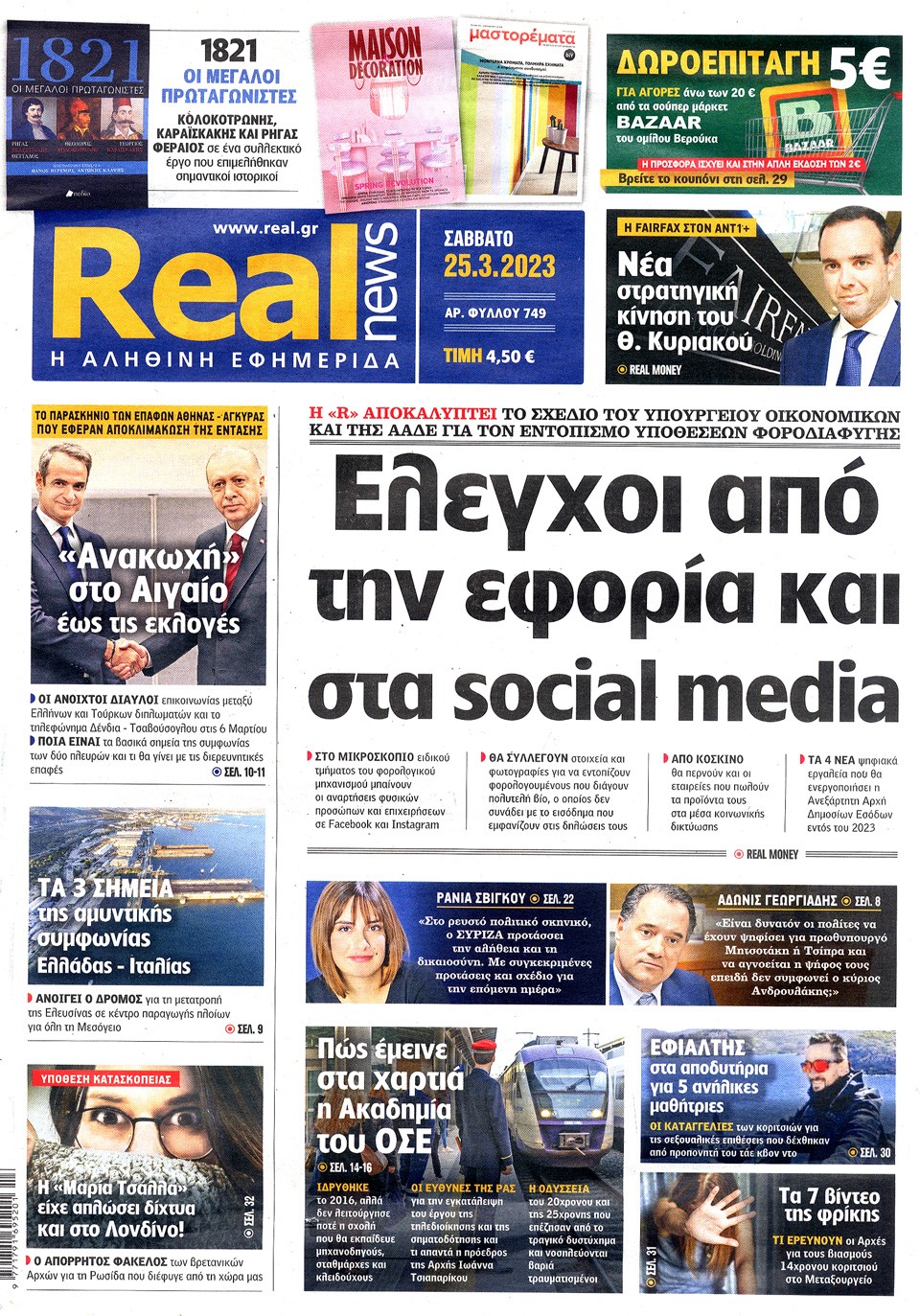 Διαβάστε στο zougla.gr τα πρωτοσέλιδα και τα οπισθόφυλλα των κυριακάτικων εφημερίδων που κυκλοφορούν εκτάκτως το Σάββατο.