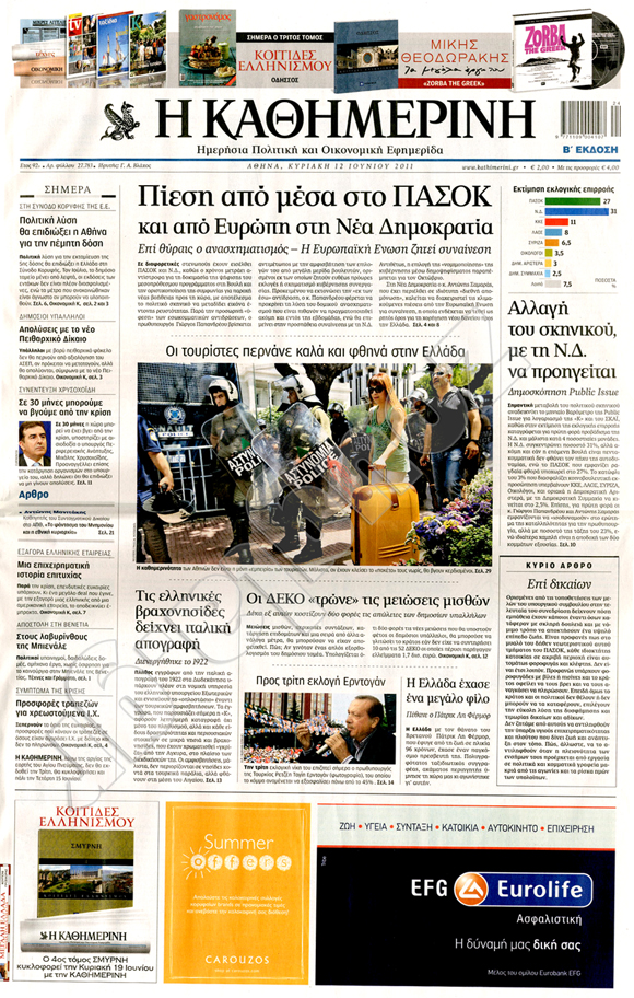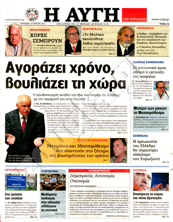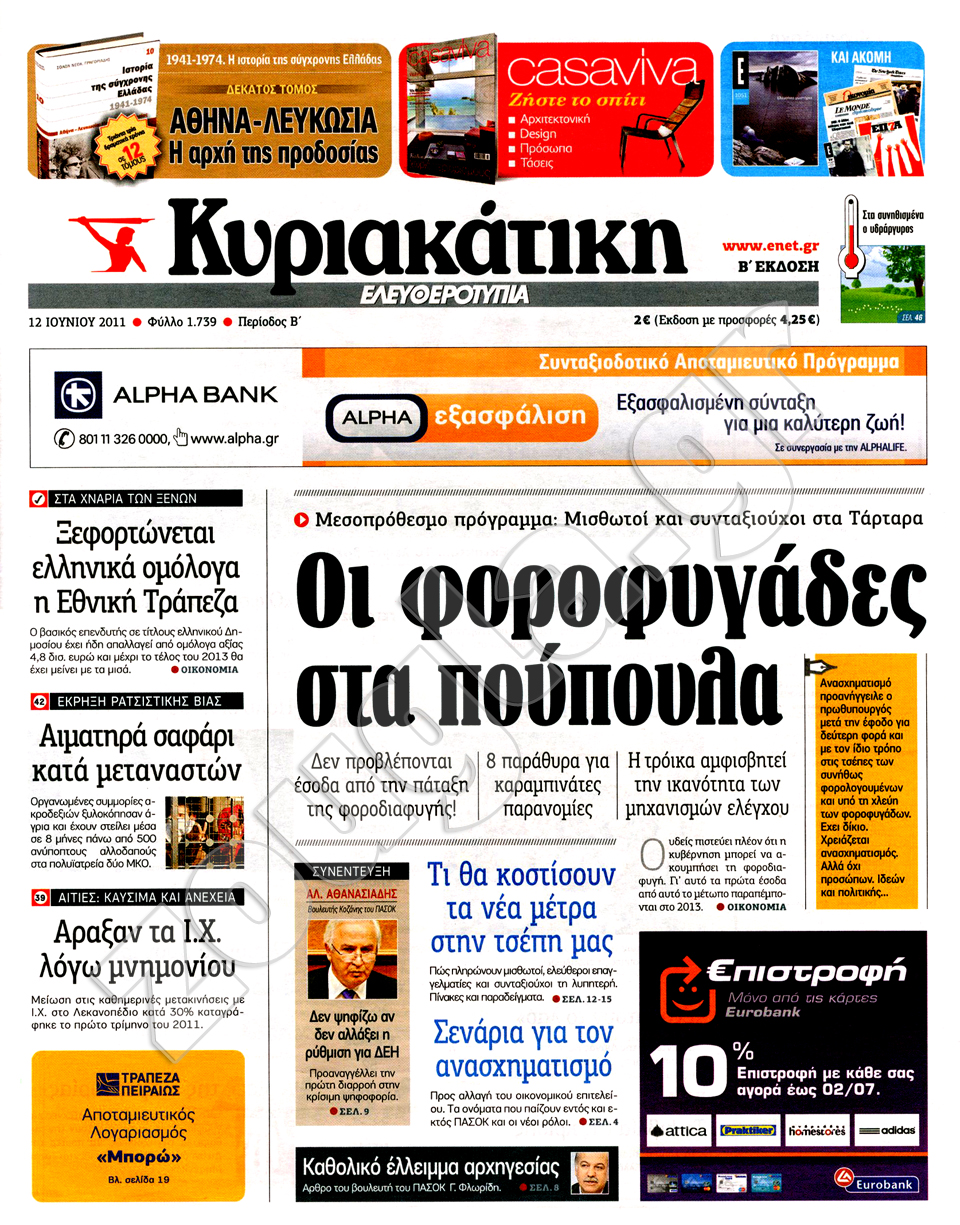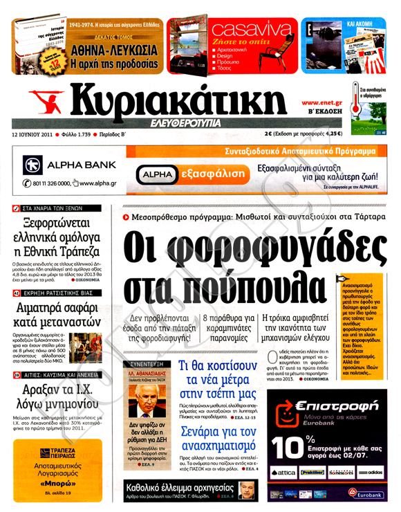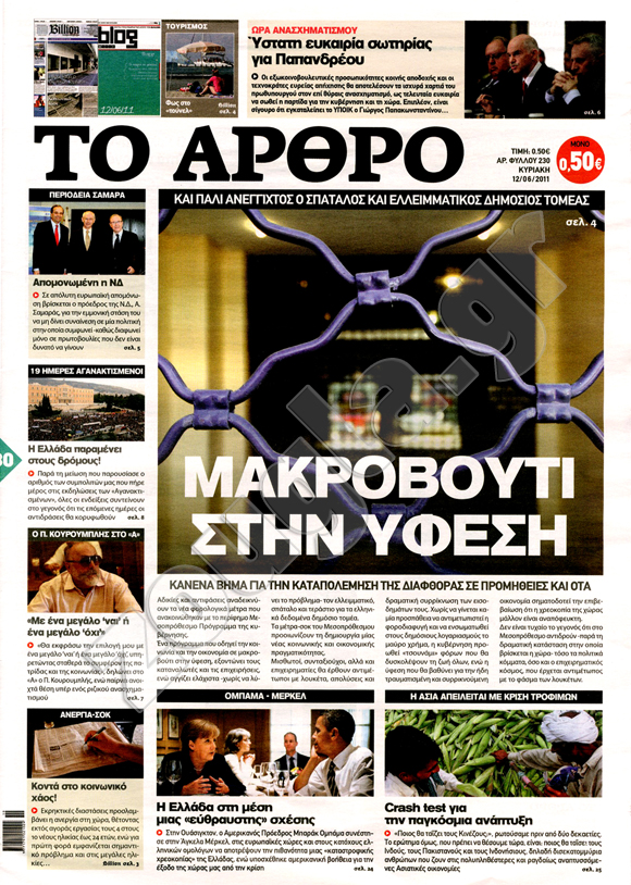 Διαβάστε σήμερα στη zougla.gr τα πρωτοσέλιδα των κυριακάτικων εφημερίδων.
