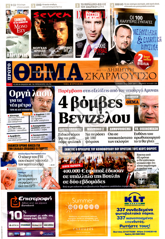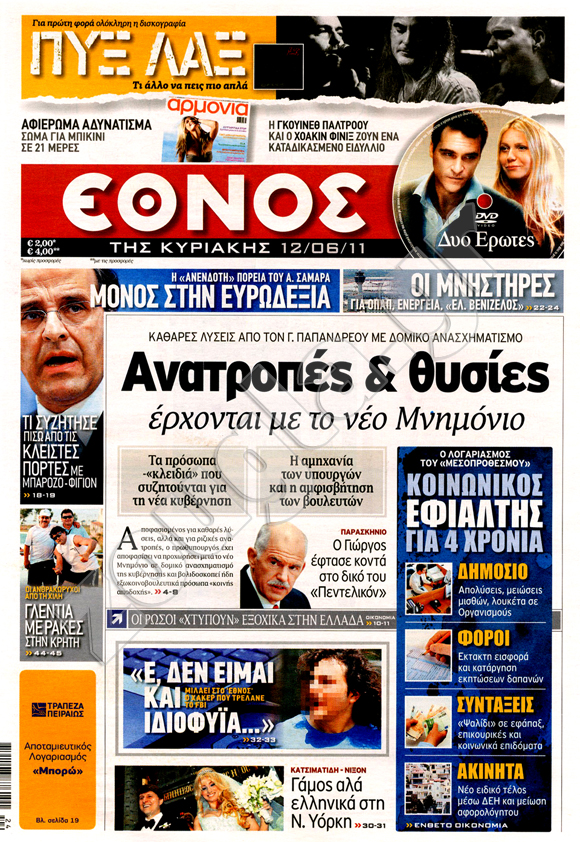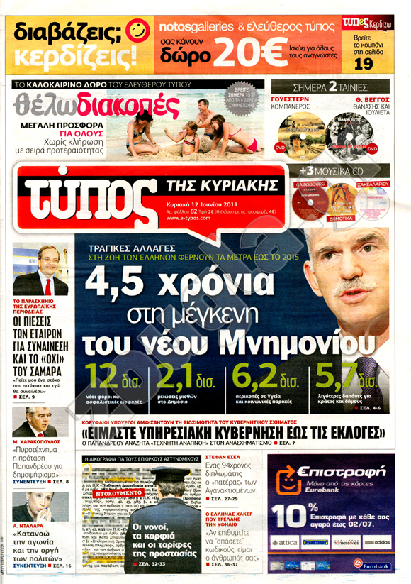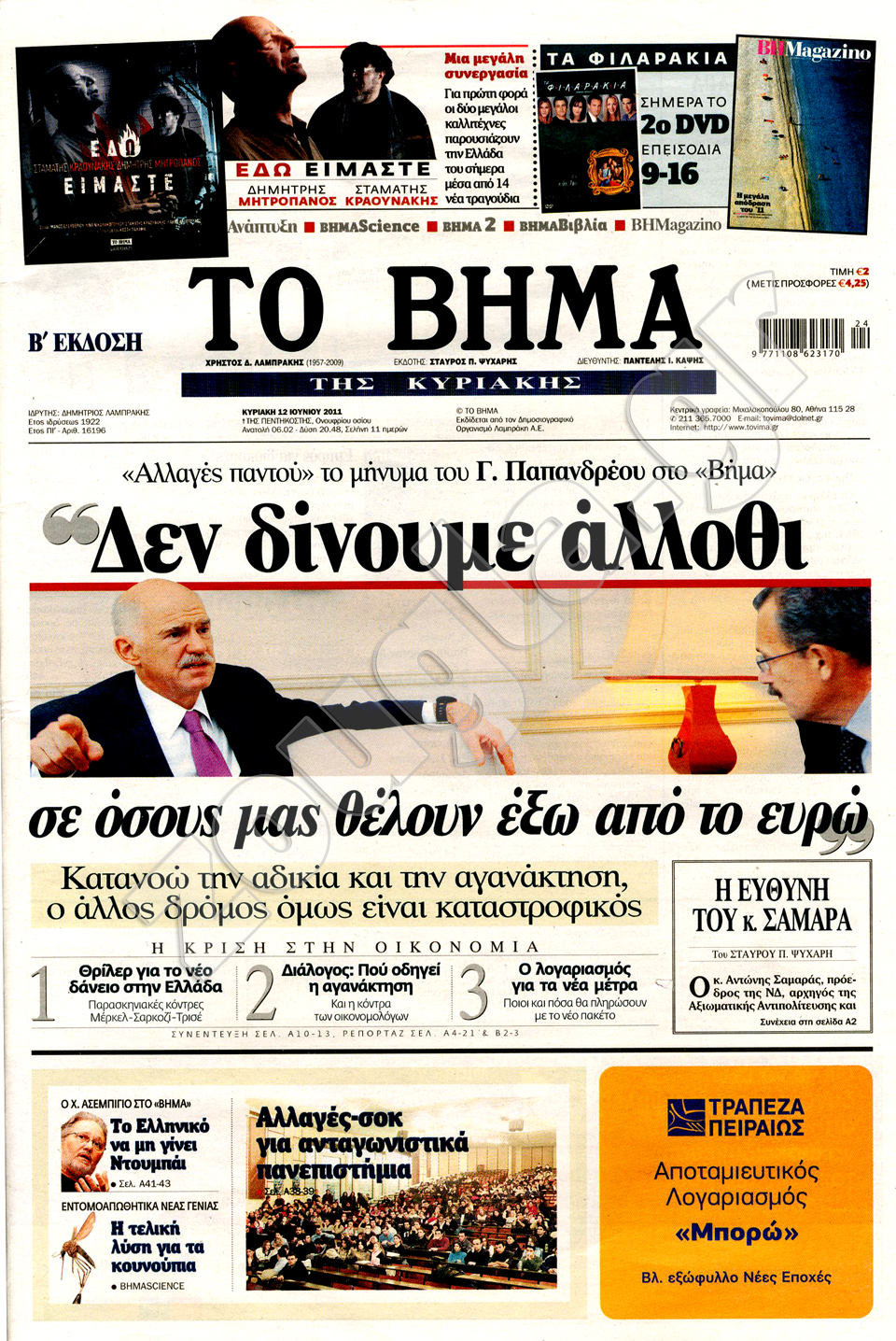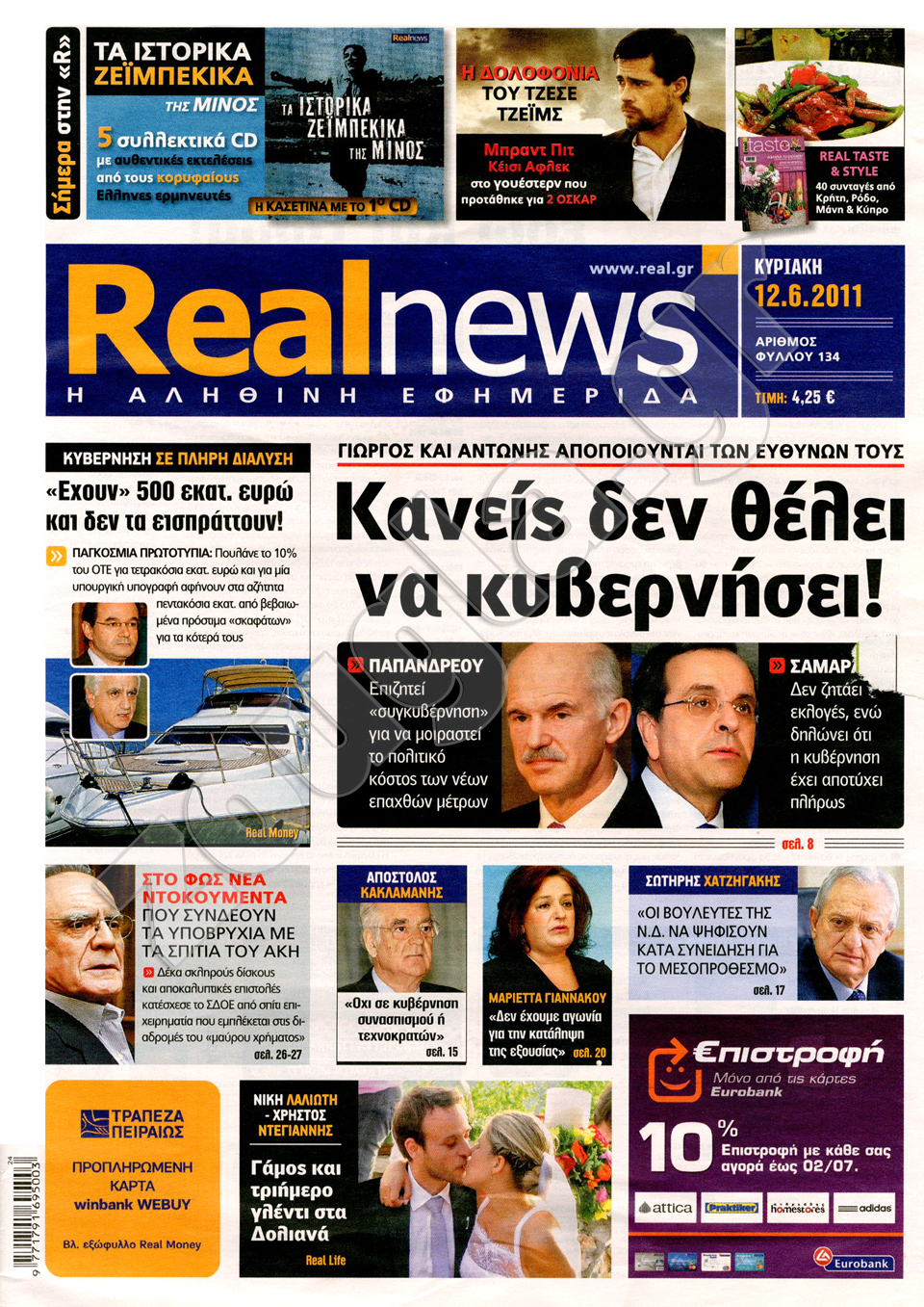 Διαβάστε σήμερα στη zougla.gr τα πρωτοσέλιδα των κυριακάτικων εφημερίδων.