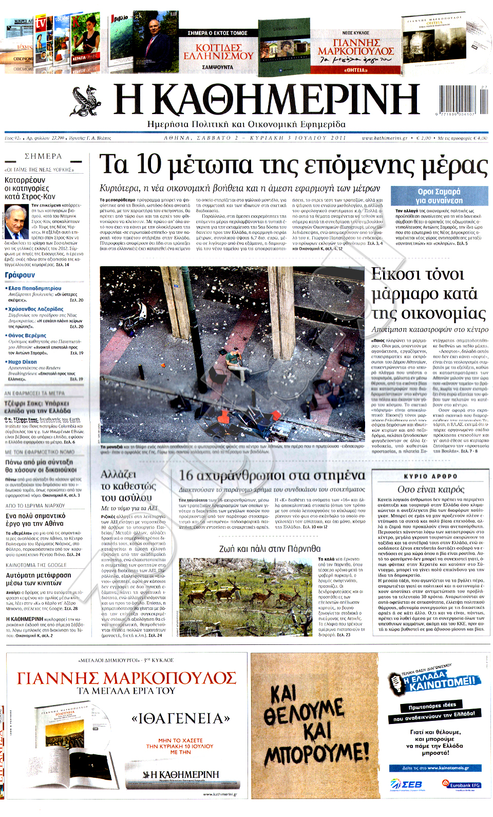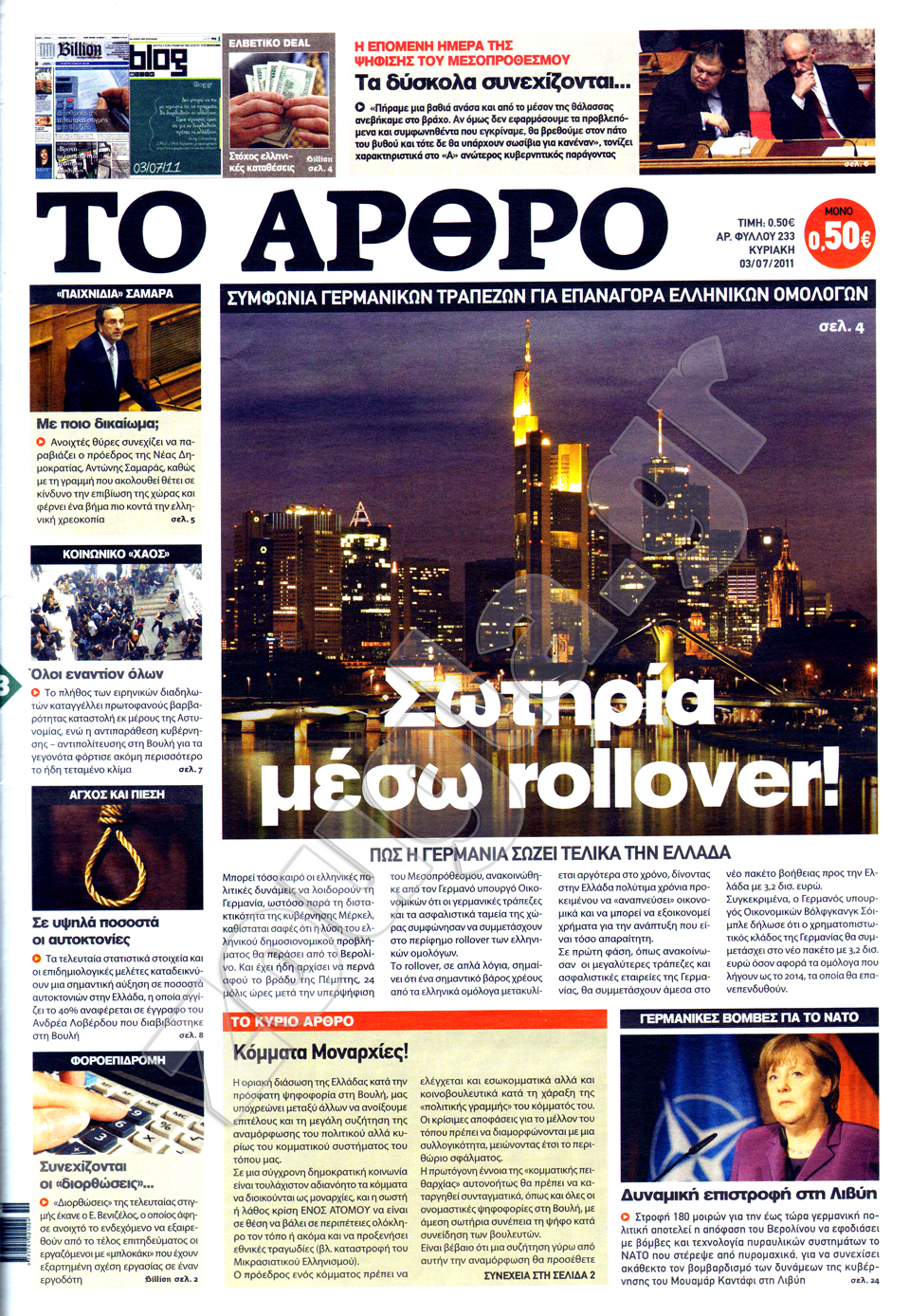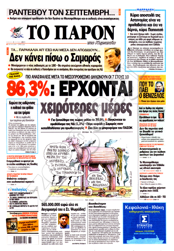 Διαβάστε σήμερα στη zougla.gr τα πρωτοσέλιδα των κυριακάτικων εφημερίδων.