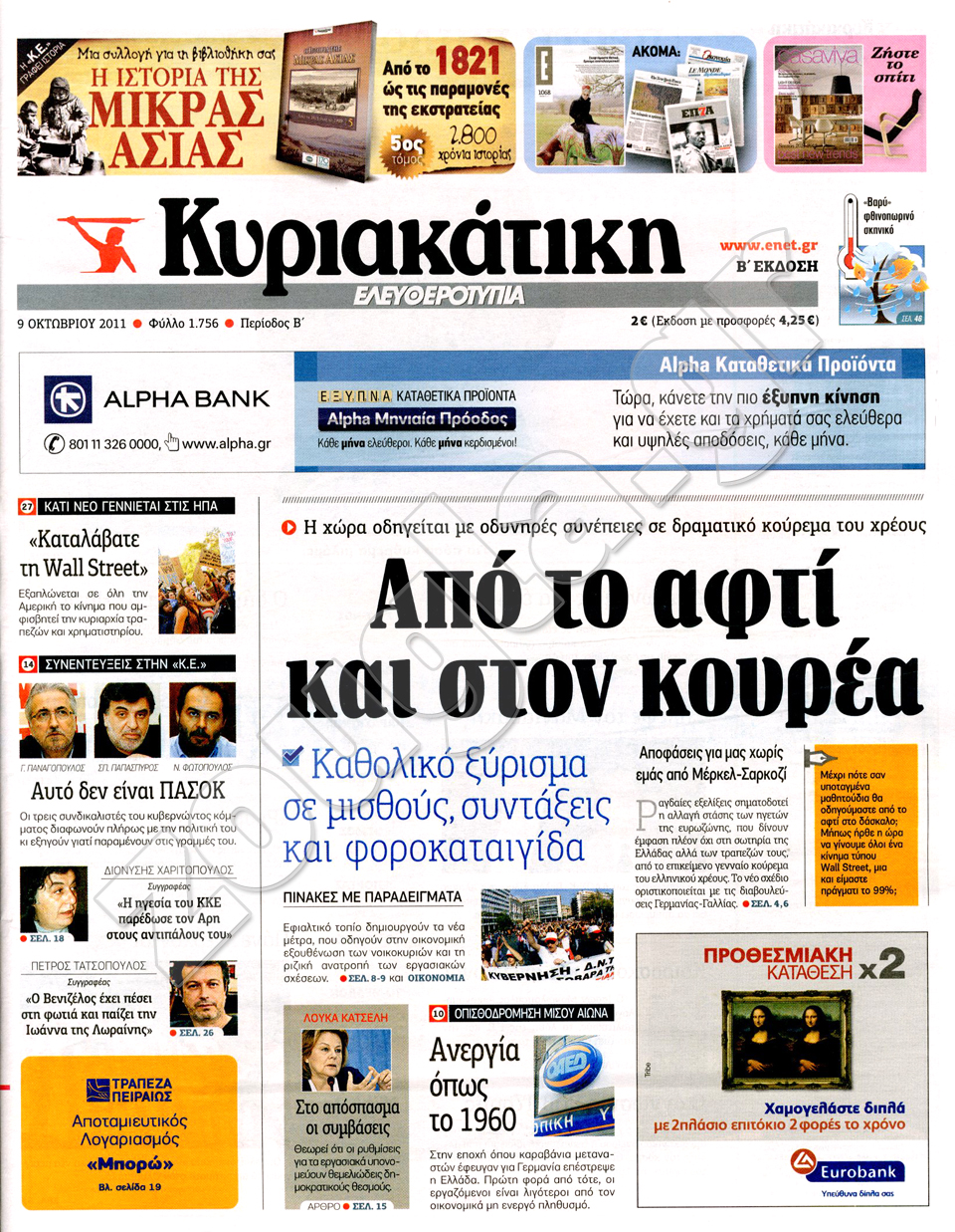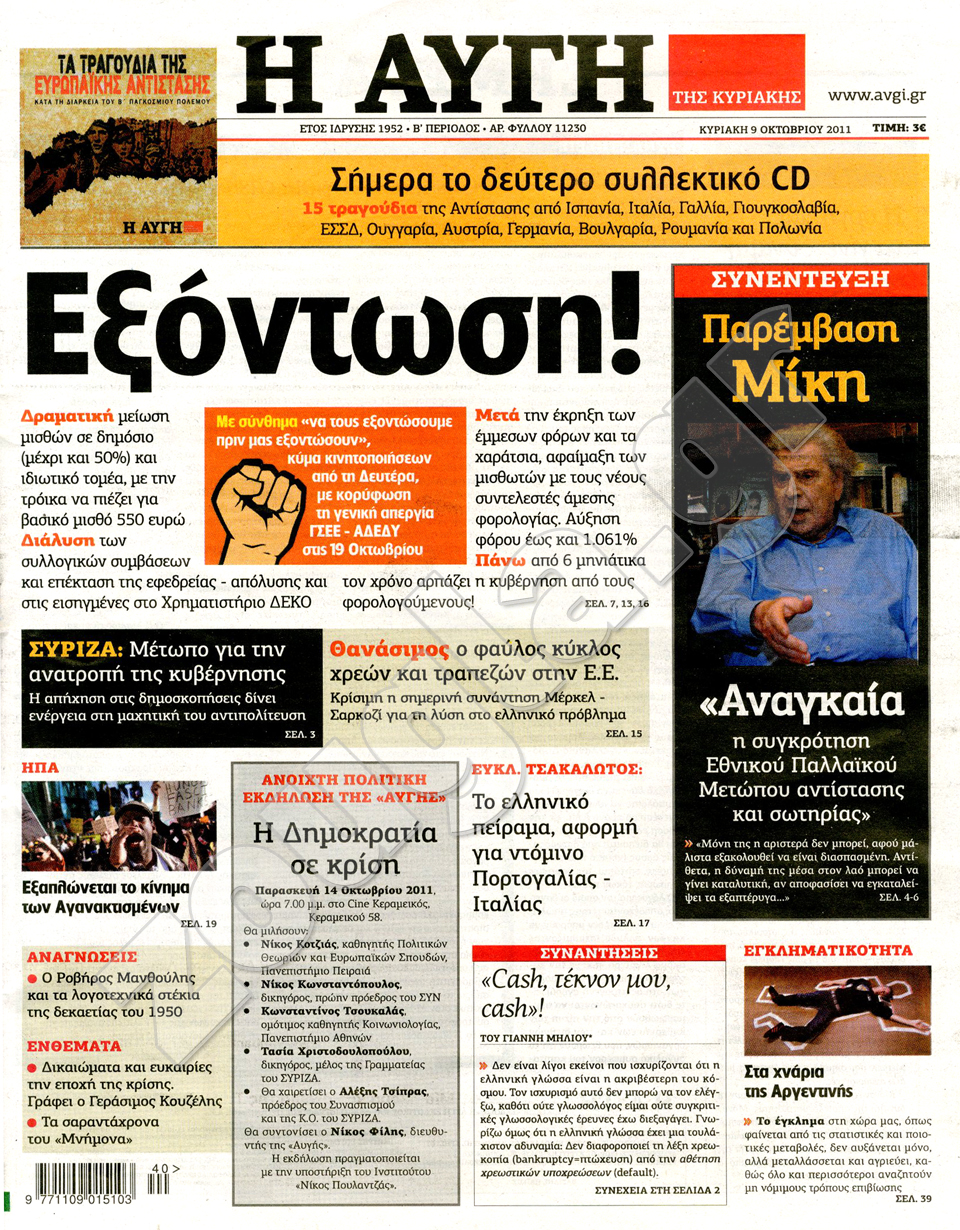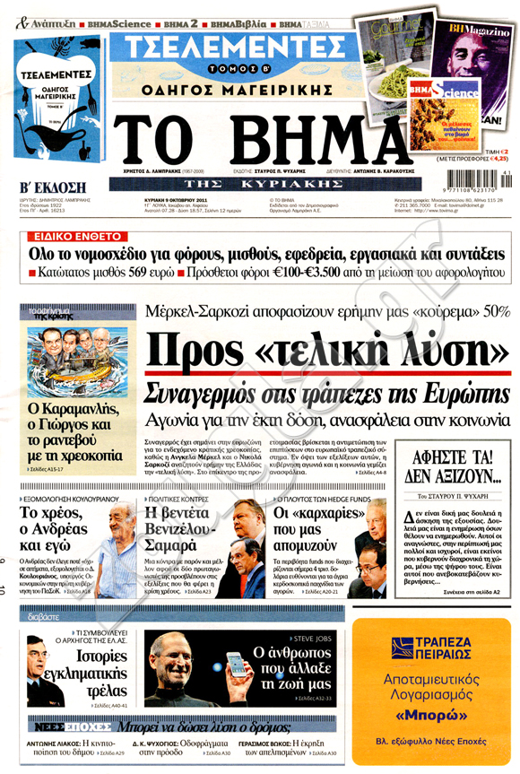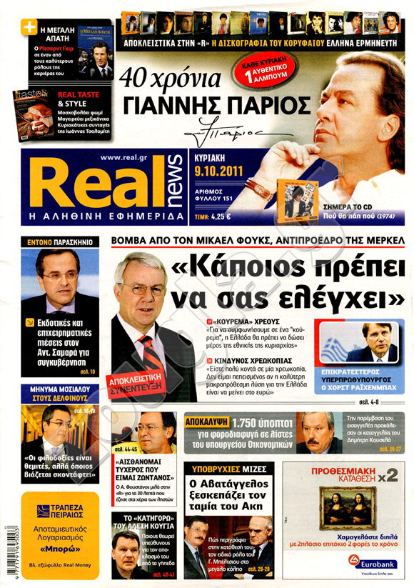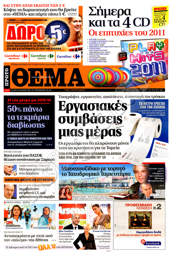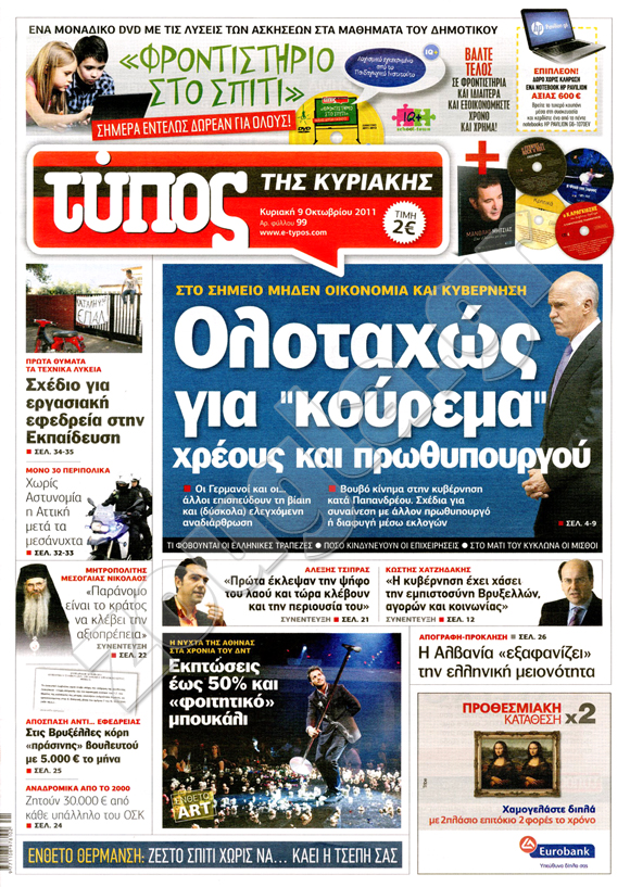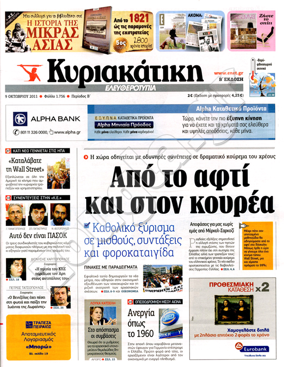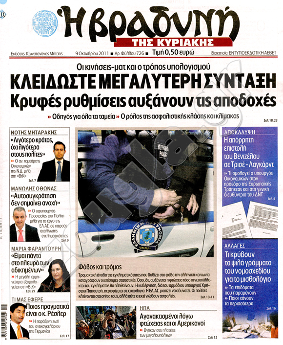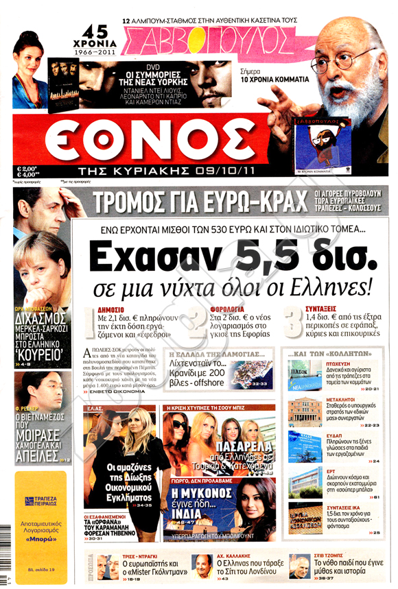 ιαβάστε στη zougla.gr τα πρωτοσέλιδα των κυριακάτικων εφημερίδων...