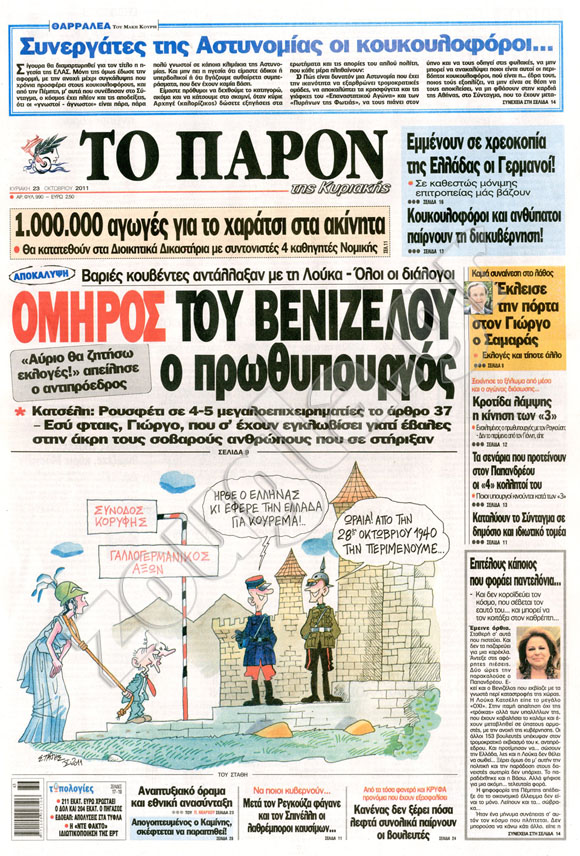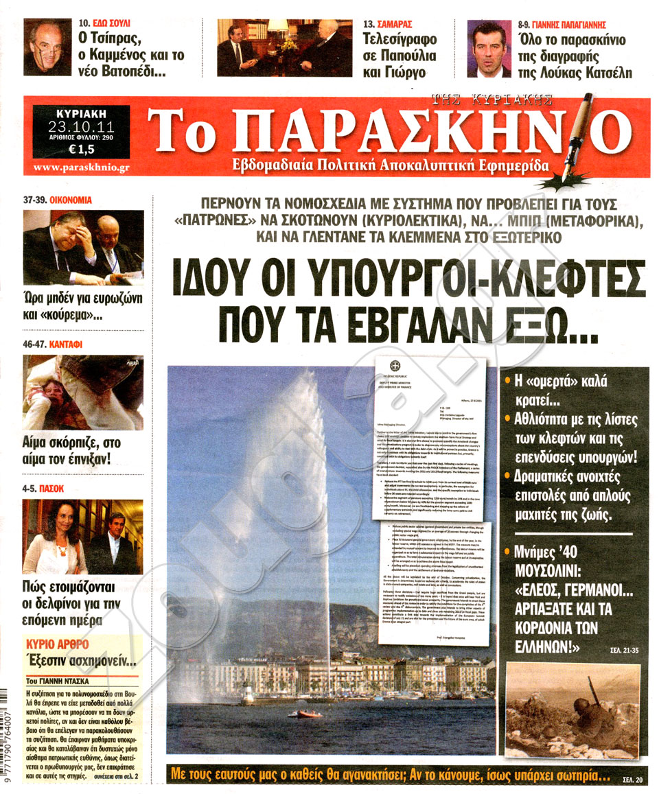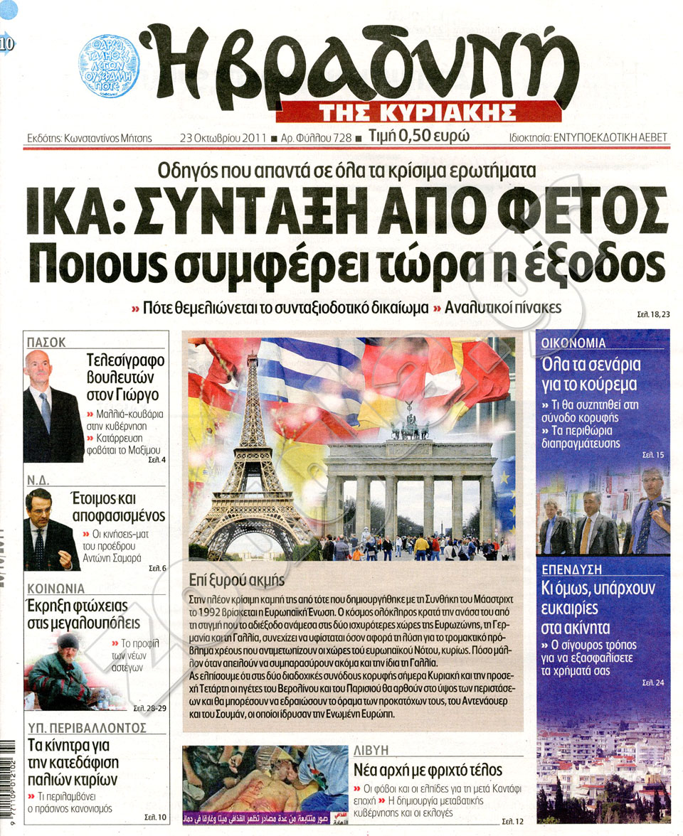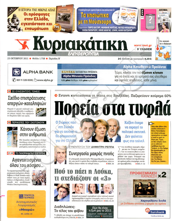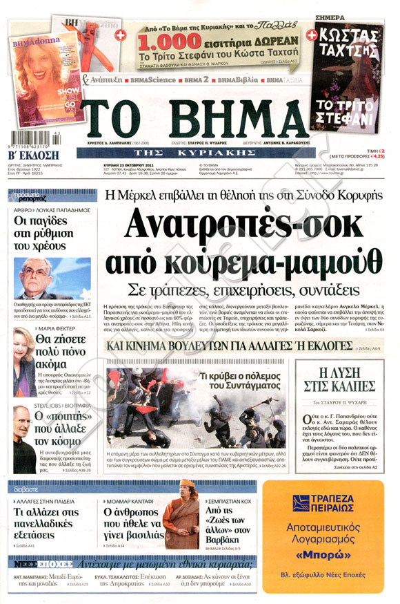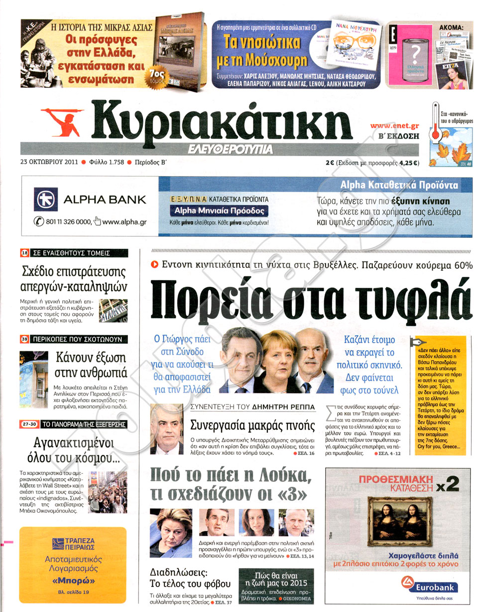 Διαβάστε στη zougla.gr τα πρωτοσέλιδα των κυριακάτικων εφημερίδων.