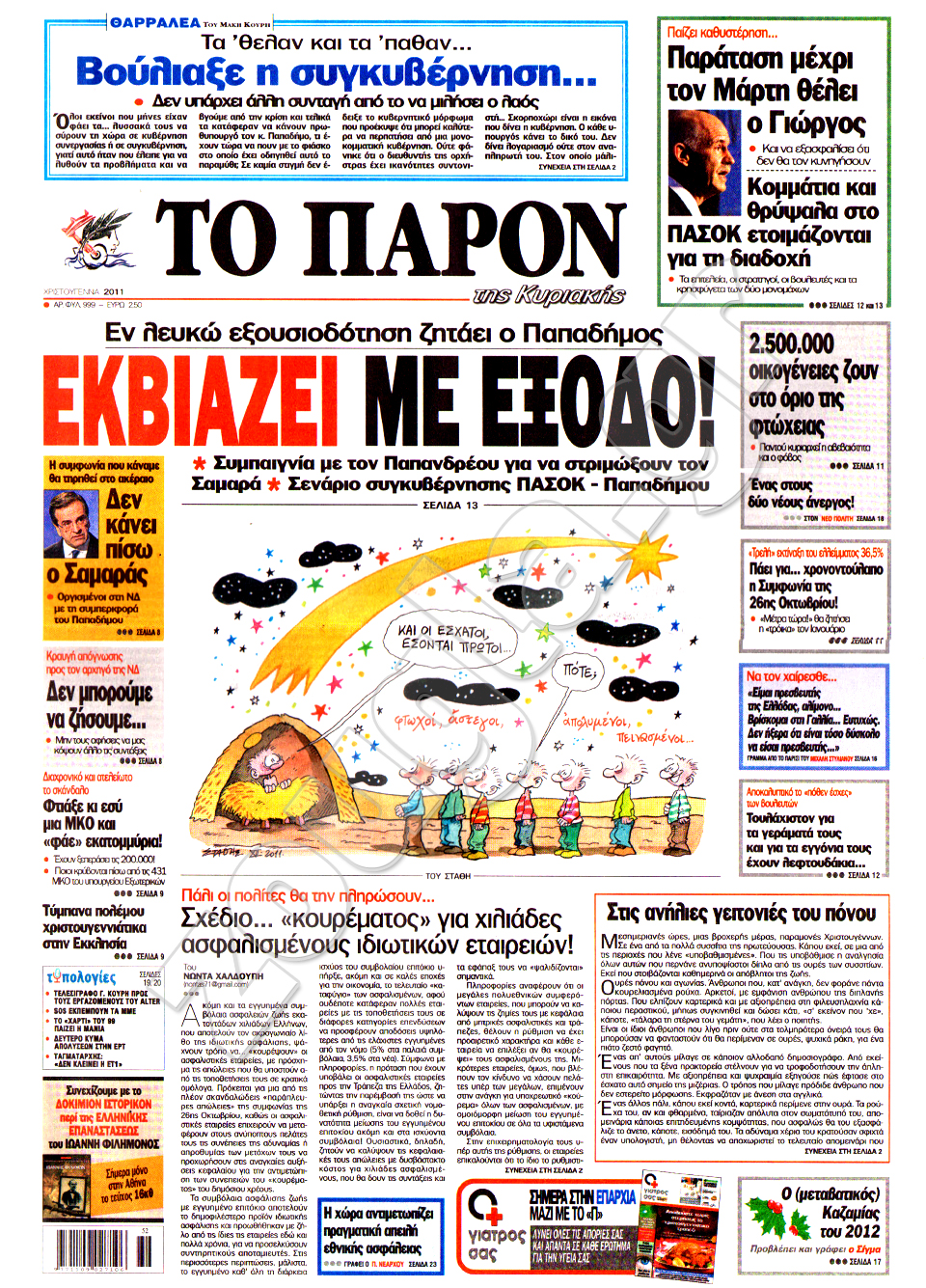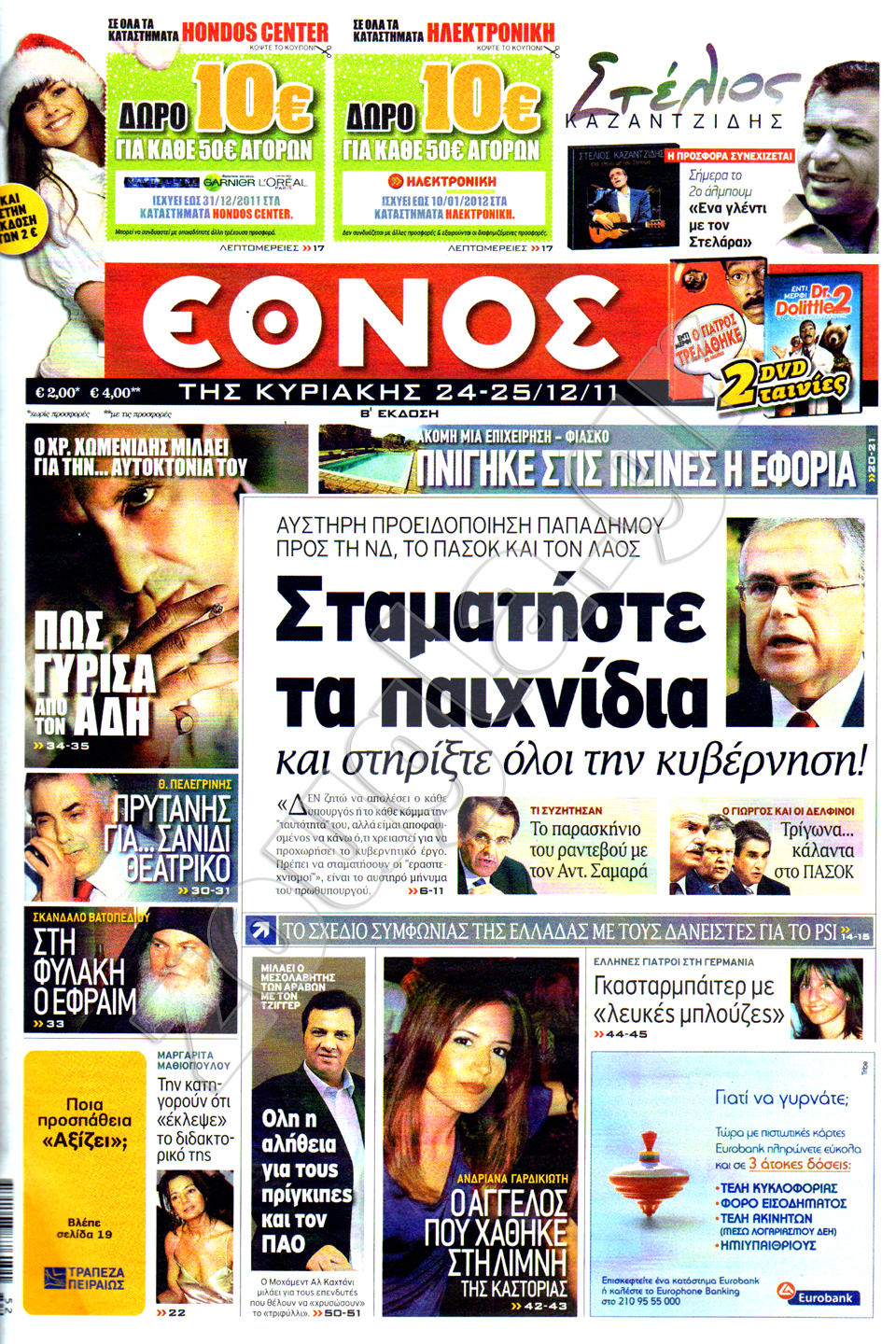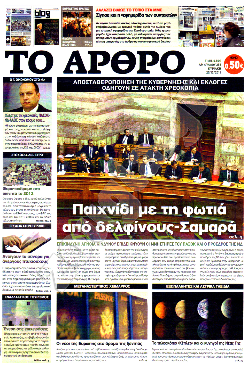 Διαβάστε στη zougla.gr τα πρωτοσέλιδα των κυριακάτικων εφημερίδων, που κυκλοφορούν εκτάκτως σήμερα Σάββατο 24 Δεκεμβρίου.