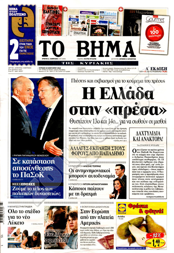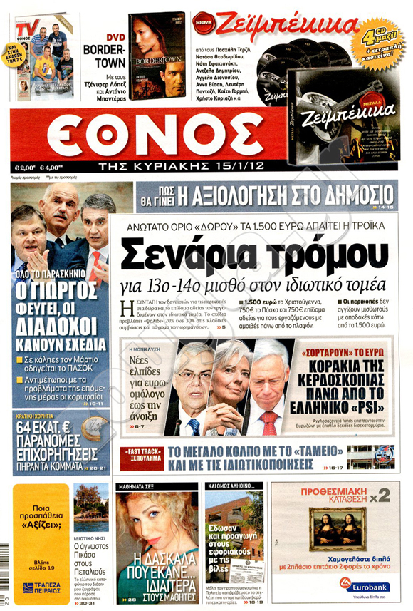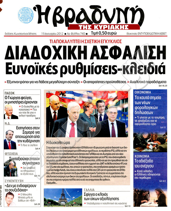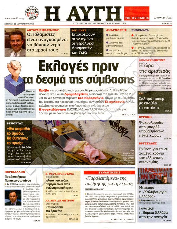 Διαβάστε στη zougla.gr τα πρωτοσέλιδα των κυριακάτικων εφημερίδων...