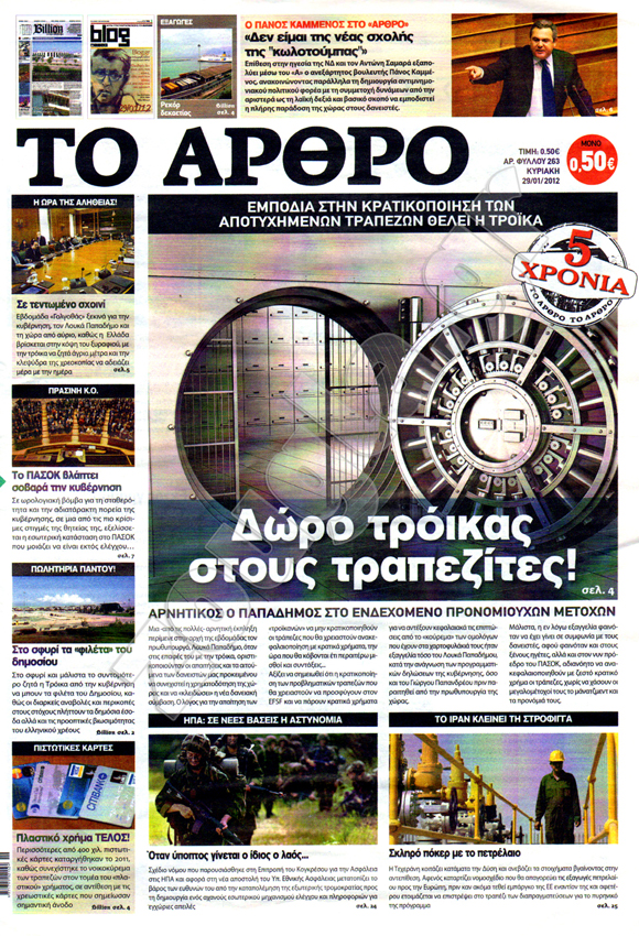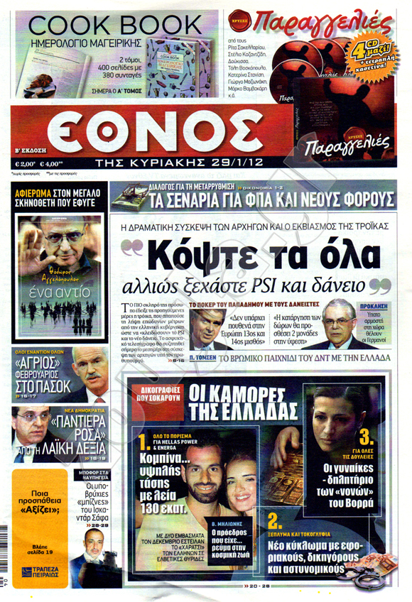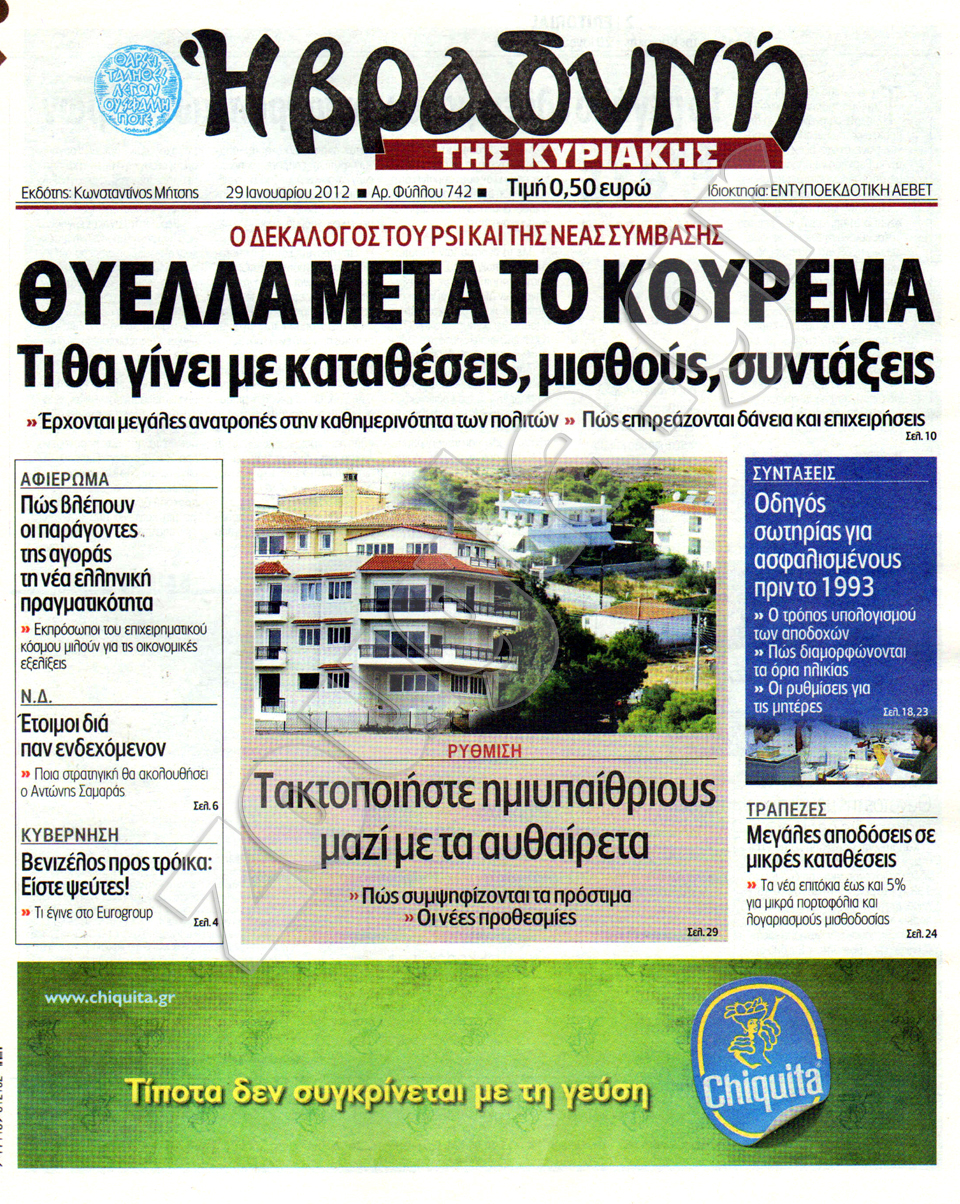 Διαβάστε στη zougla.gr τα πρωτοσέλιδα των κυριακάτικων εφημερίδων...