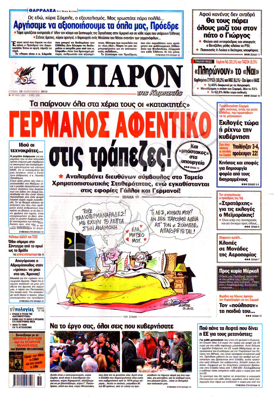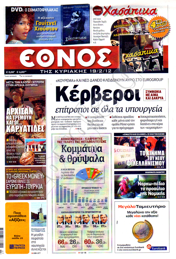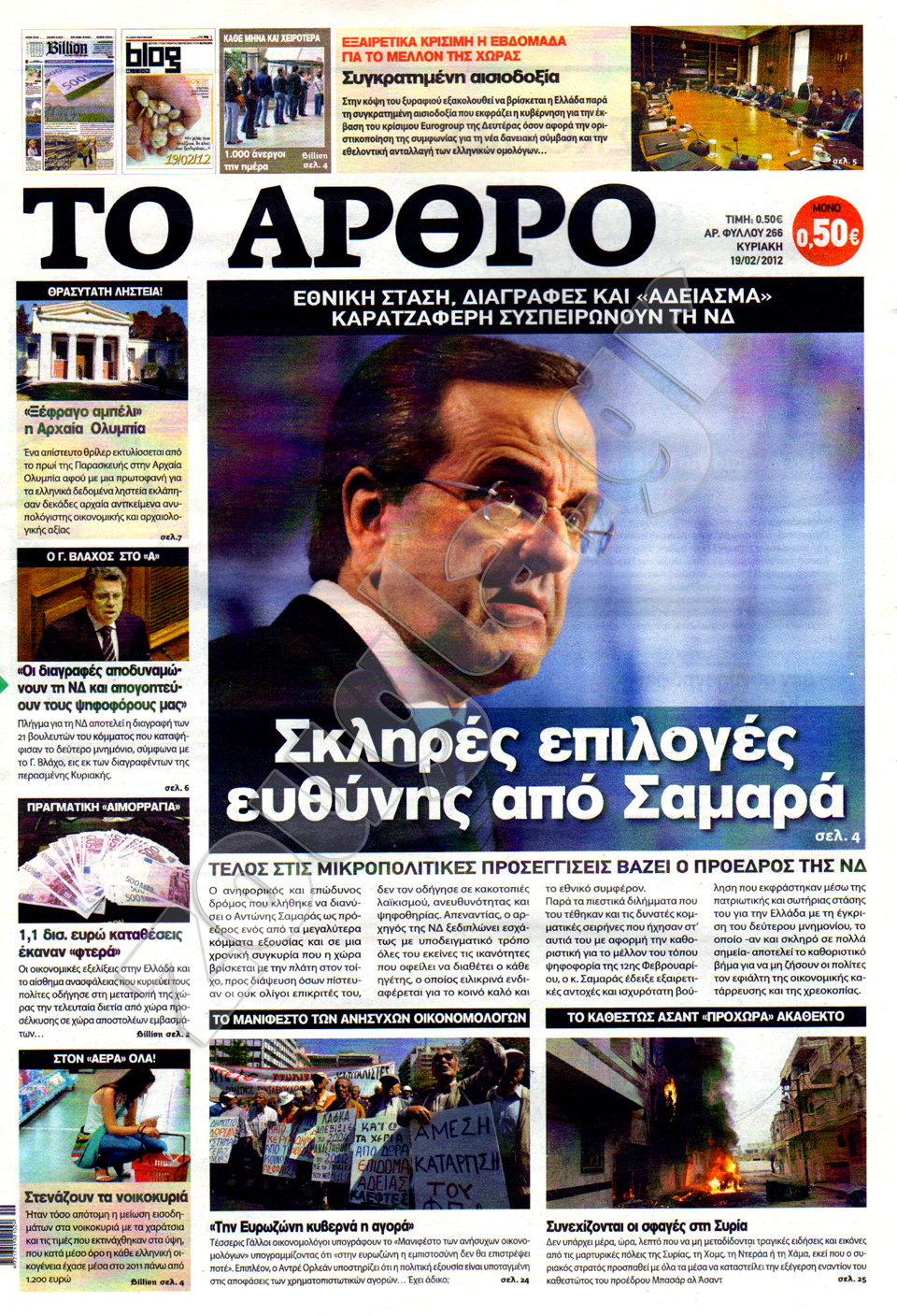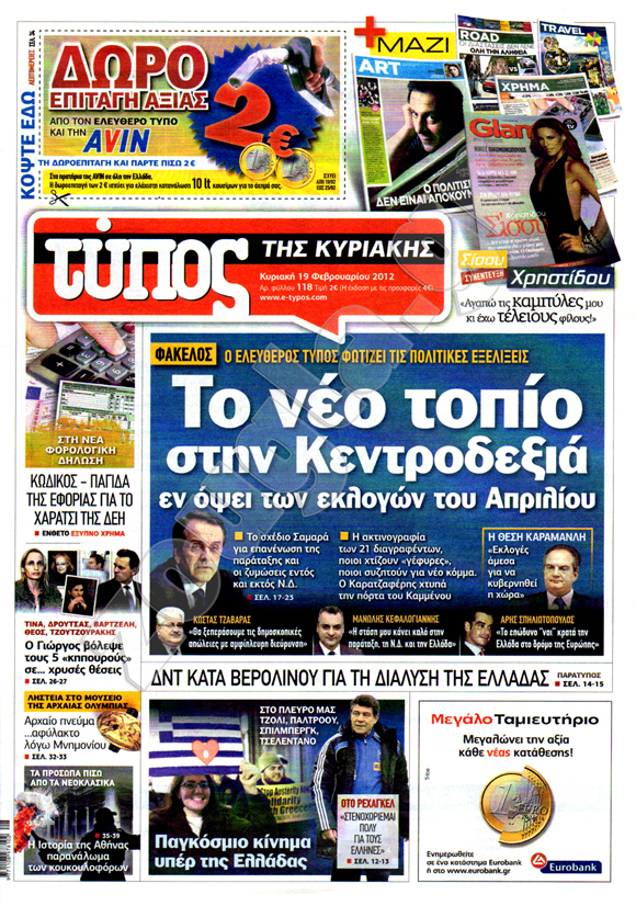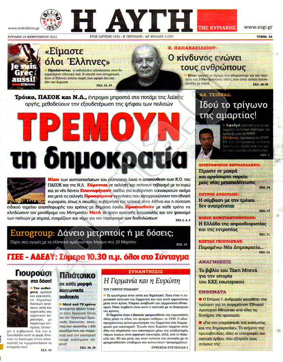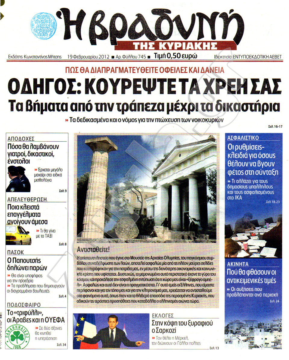 Διαβάστε στη zougla.gr τα πρωτοσέλιδα των κυριακάτικων εφημερίδων.