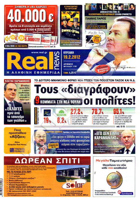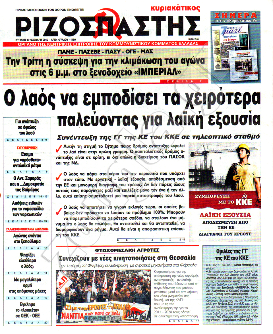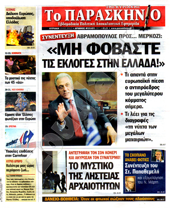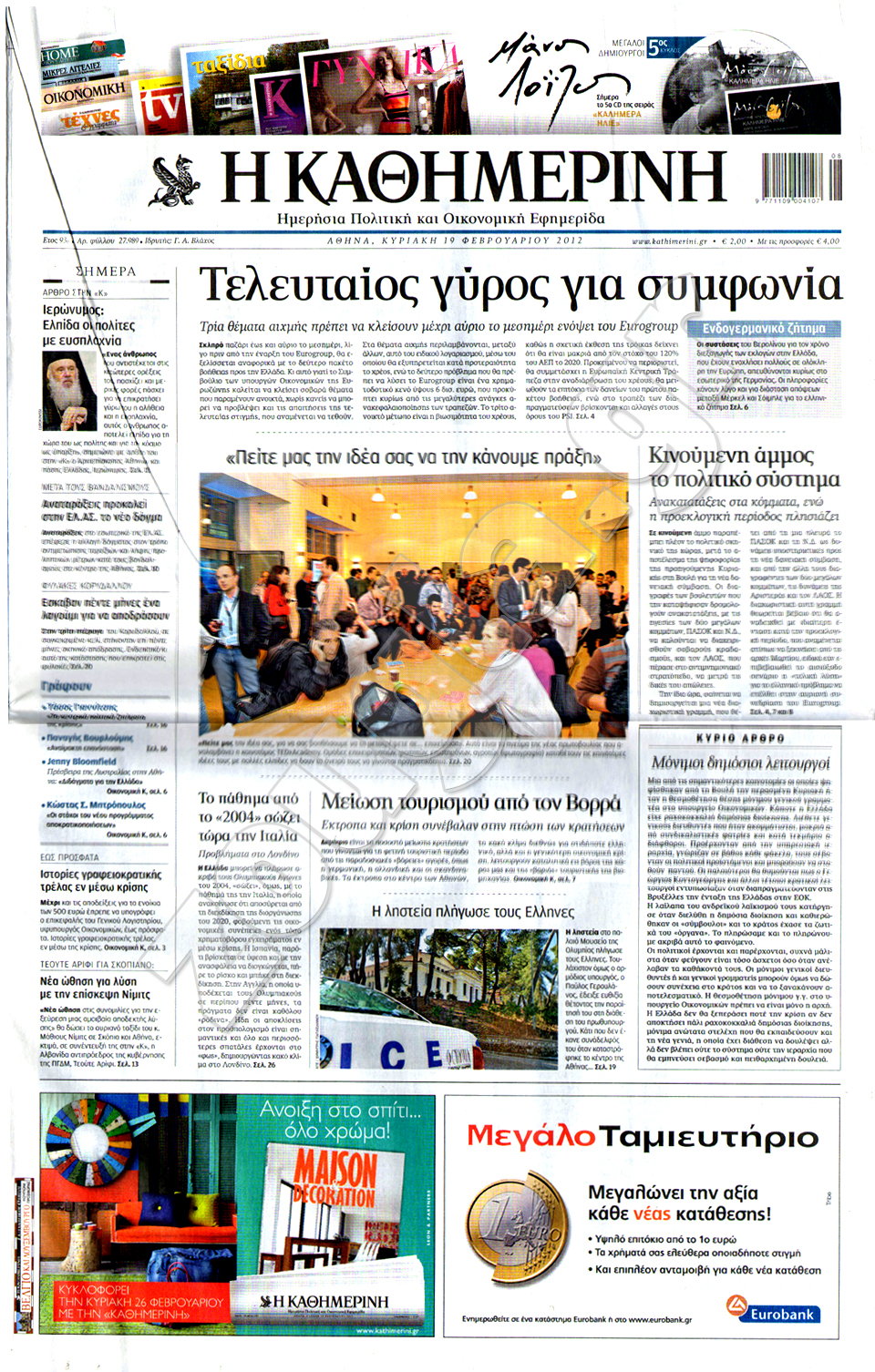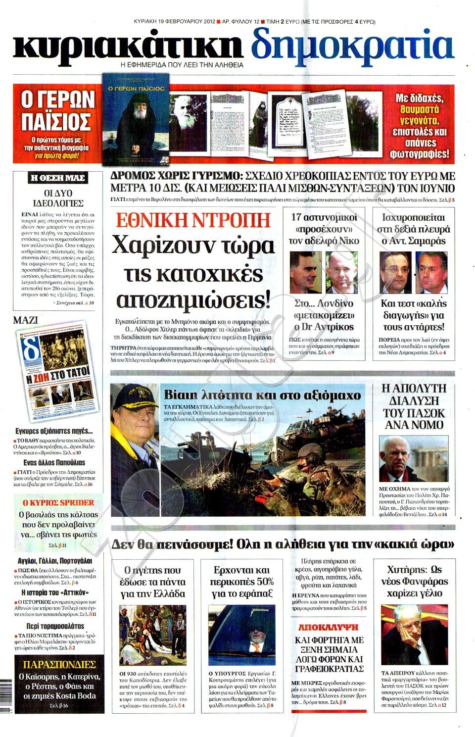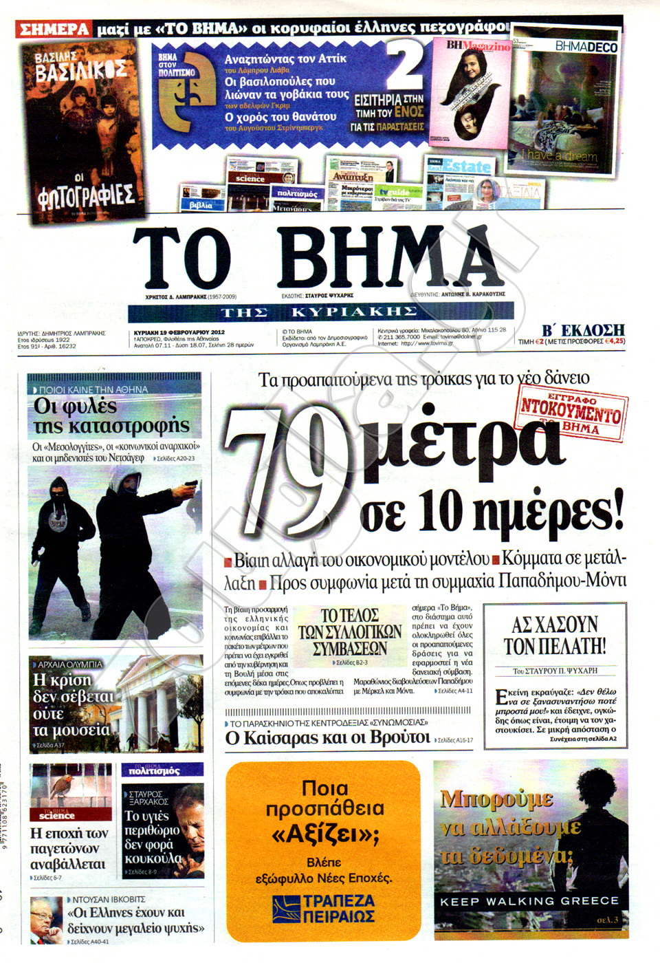 Διαβάστε στη zougla.gr τα πρωτοσέλιδα των κυριακάτικων εφημερίδων.