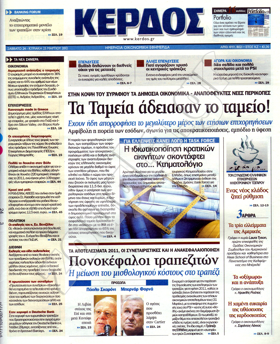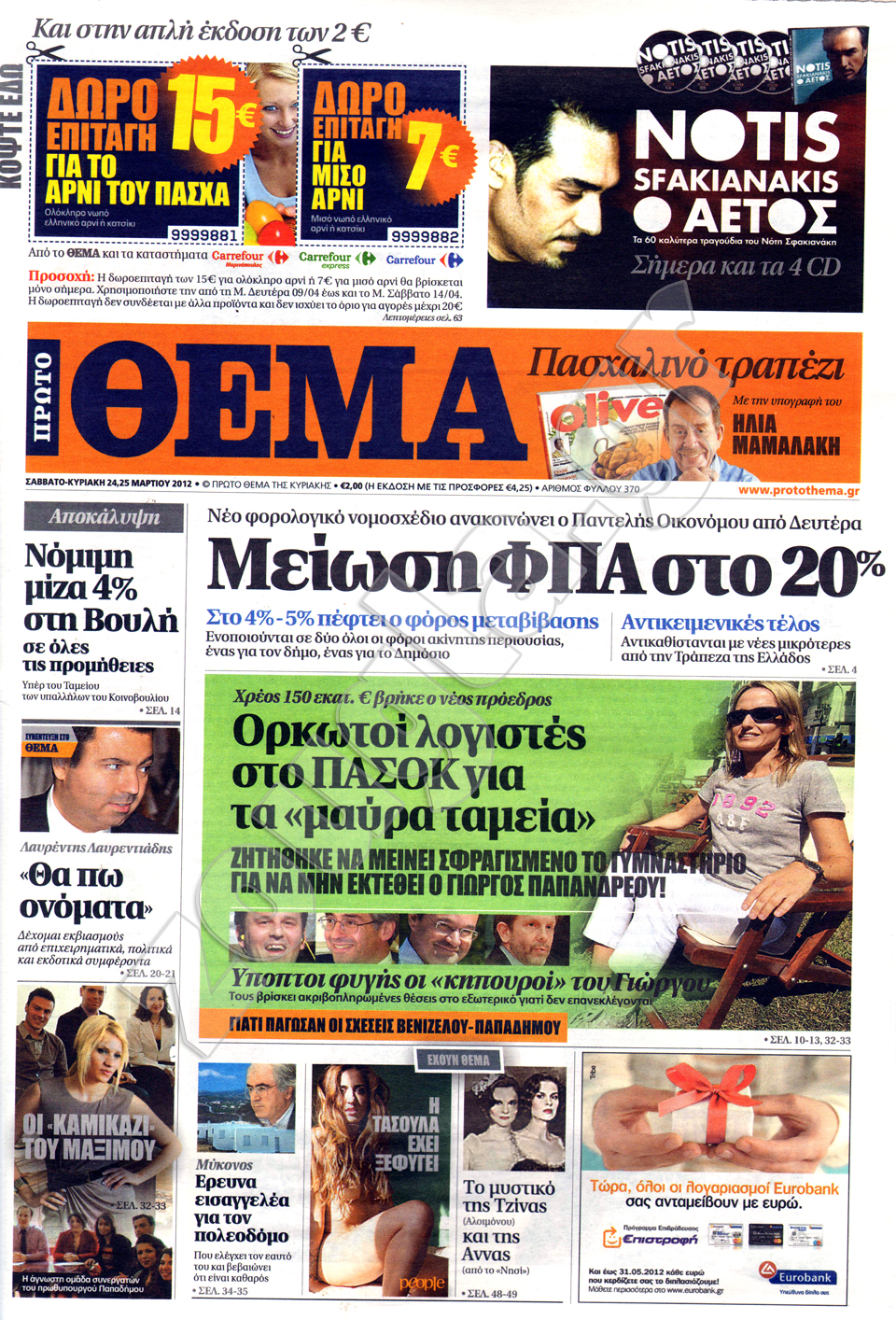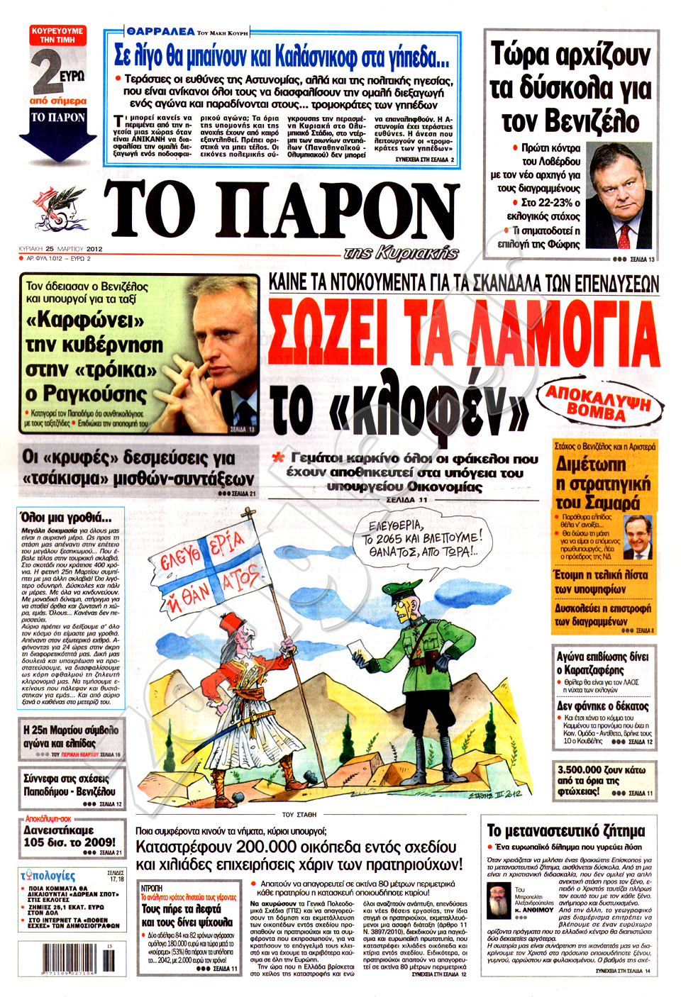Διαβάστε στη zougla.gr τα πρωτοσέλιδα των κυριακάτικων εφημερίδων.