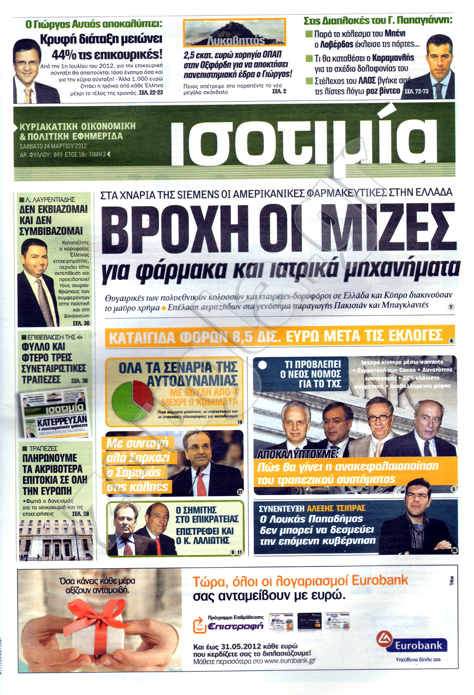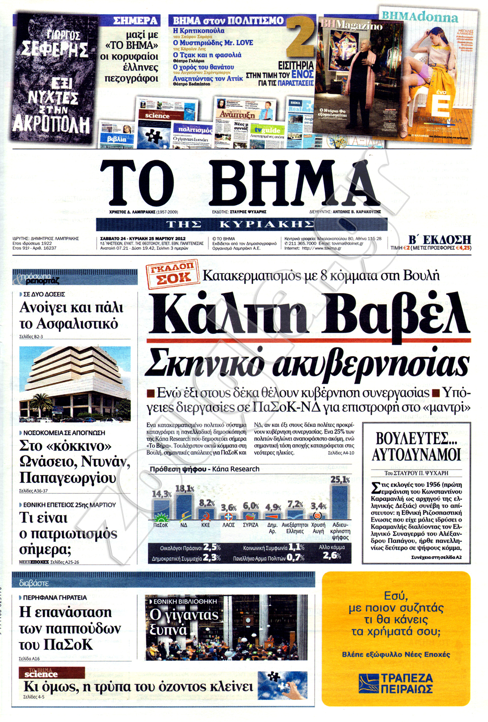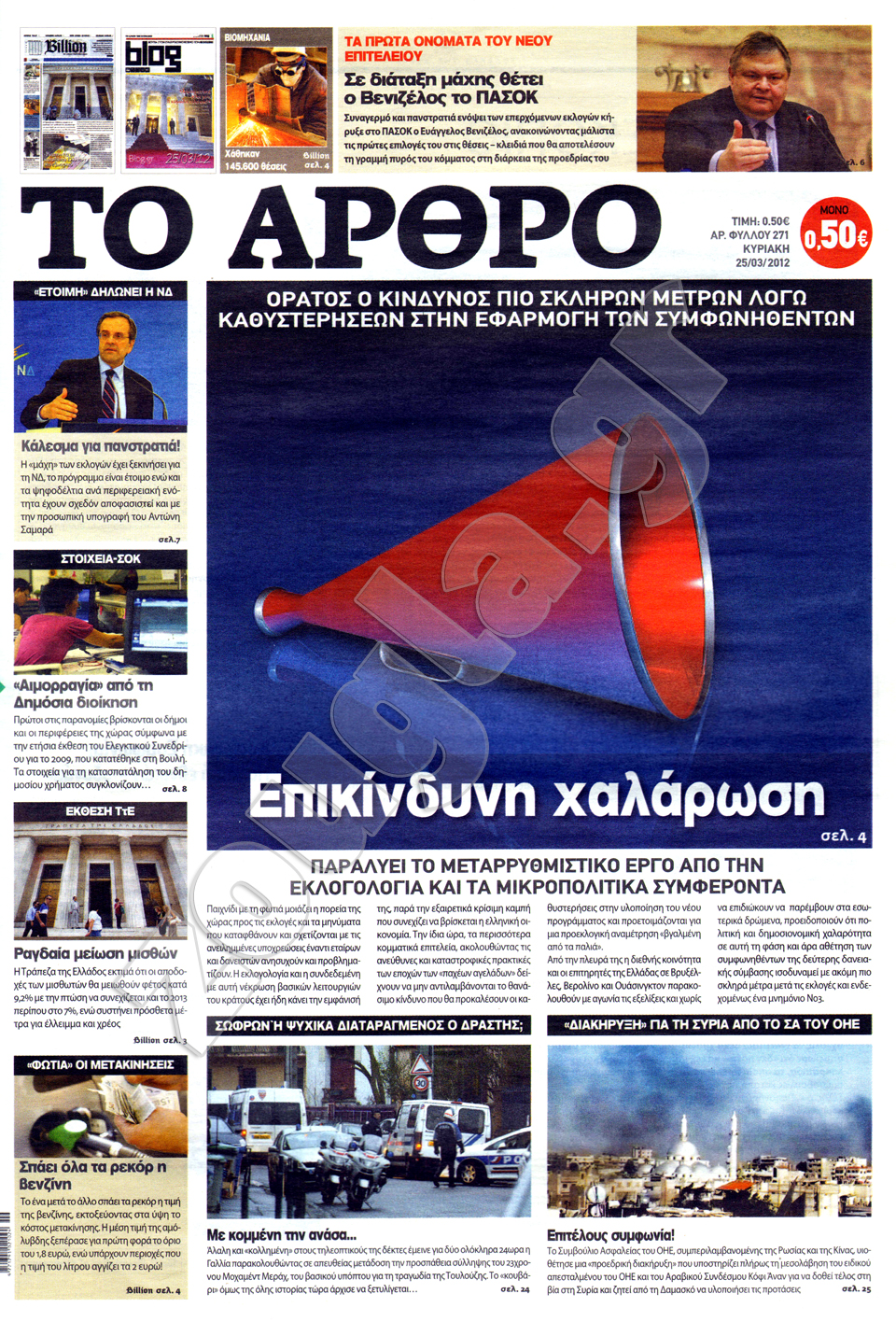 Διαβάστε στη zougla.gr τα πρωτοσέλιδα των κυριακάτικων εφημερίδων.